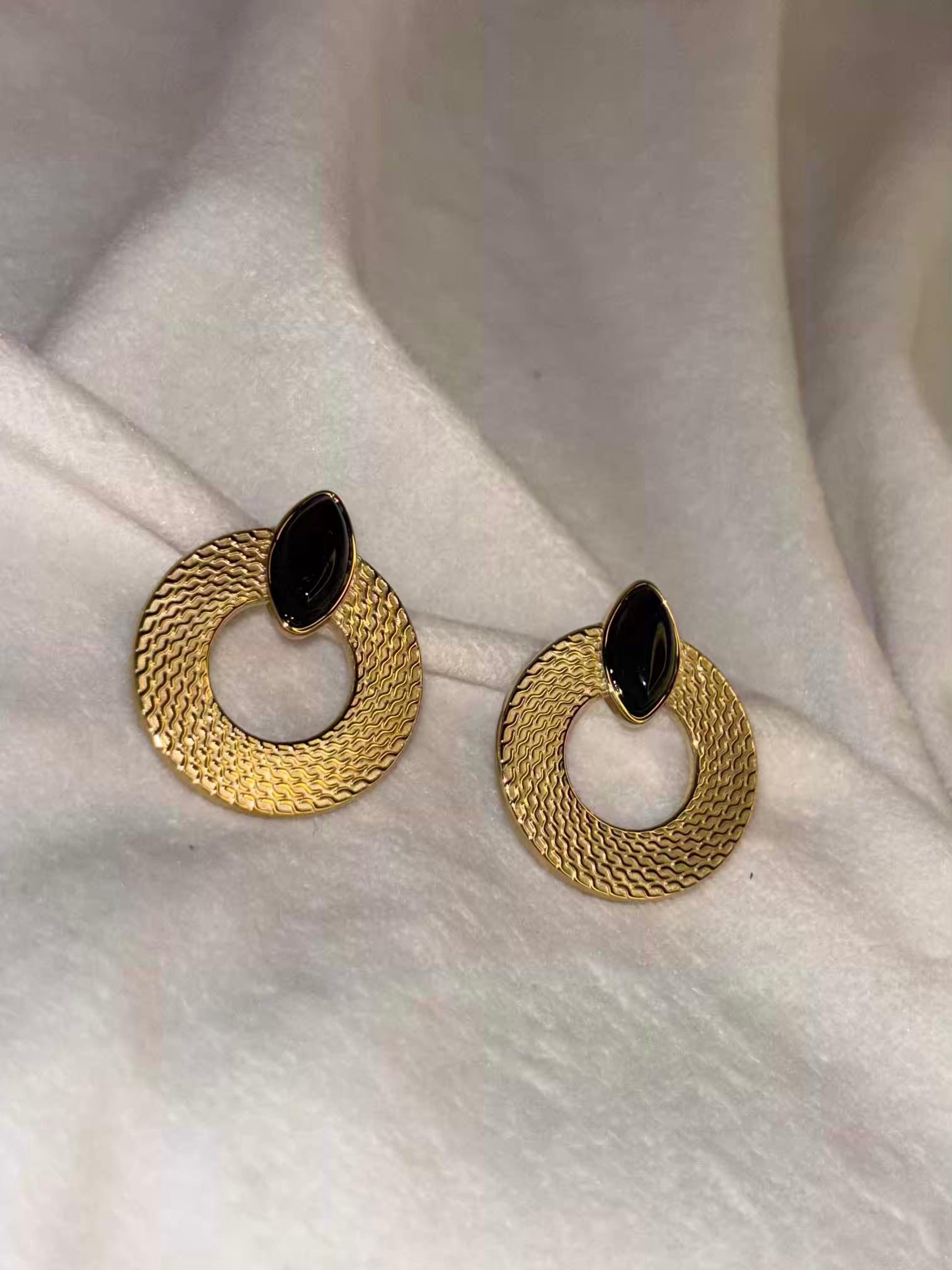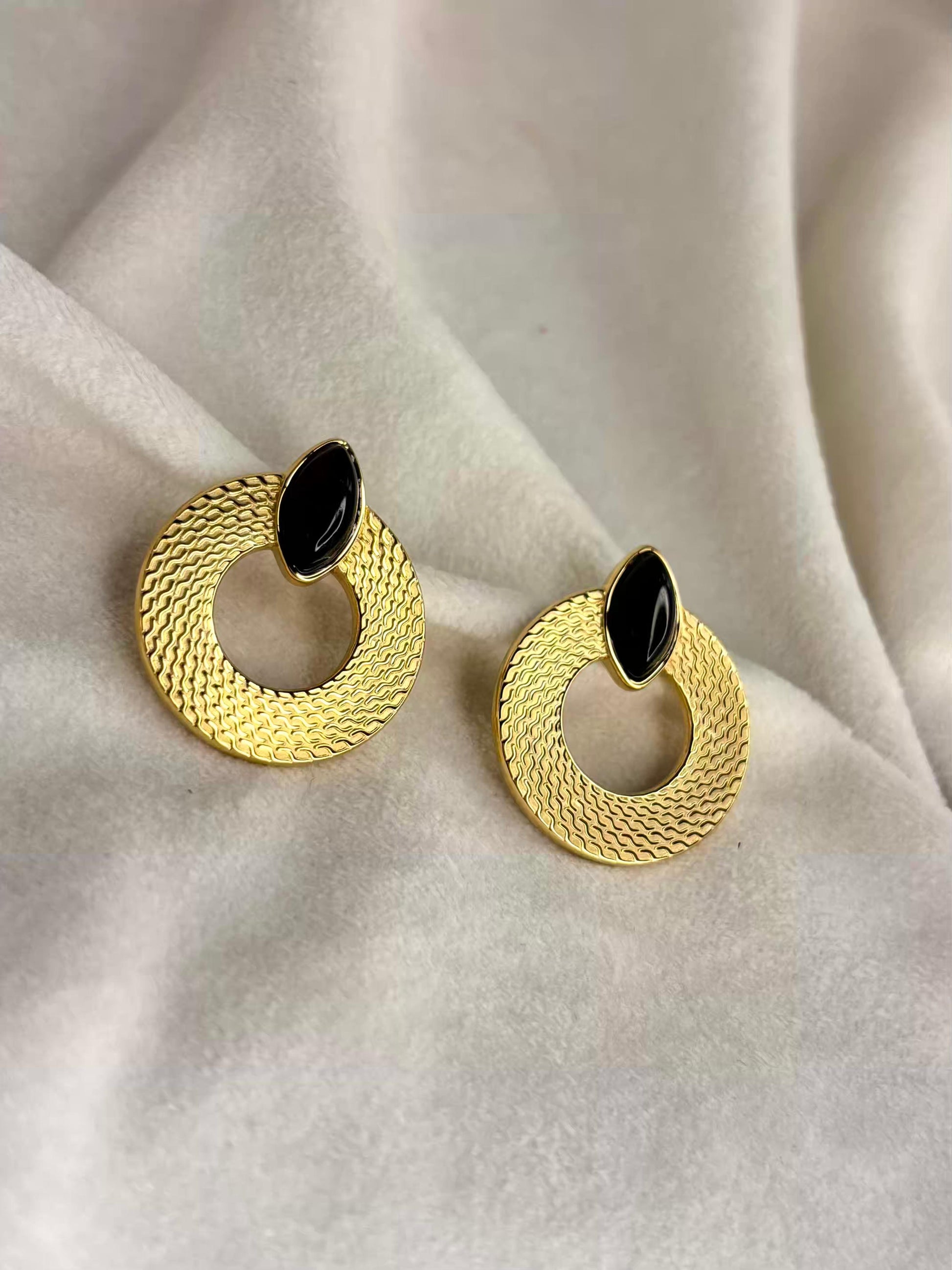 Onyx Stone Ear Studs 18K Gold Plated Premium Earrings