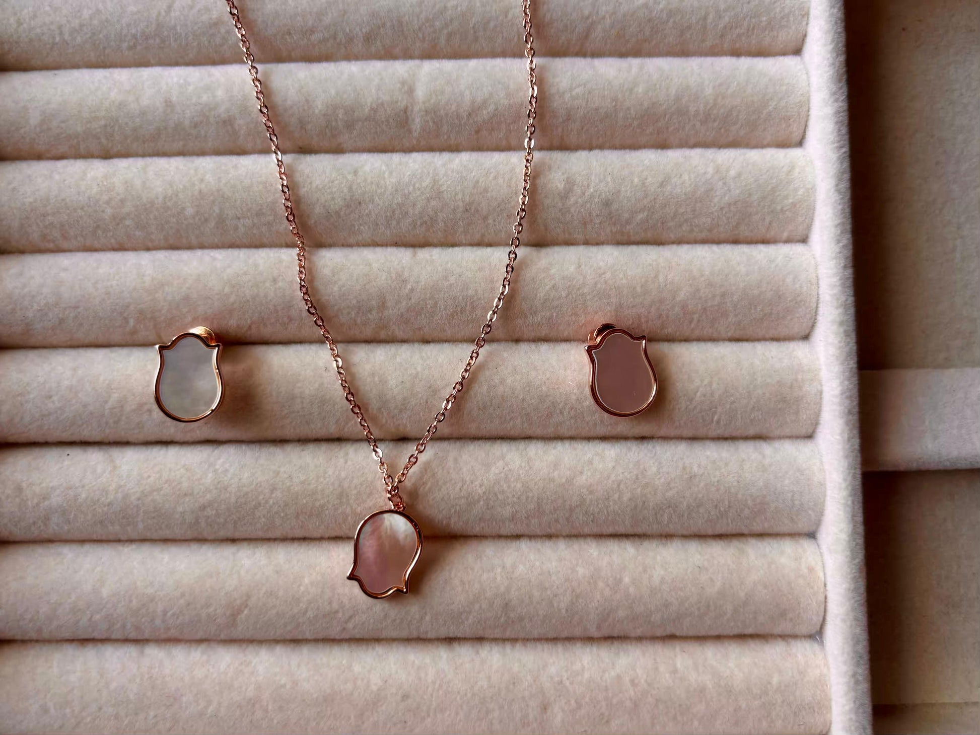 Bended Mirror Necklace And Ear Studds Rose Gold Premium Necklace