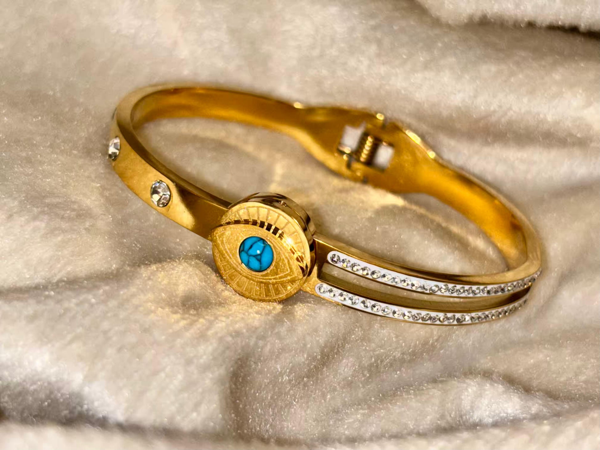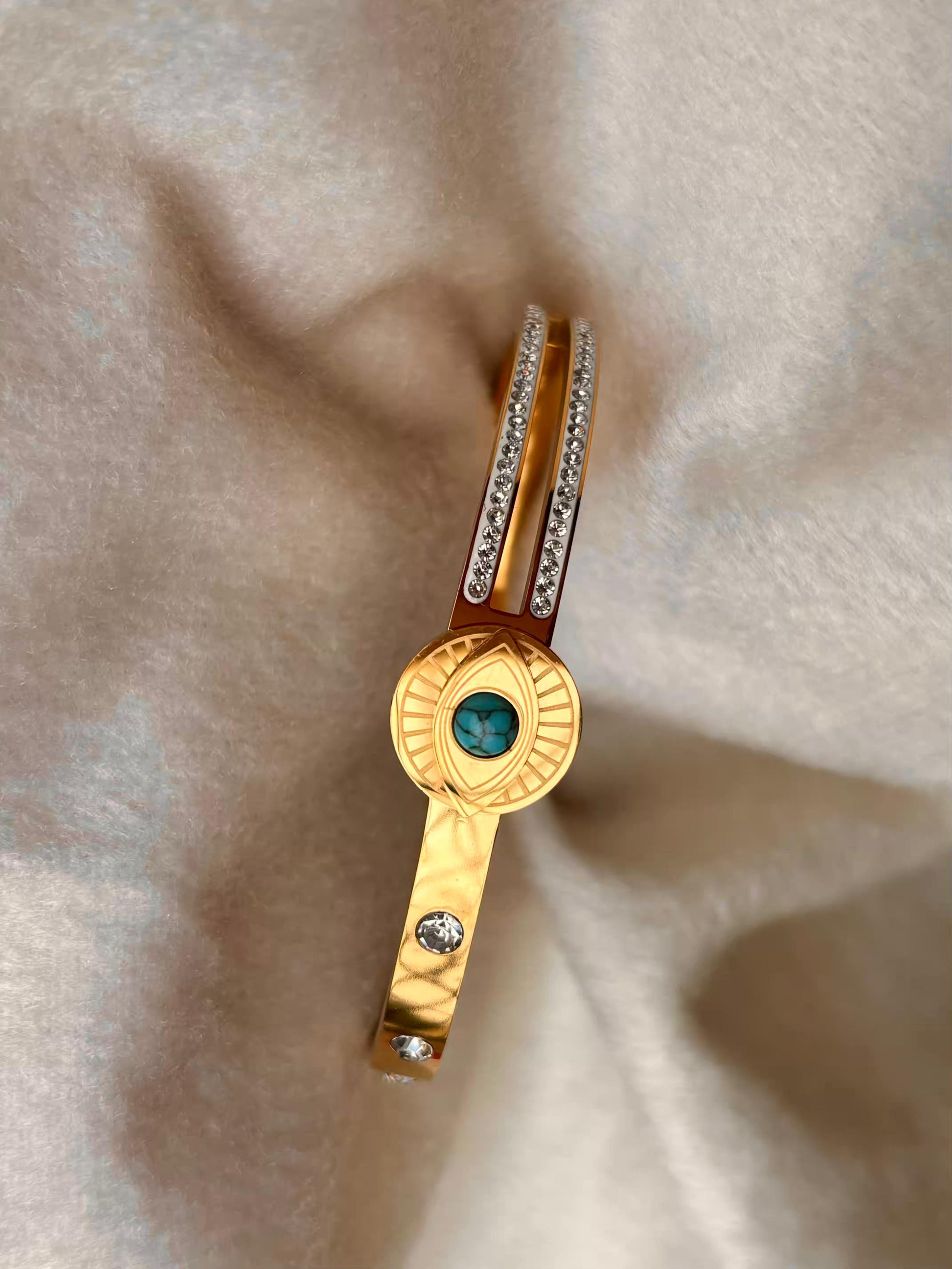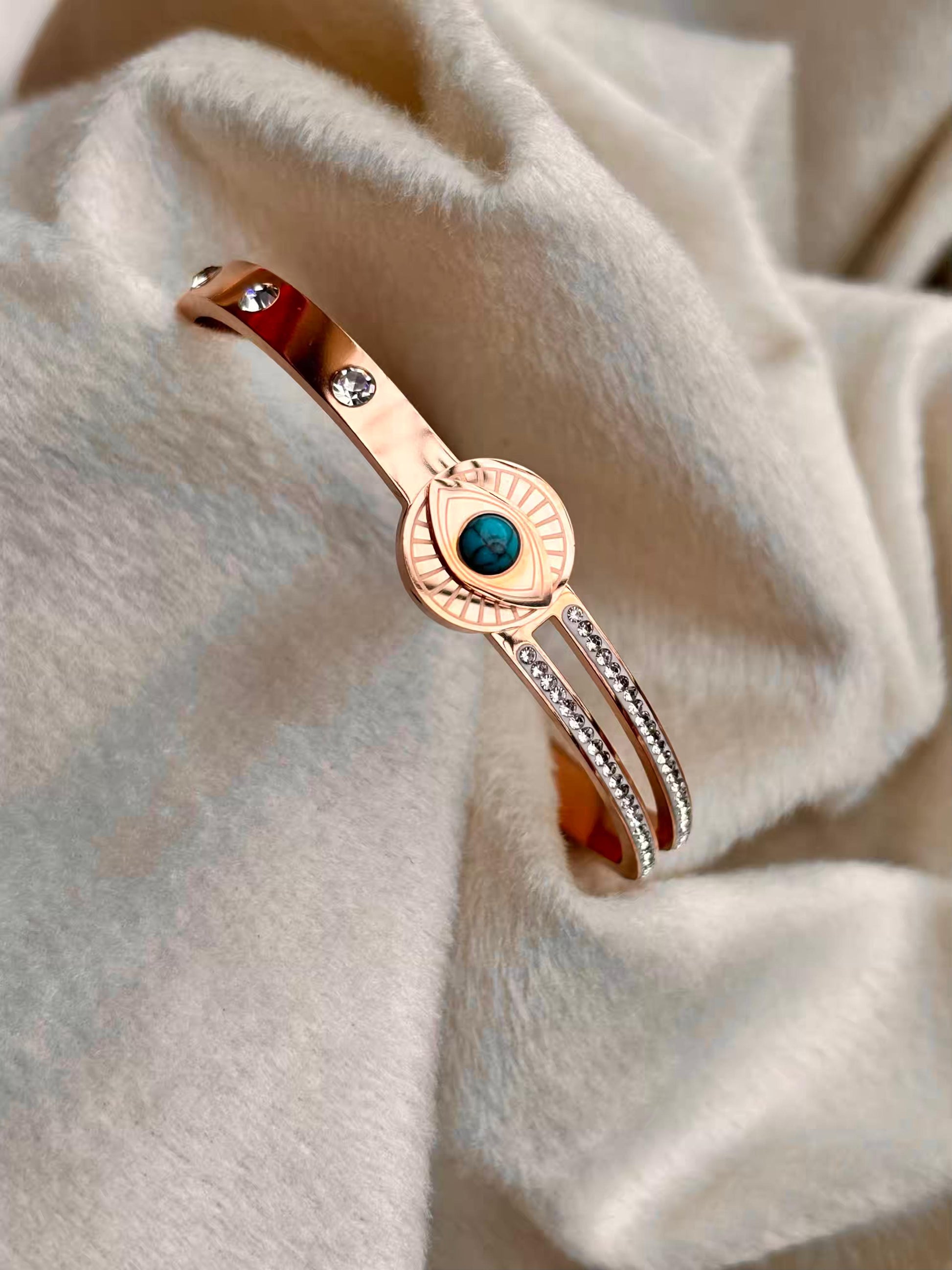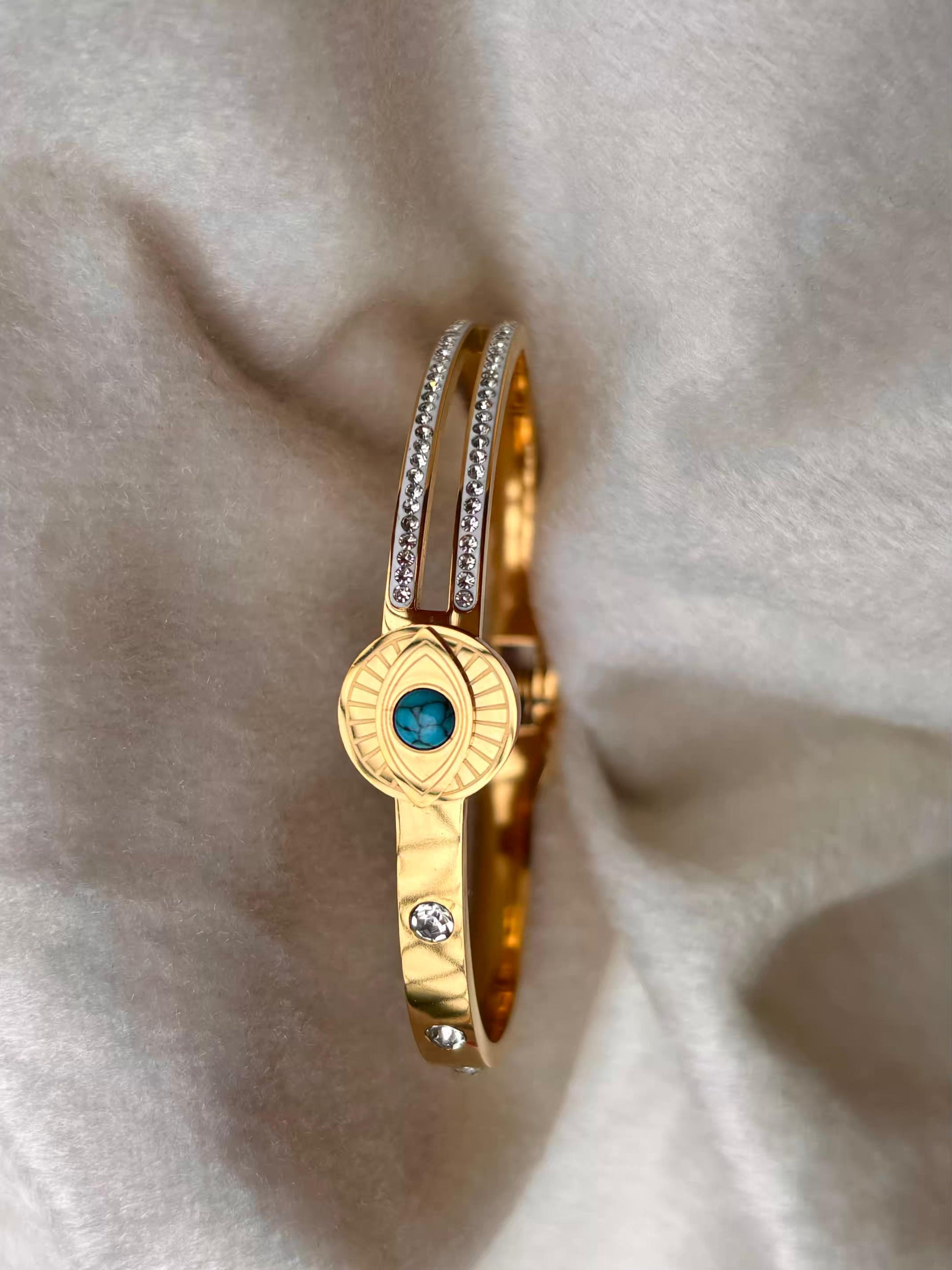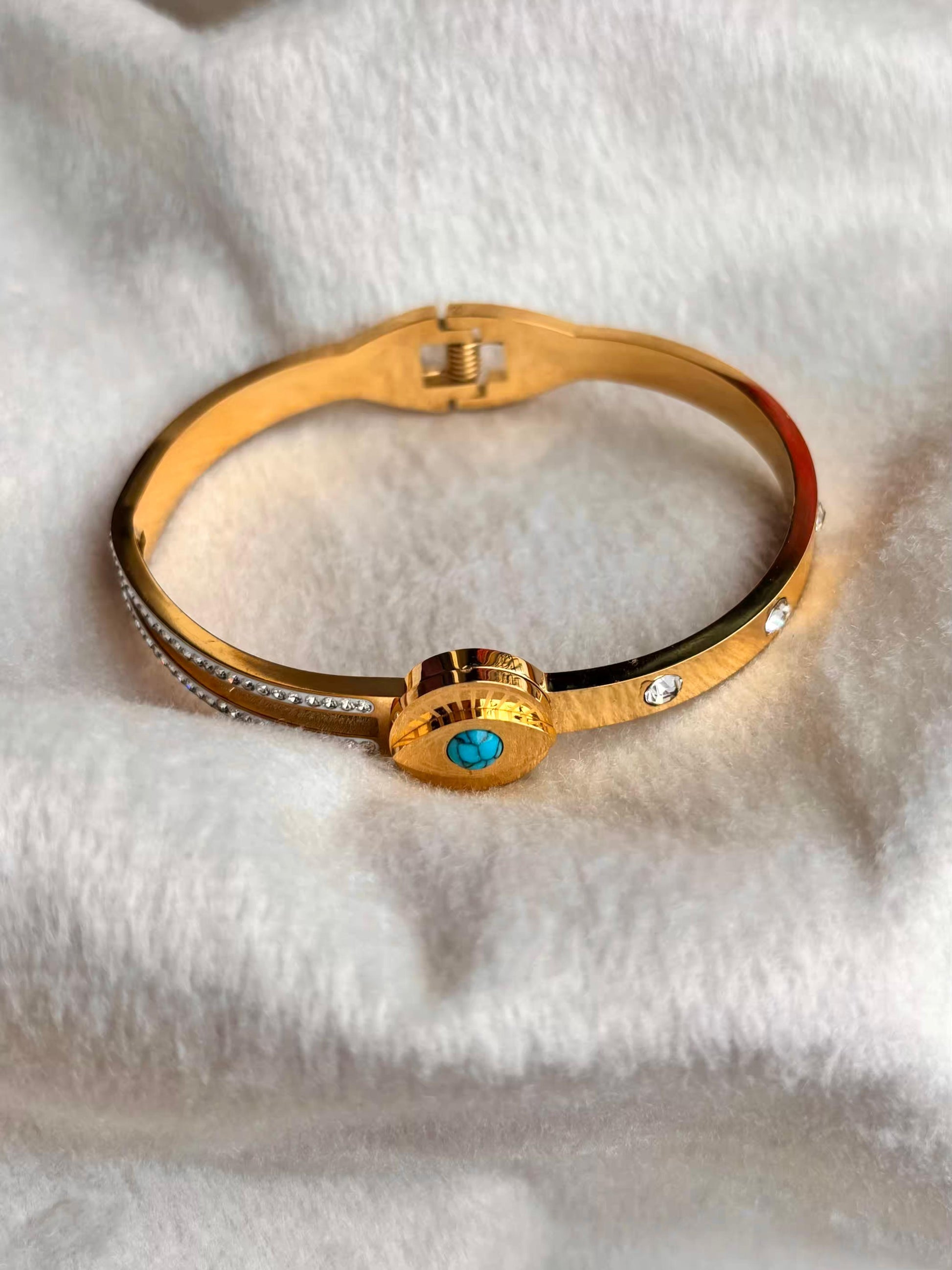 For Thin Wrist Turquoise Eye Bangle 18K Gold plated Premium Bangle 2.2 - 2.4 Size
