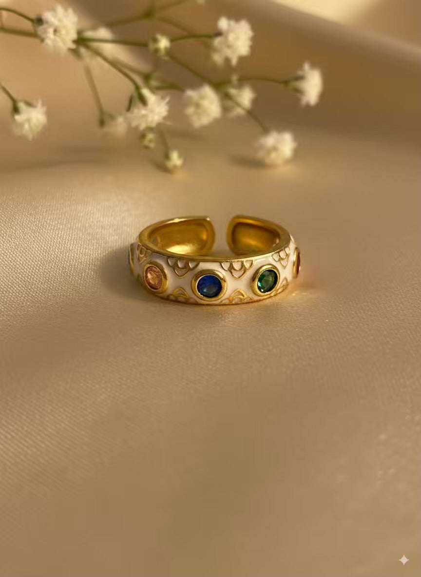 White Colourful Gold Plated Premium Ring (Adjustable)