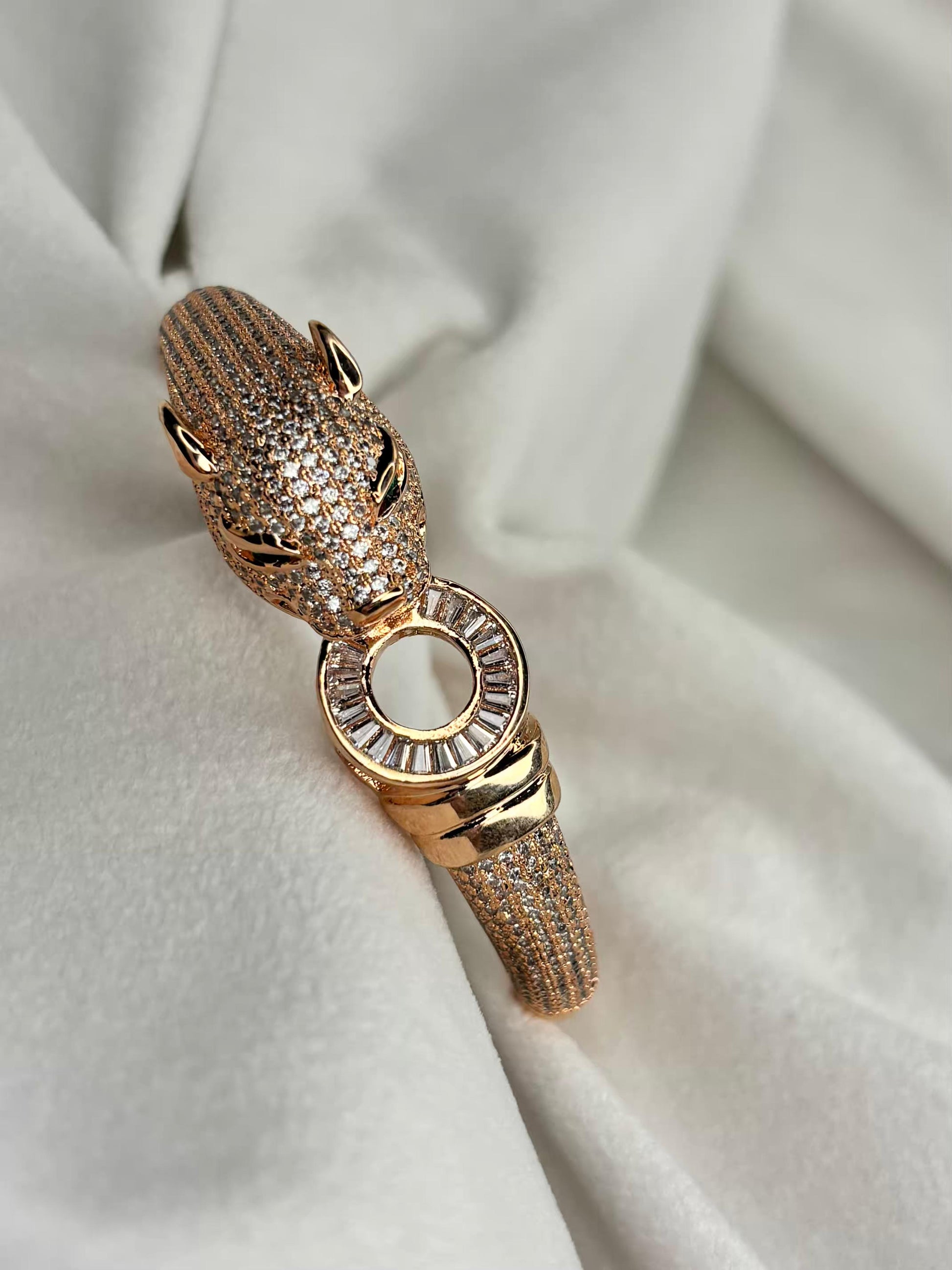 Tiger Head Premium Kada Bangle Rose Gold Plated