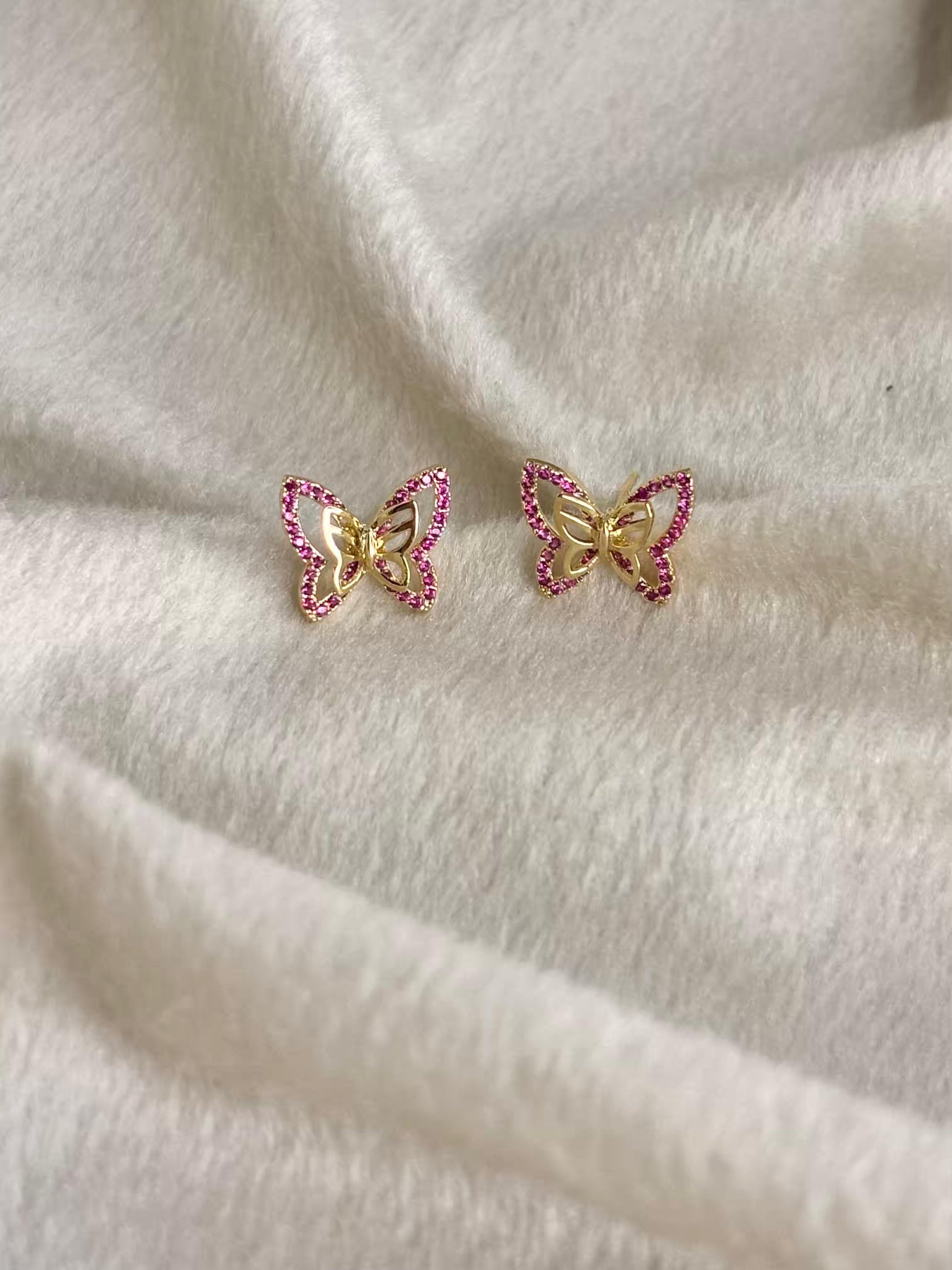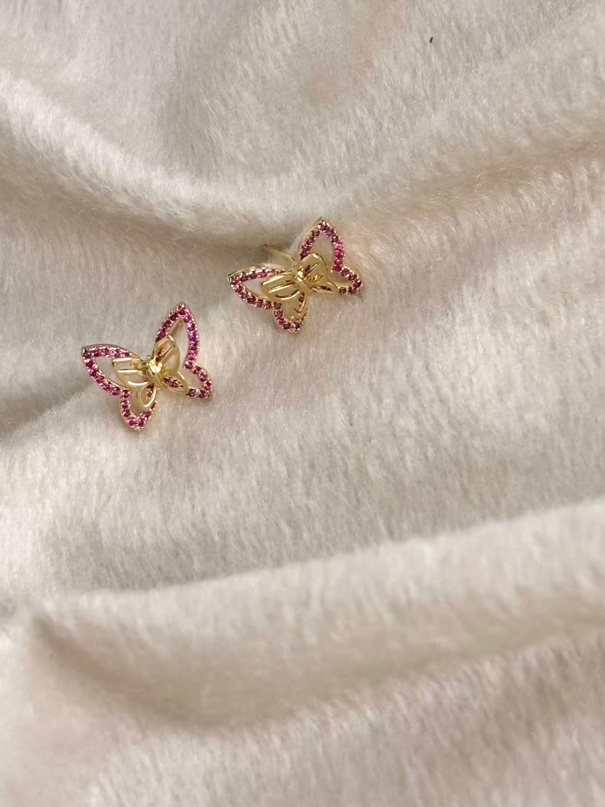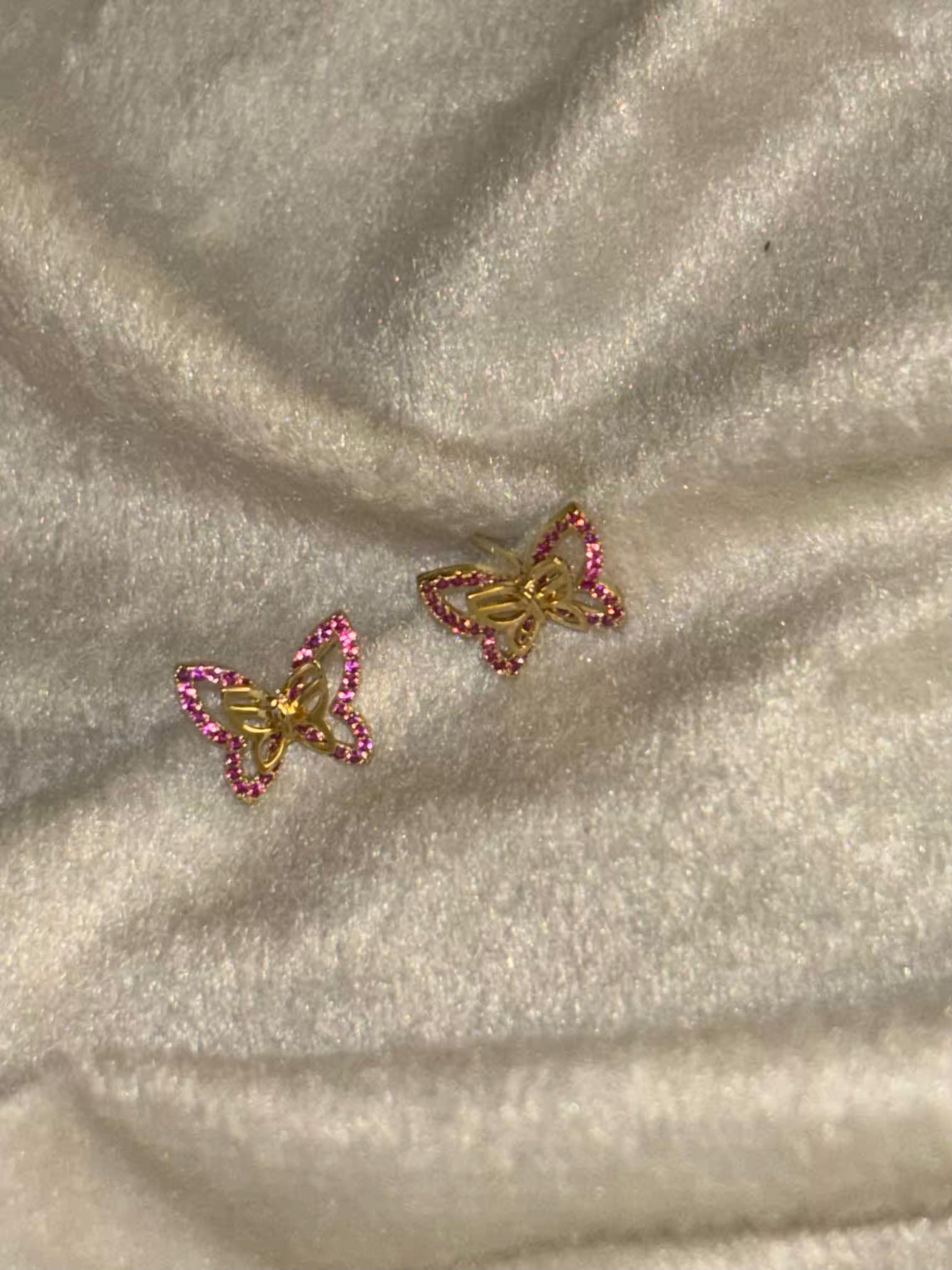 Pink Accent Butterfly Earrings 18K Gold Plated Premium Earrings