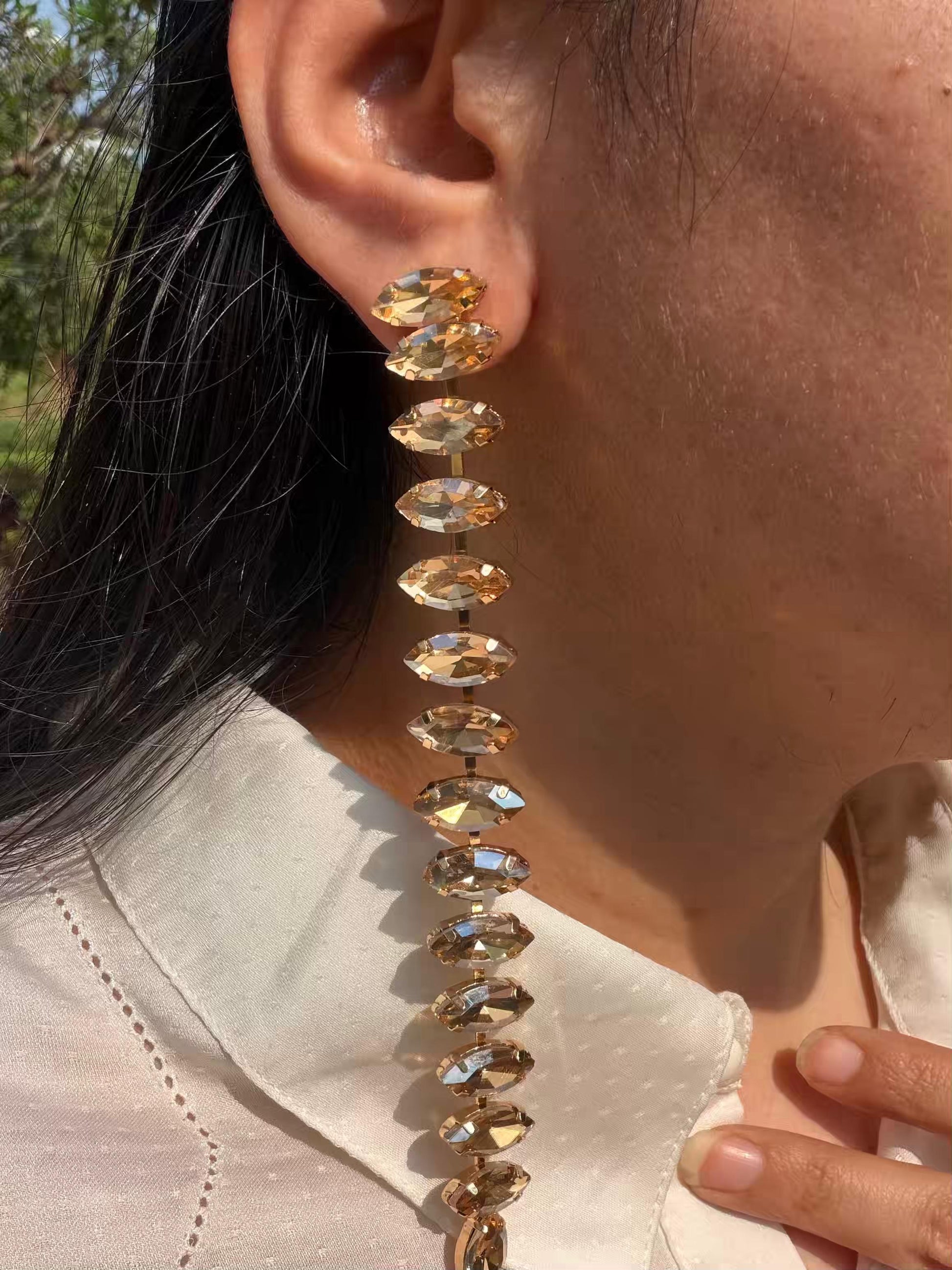 Golden Colour Stones Layers Long Gold Plated Earrings