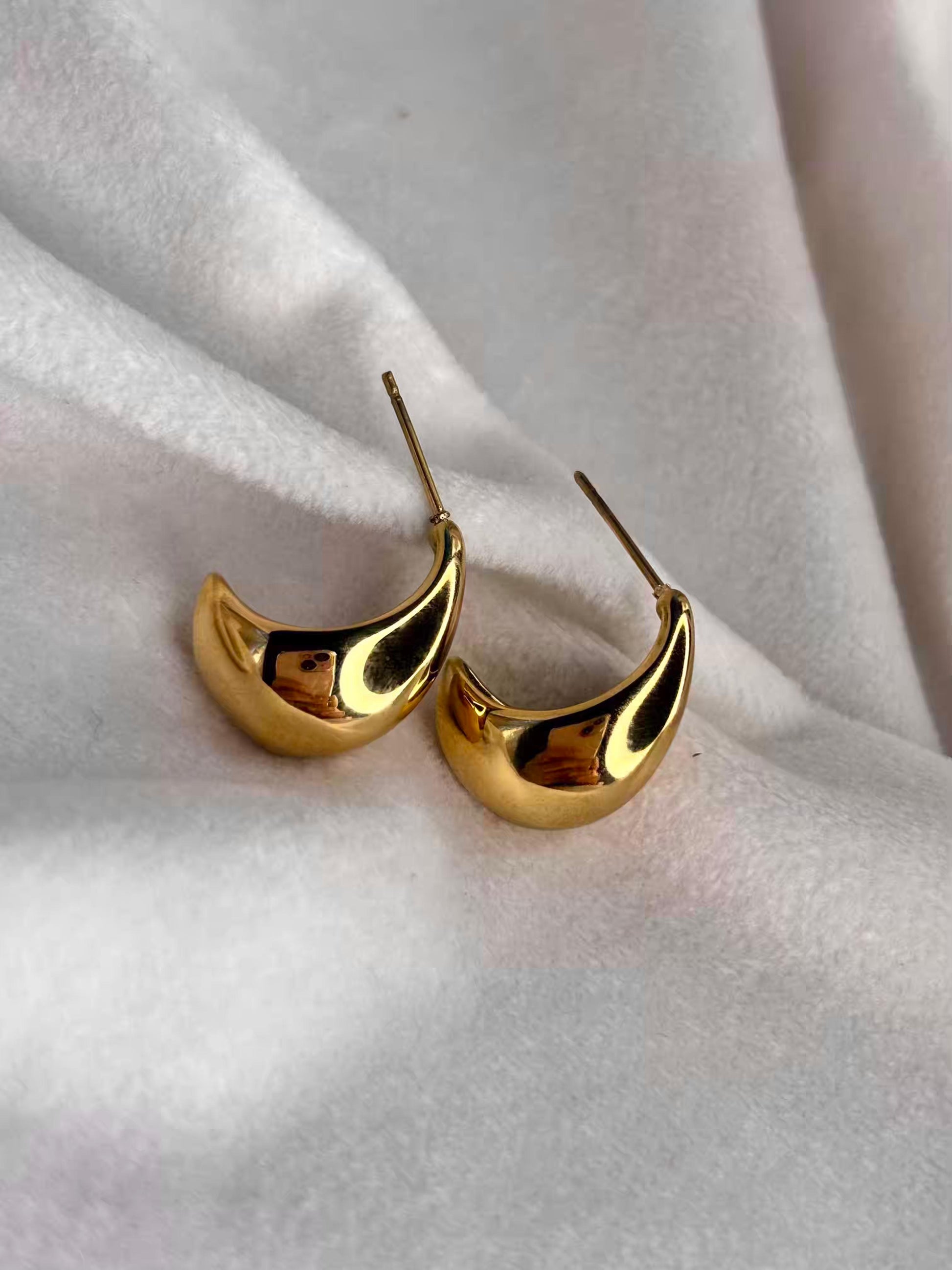 Golden Curve Ear Studds 18K Gold Plated Premium Earrings