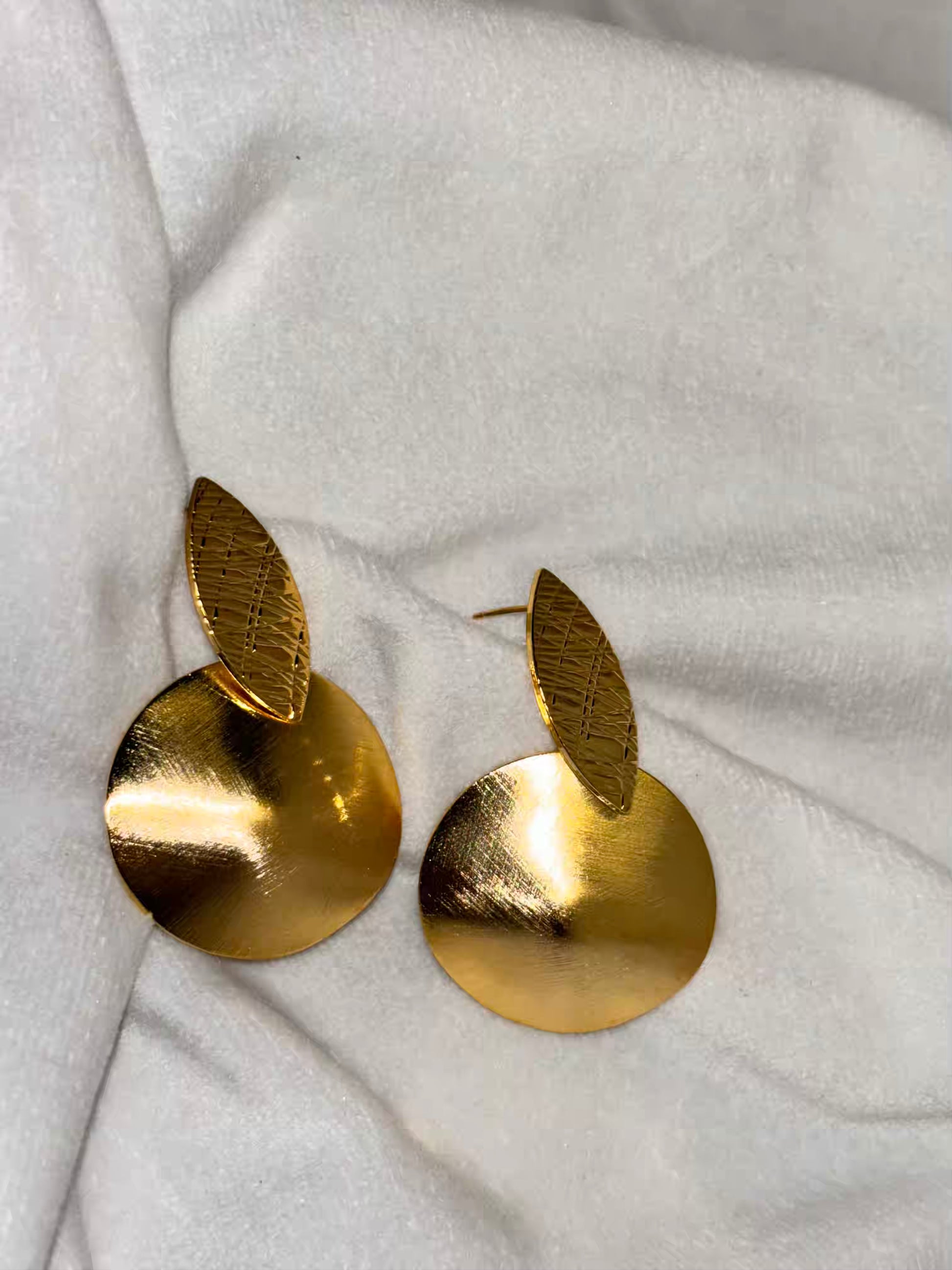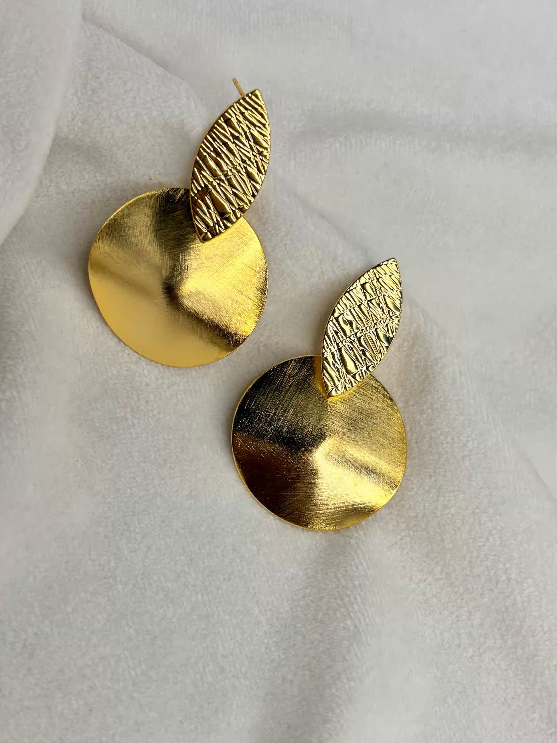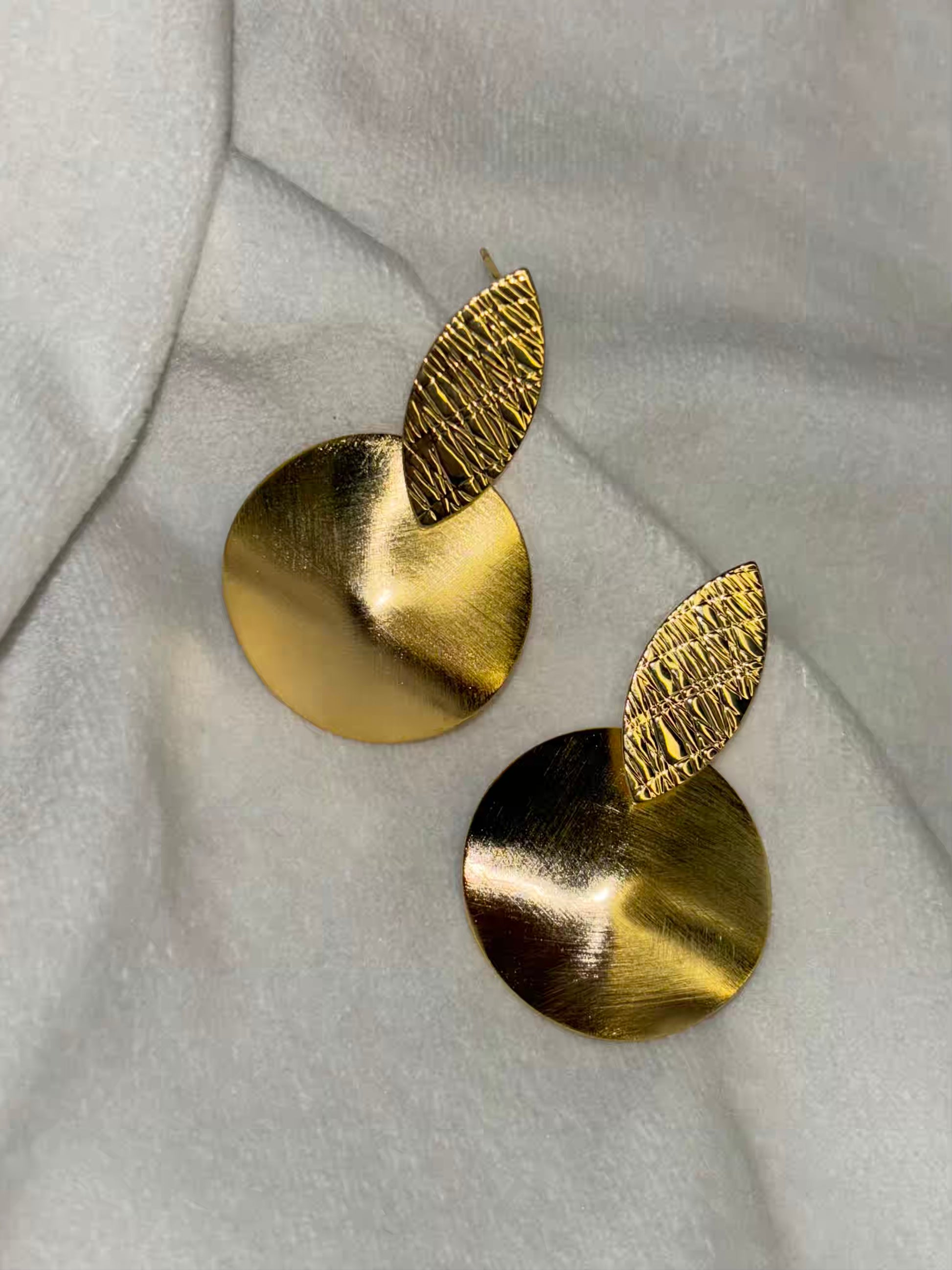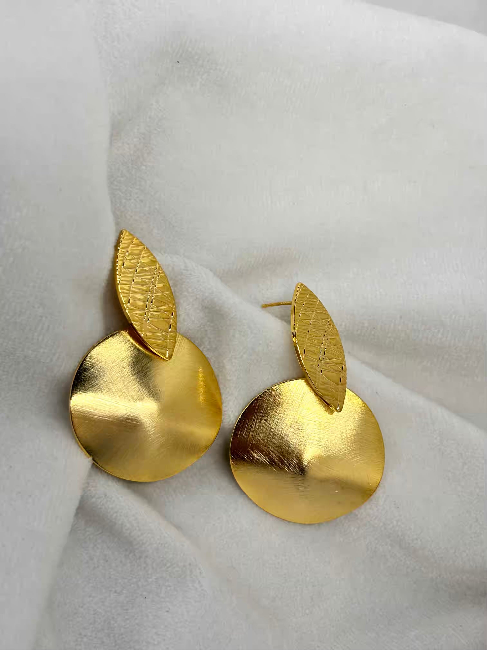 Gold Dish Leaf Earrings Studs - Gold Plated