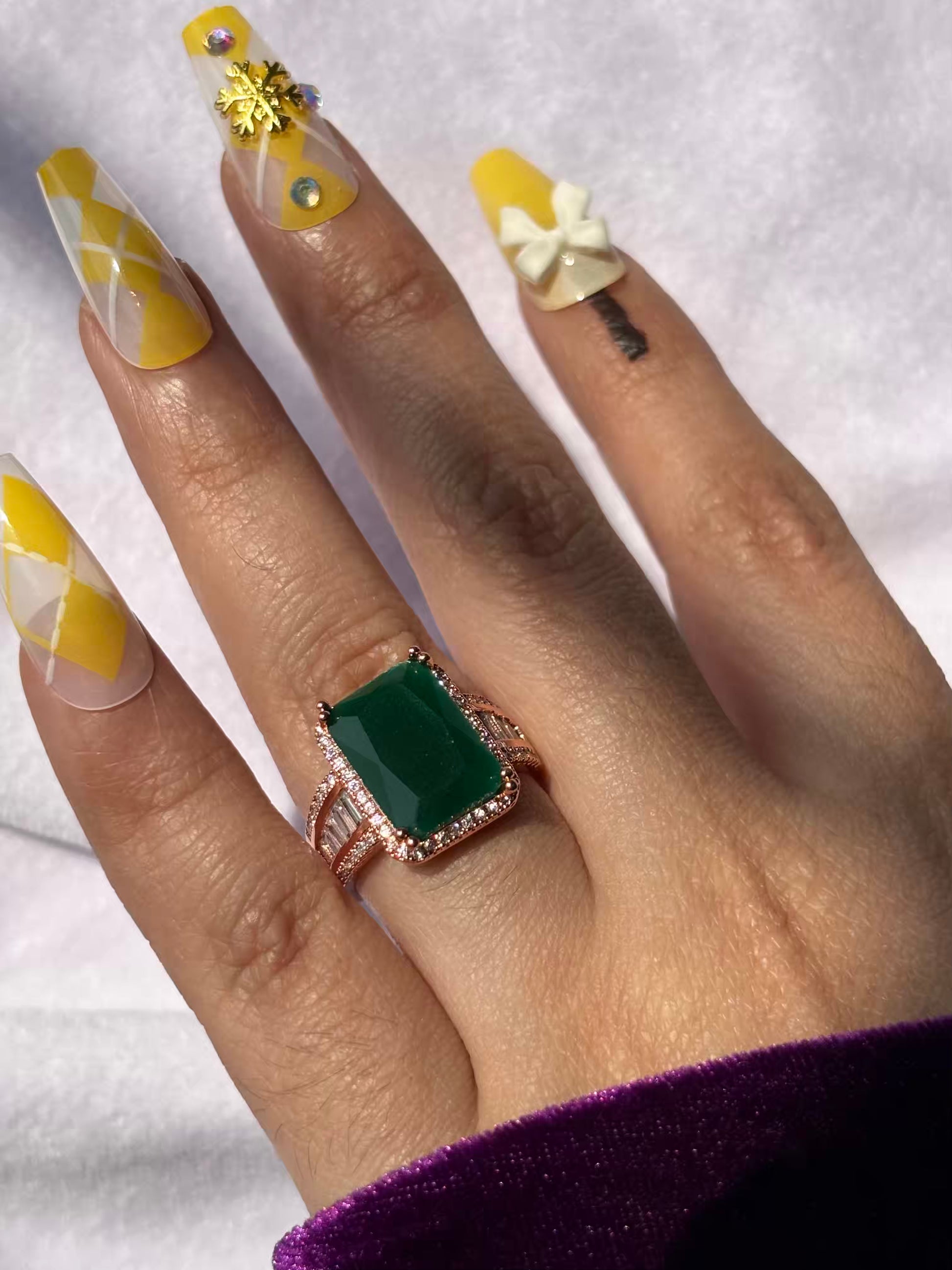 Premium Green Emerald Rectangular Ring( Rose Gold )Adjustable