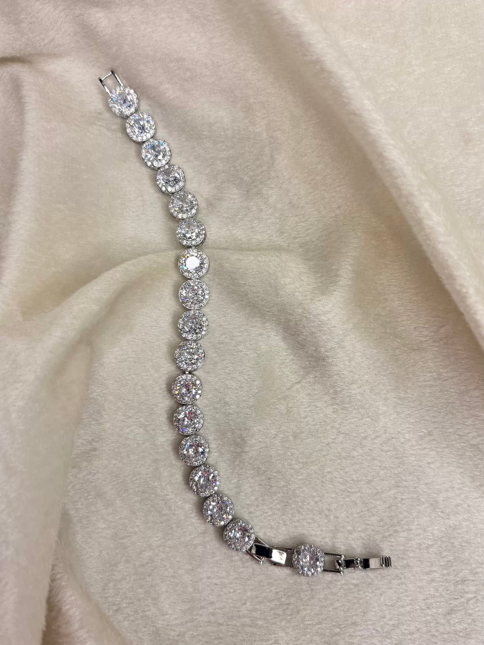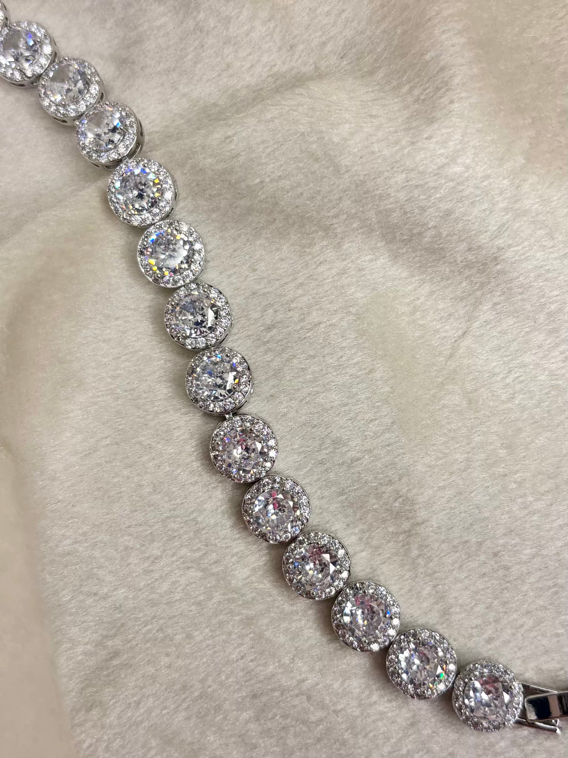 Round Doublet Tennis Bracelet with Loaded Diamonds - Silver Plated