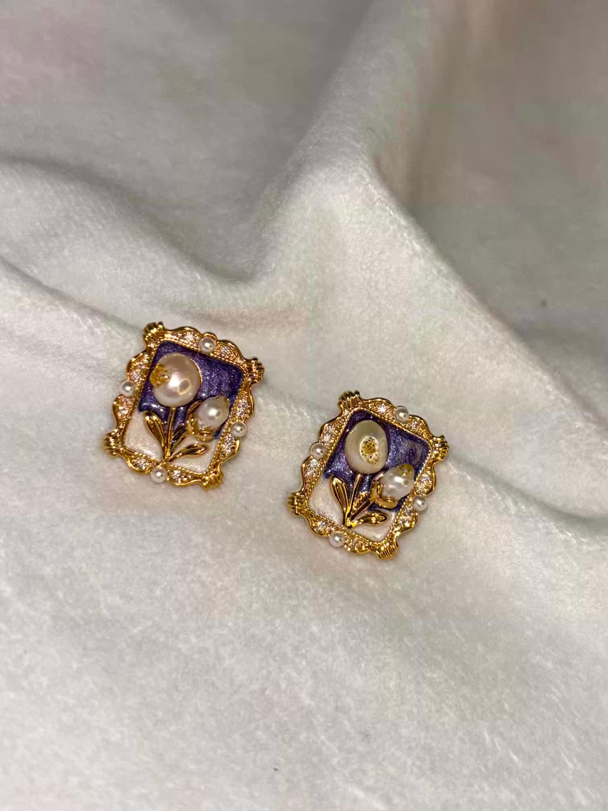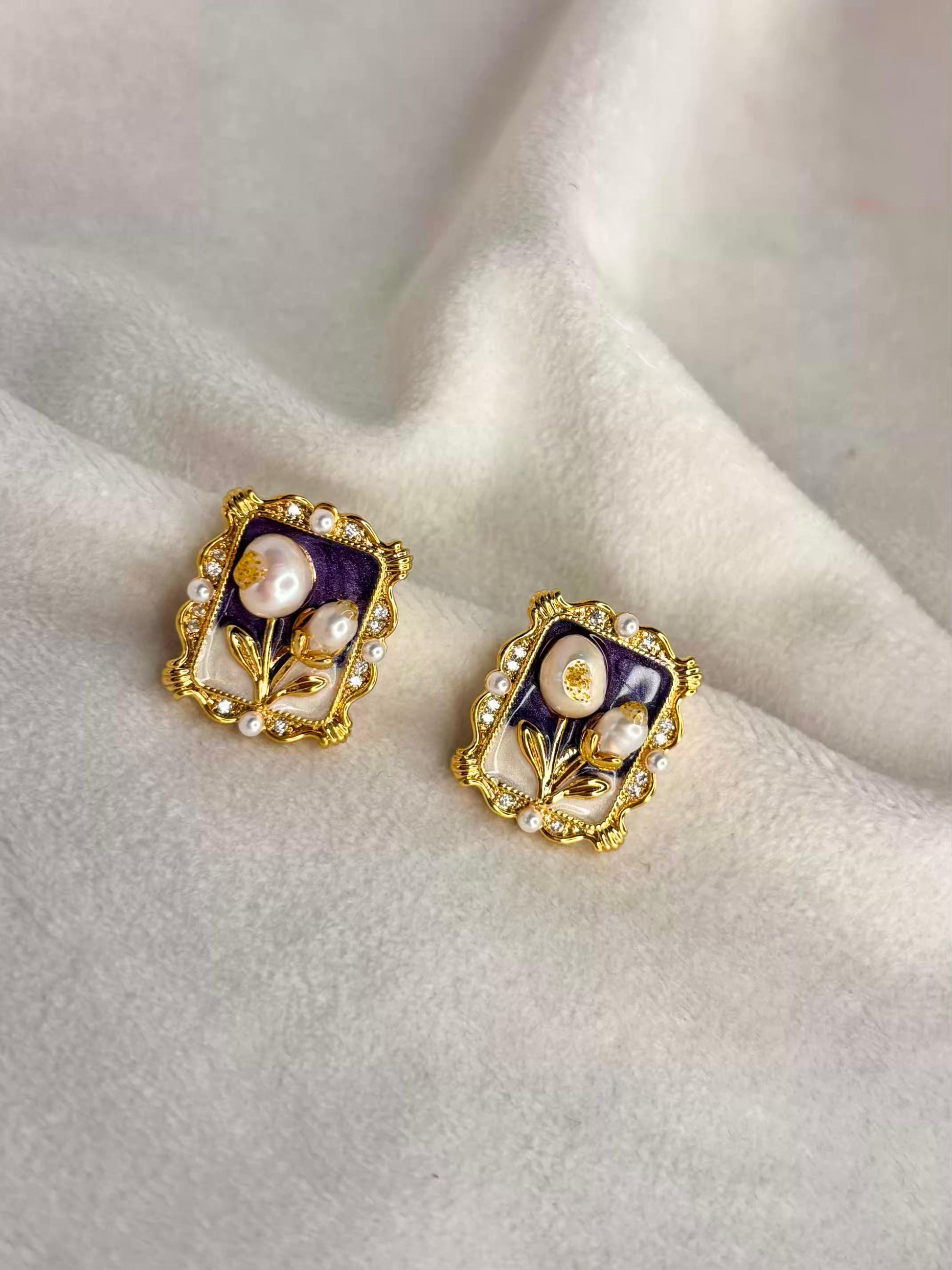 Portrait Flower Ear Studds 18K Gold Plated Premium Earrings