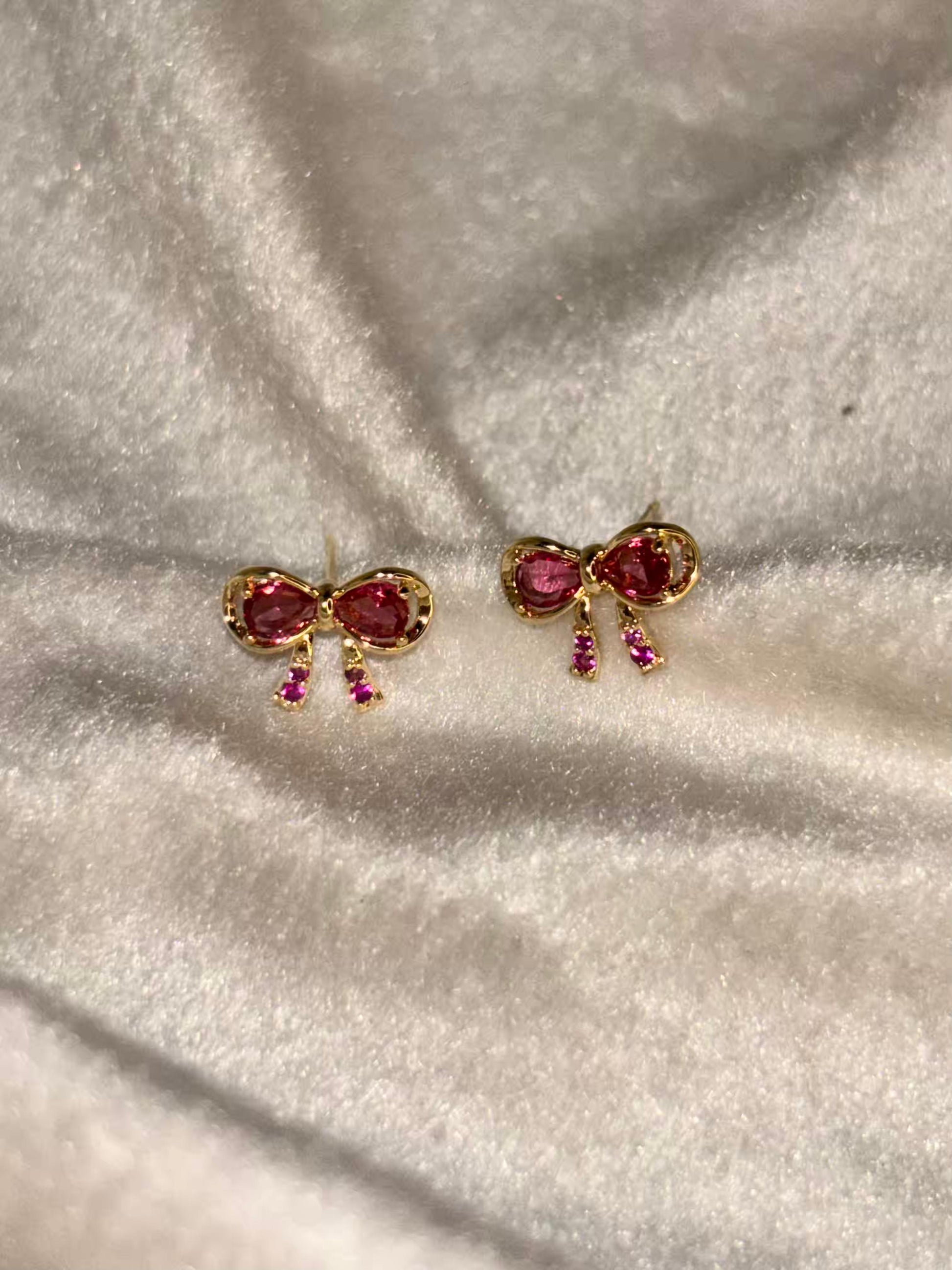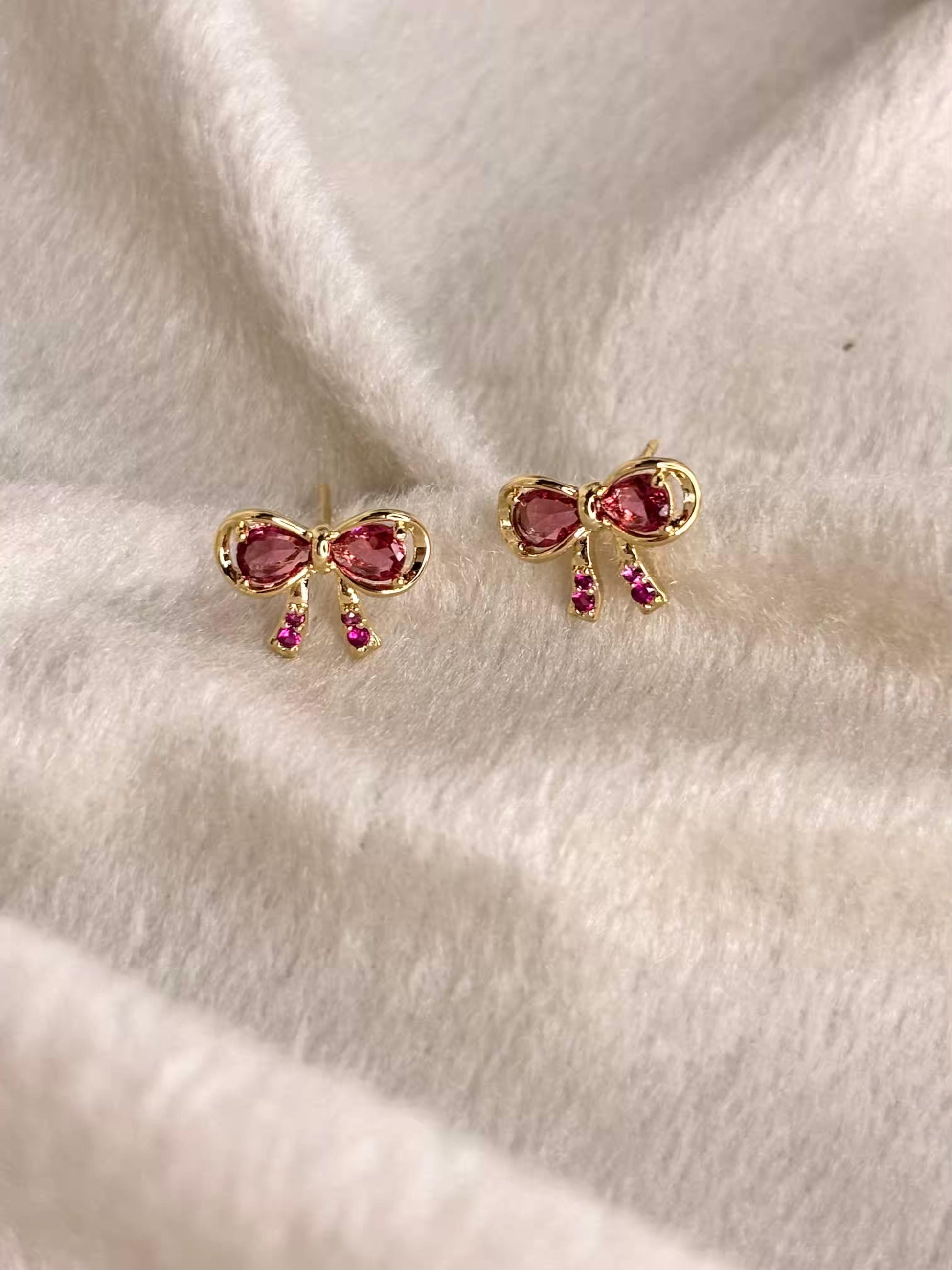 Magenta Bow Earrings 18K Gold Plated Premium Earrings