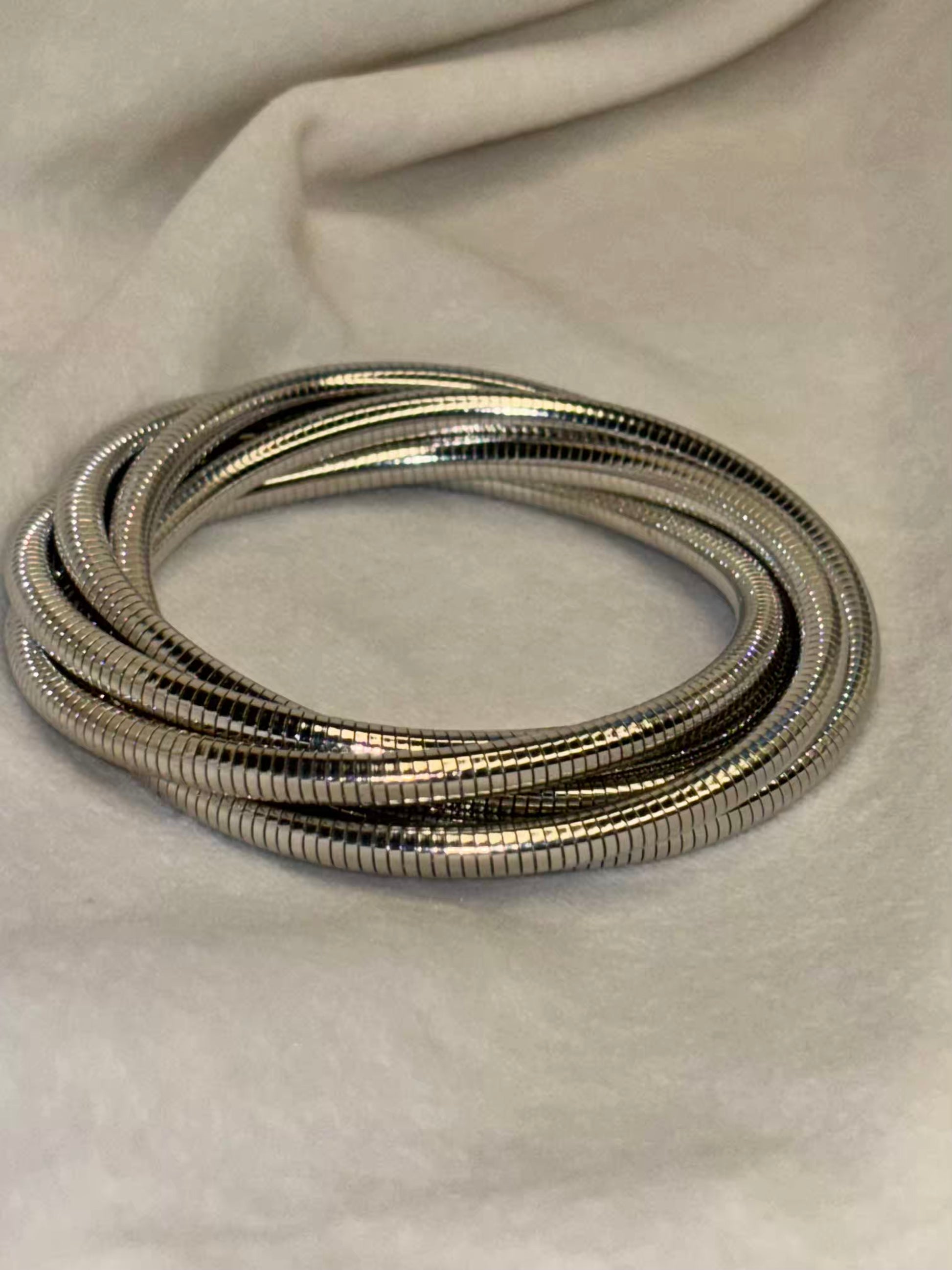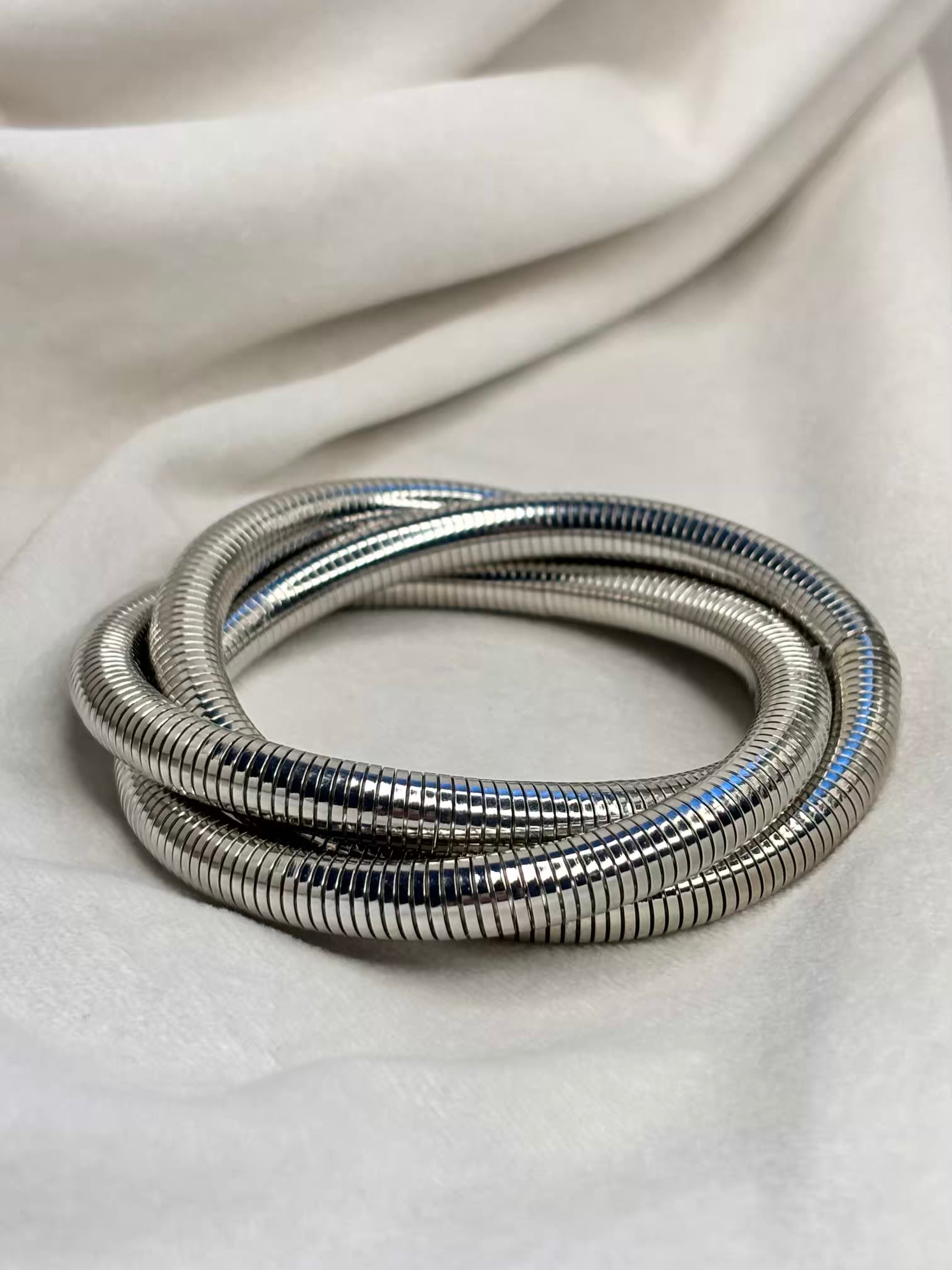 Stretchy Layered Silver Bracelet Cuff