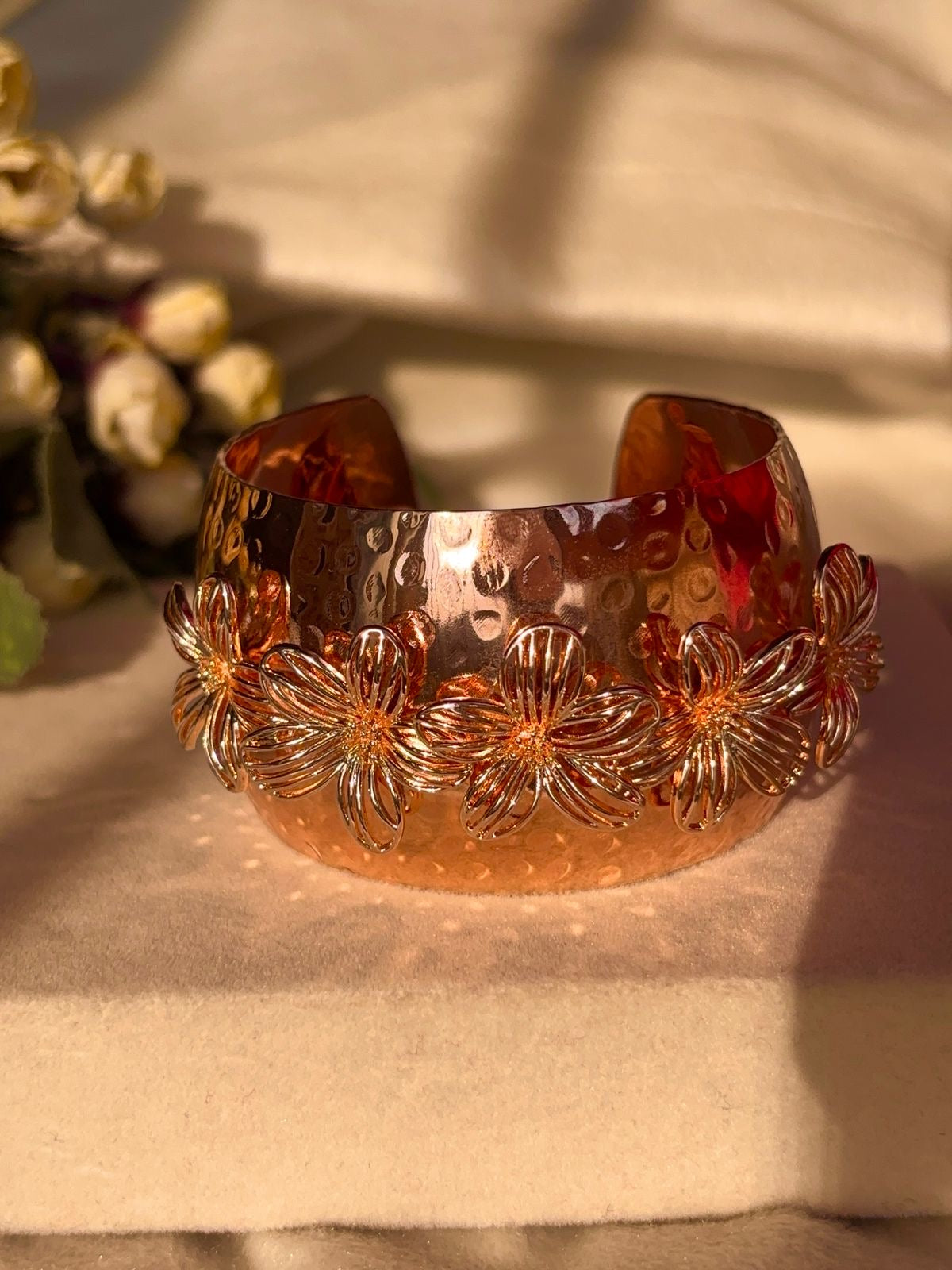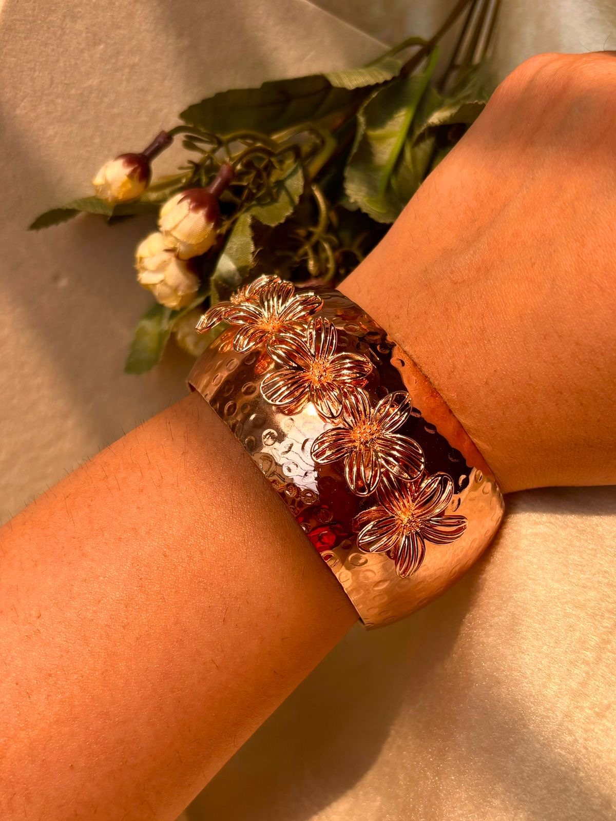 Leo Bloomy Lilies Kada Bracelet Bangle - Rose Gold