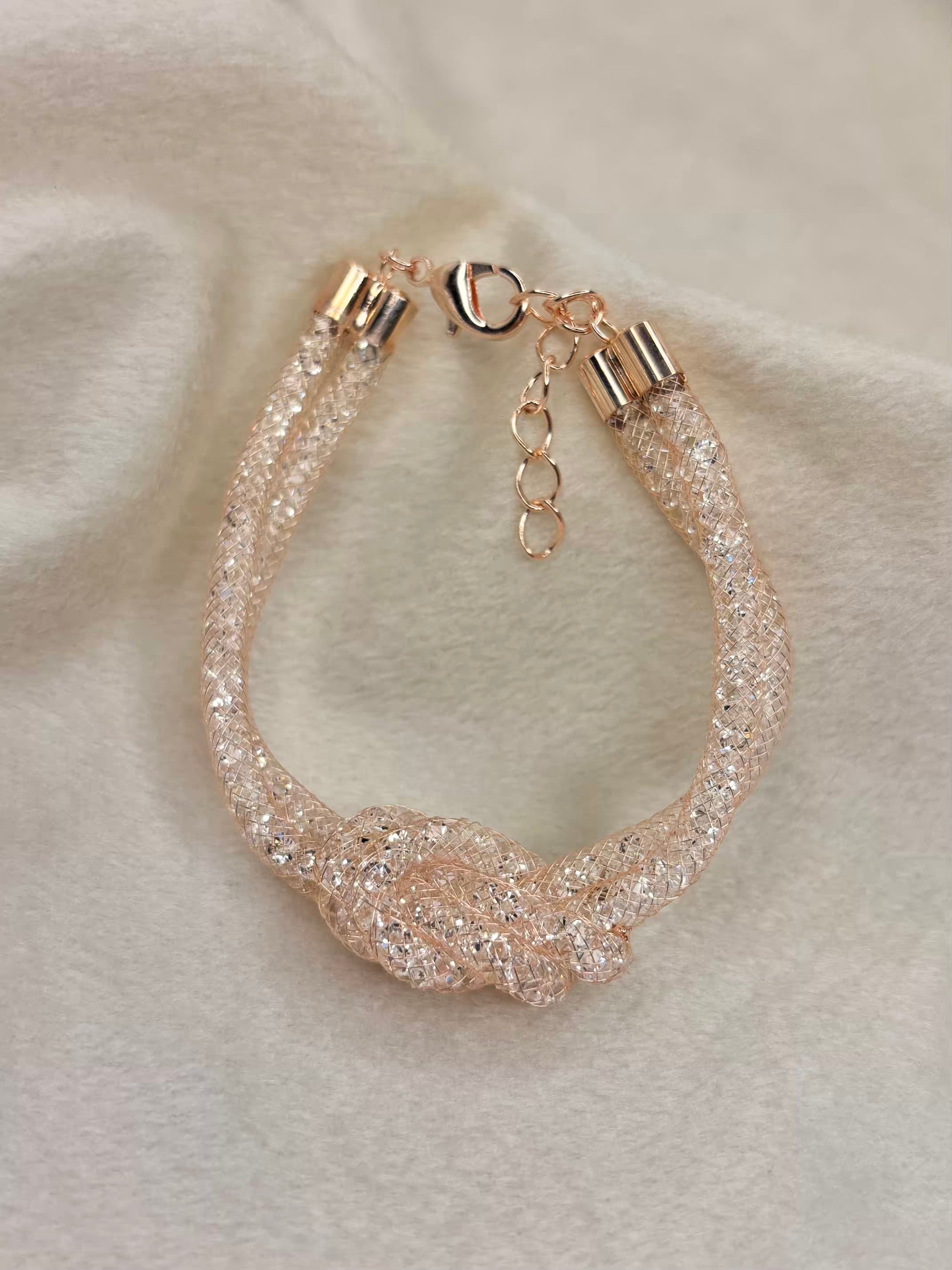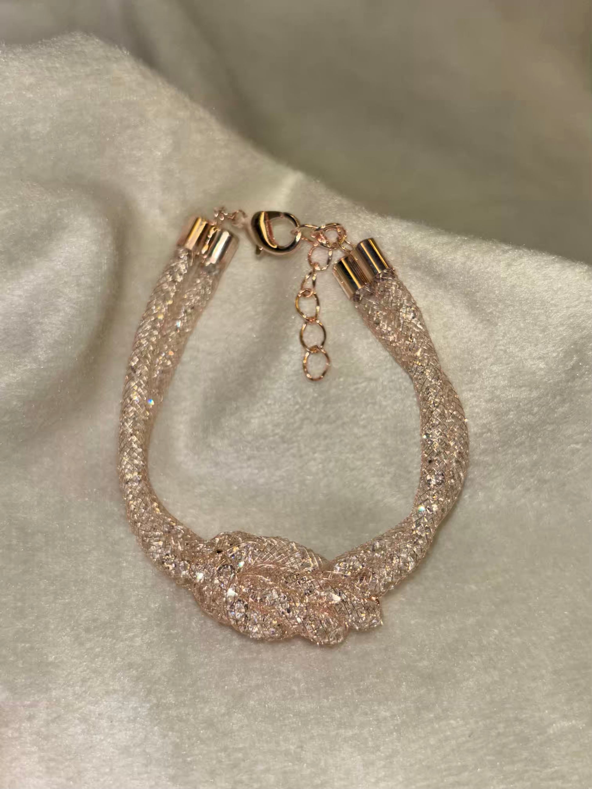 Loaded Diamonds Wired Net Bracelet Knots - Rose Gold Plated