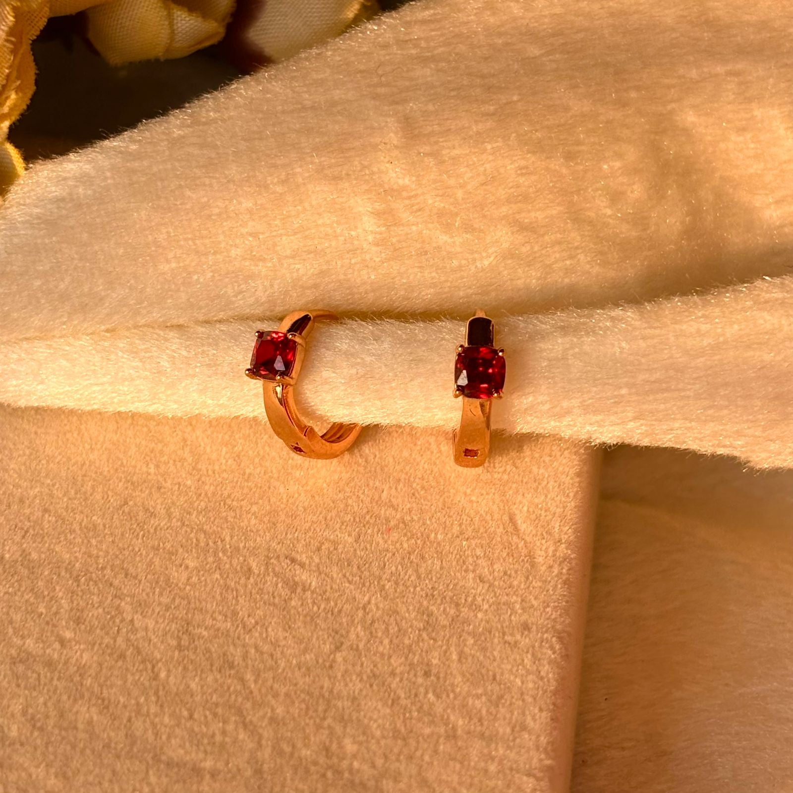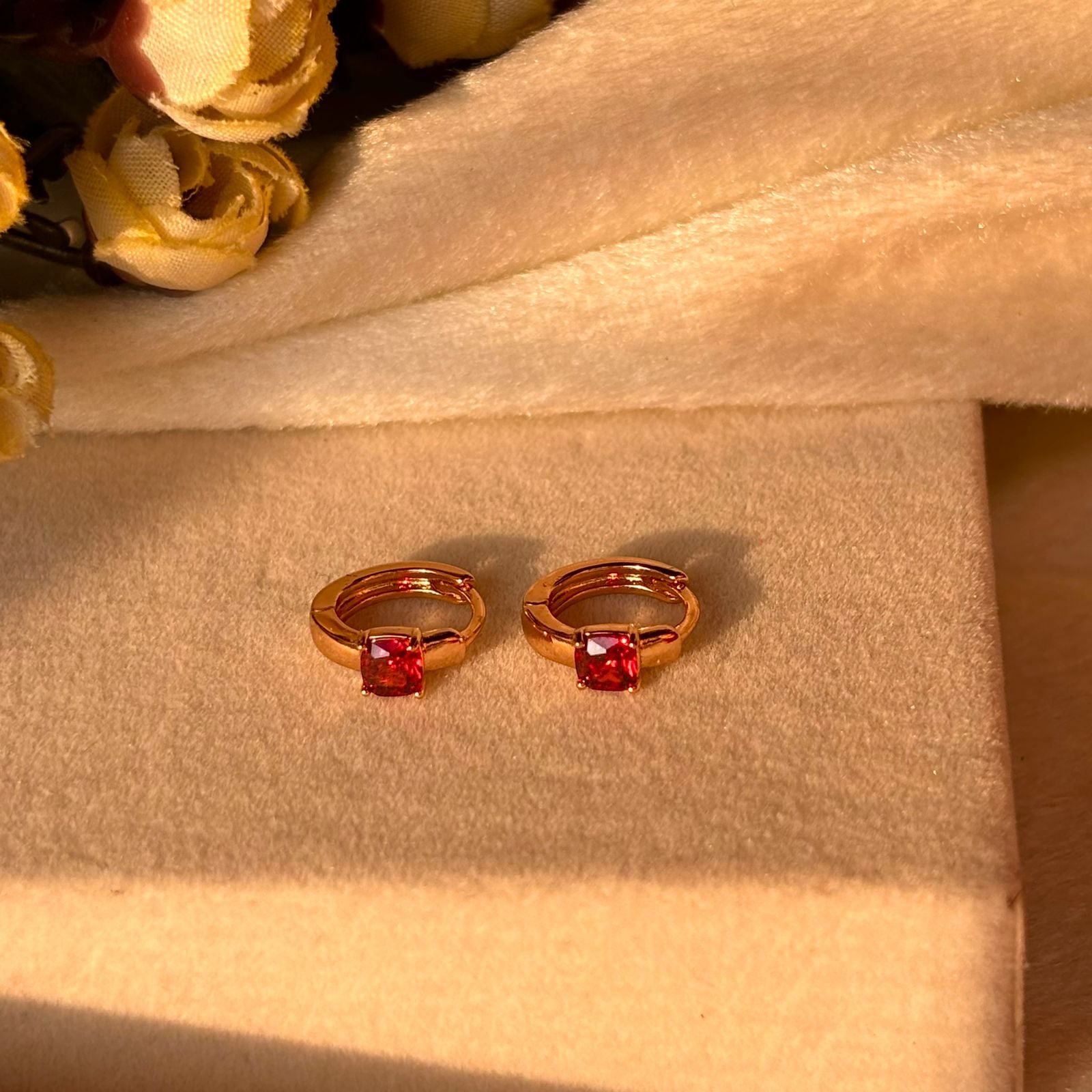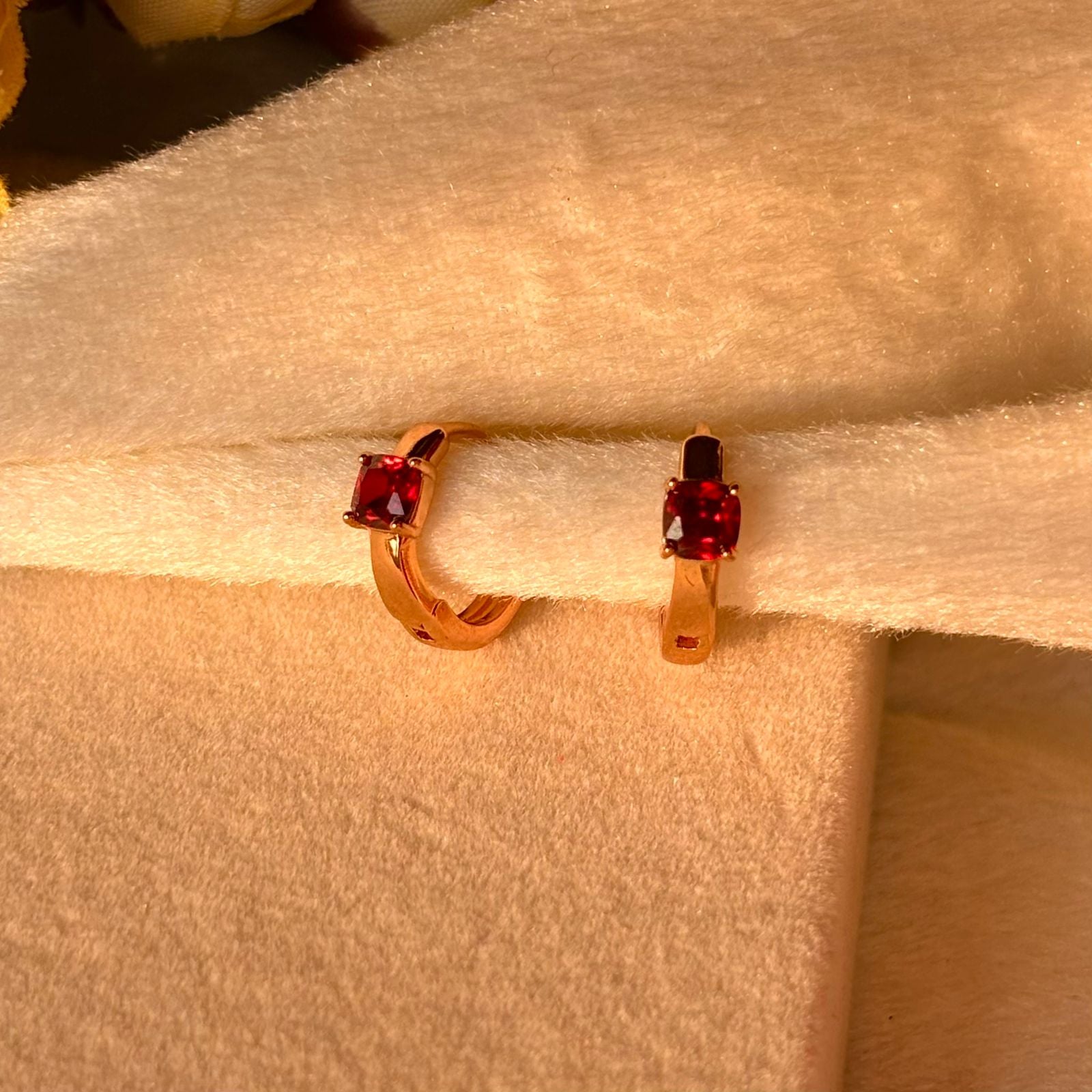 Red Solitaire Tiny Bali Earrings - Gold Plated