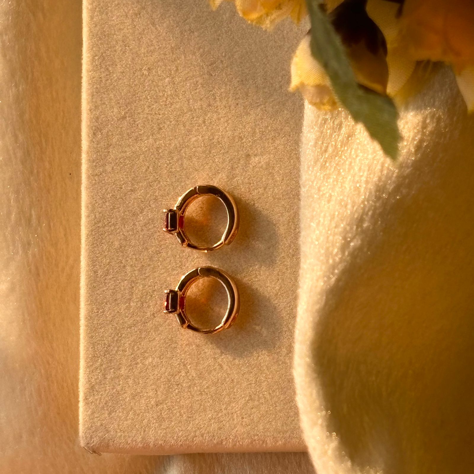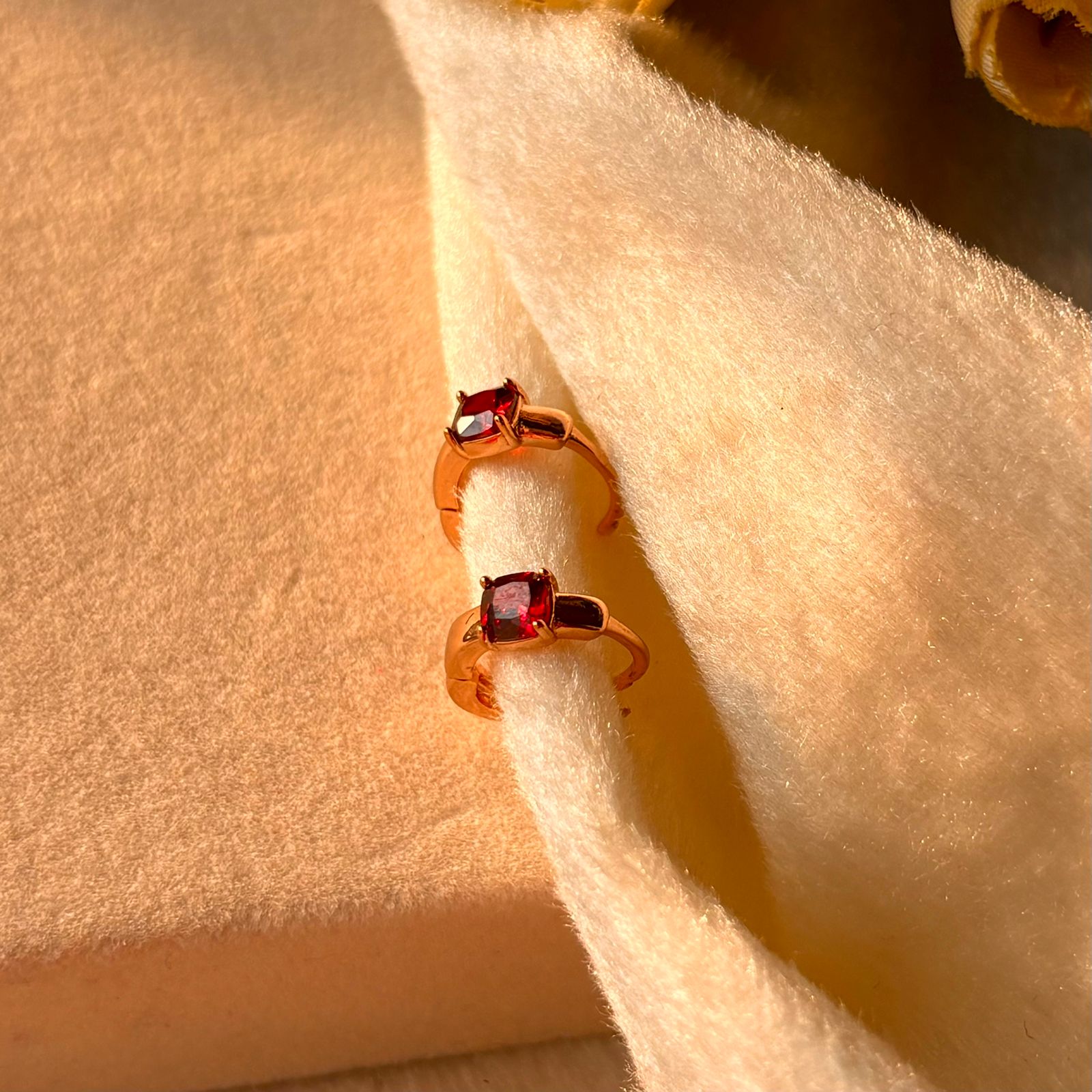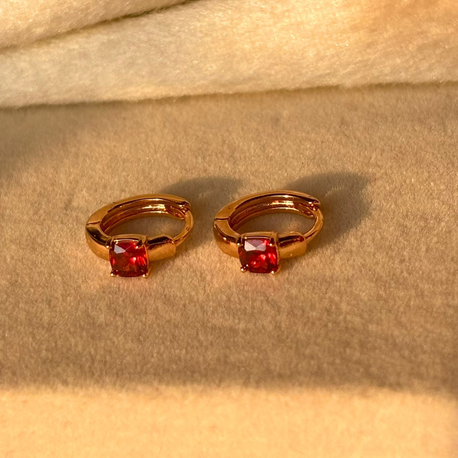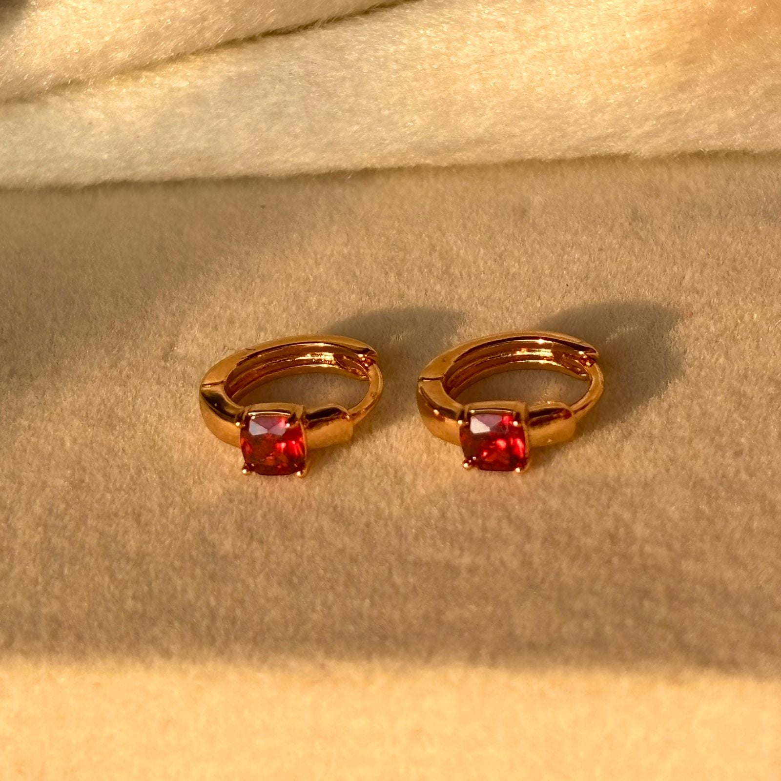 Red Solitaire Tiny Bali Earrings - Gold Plated