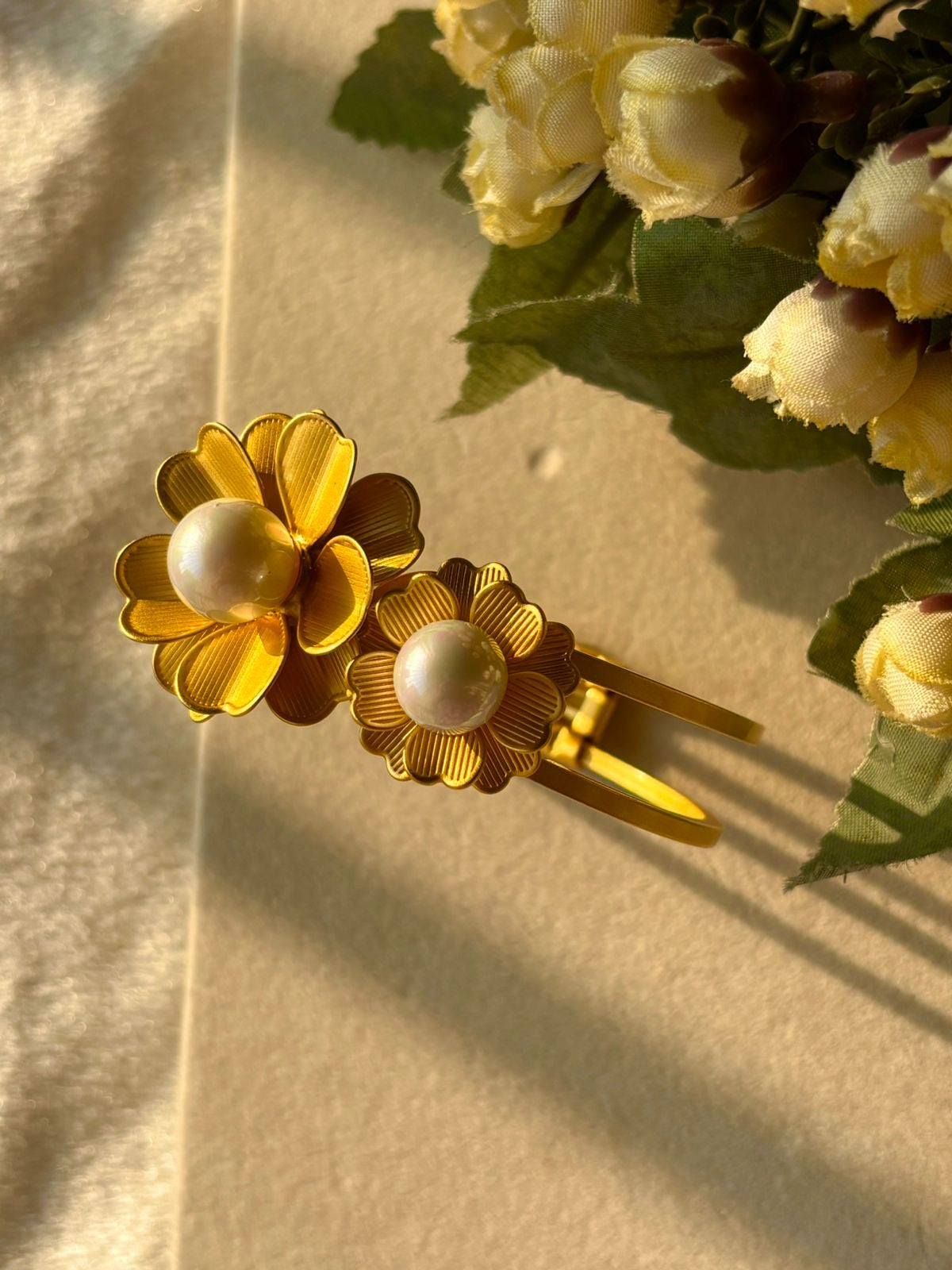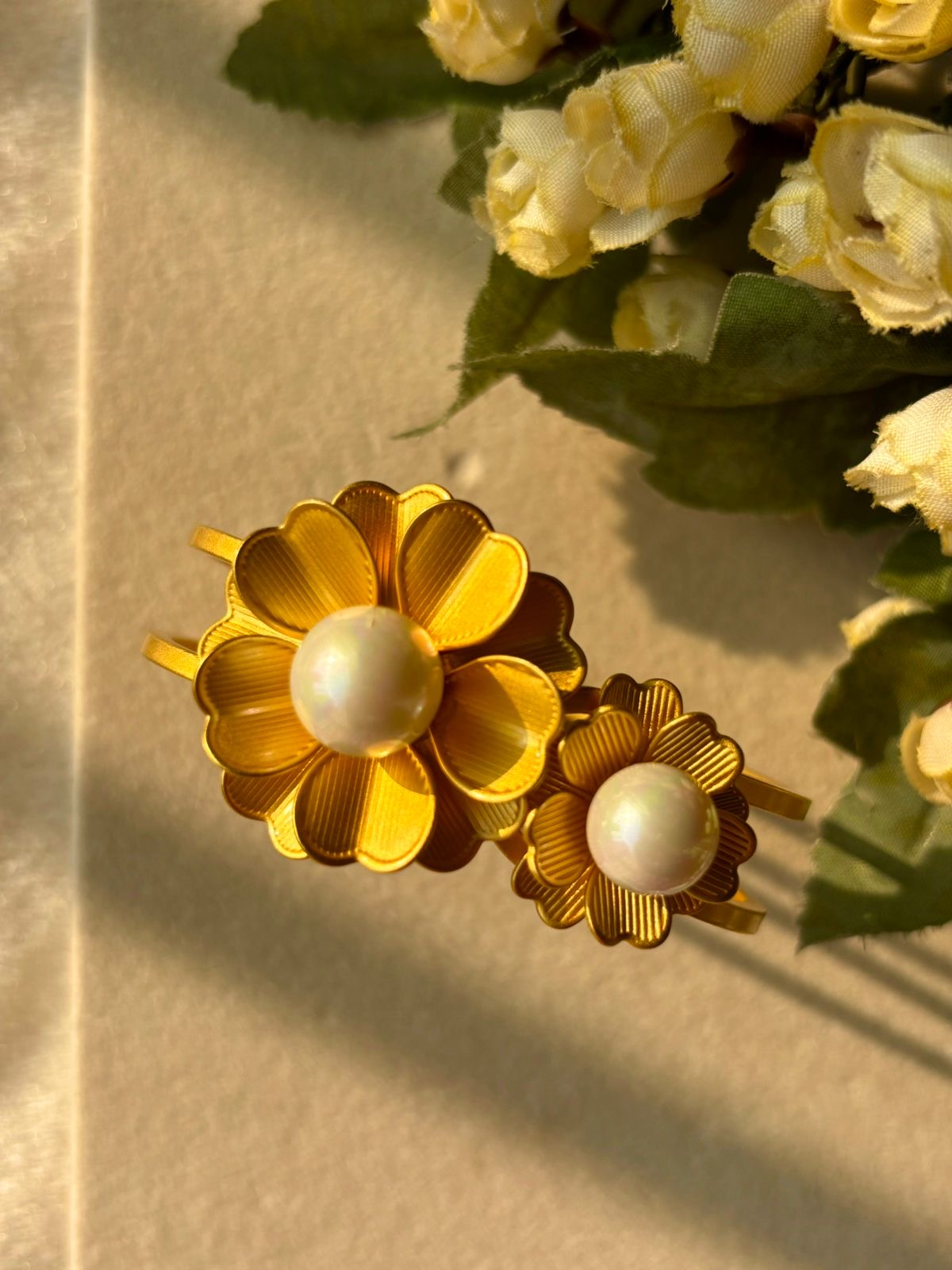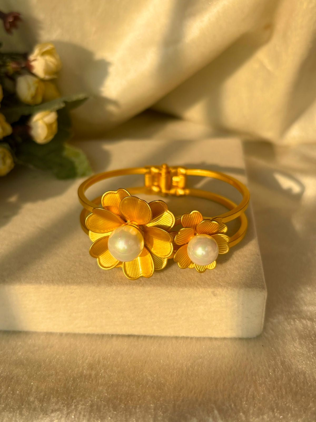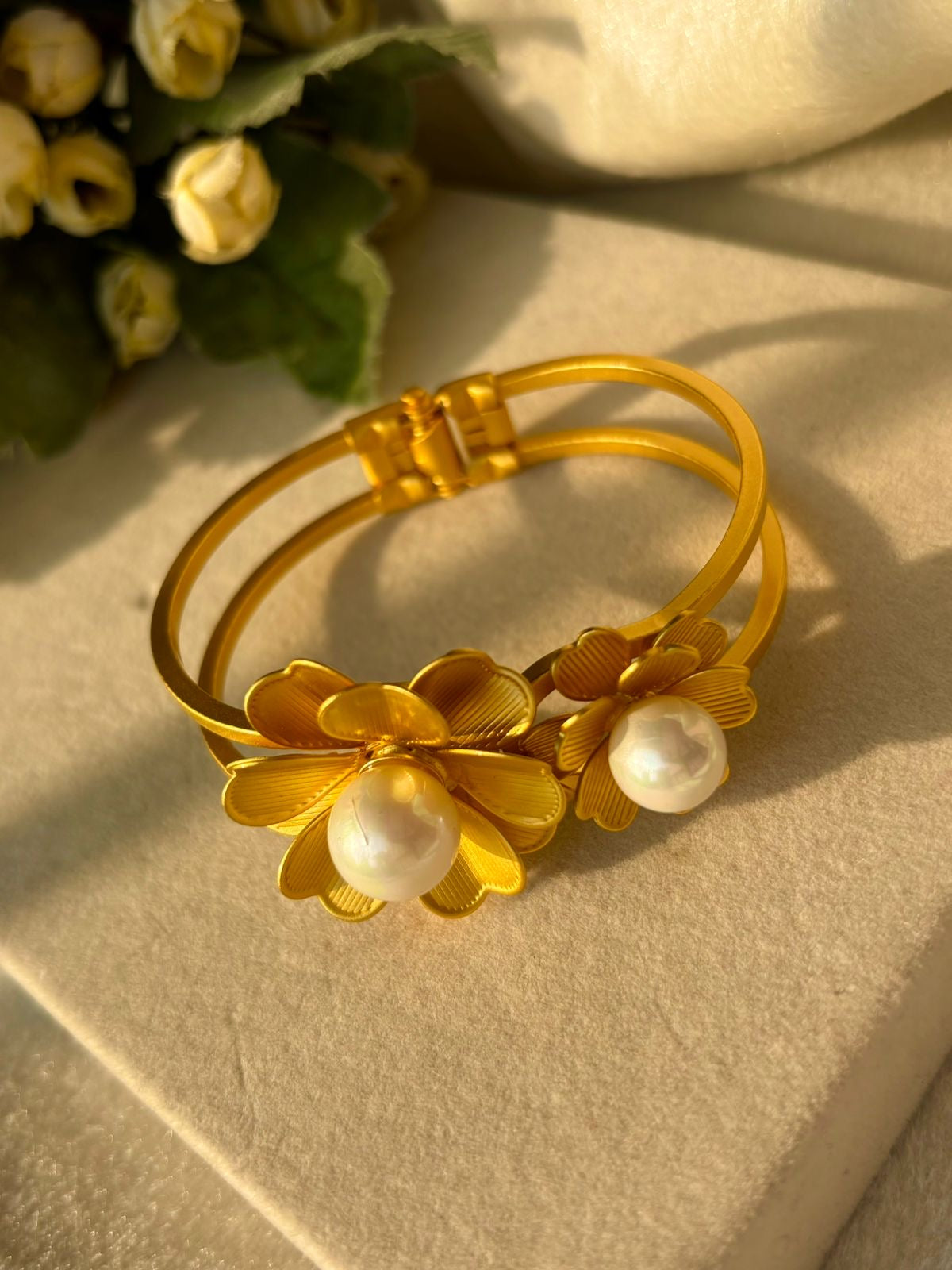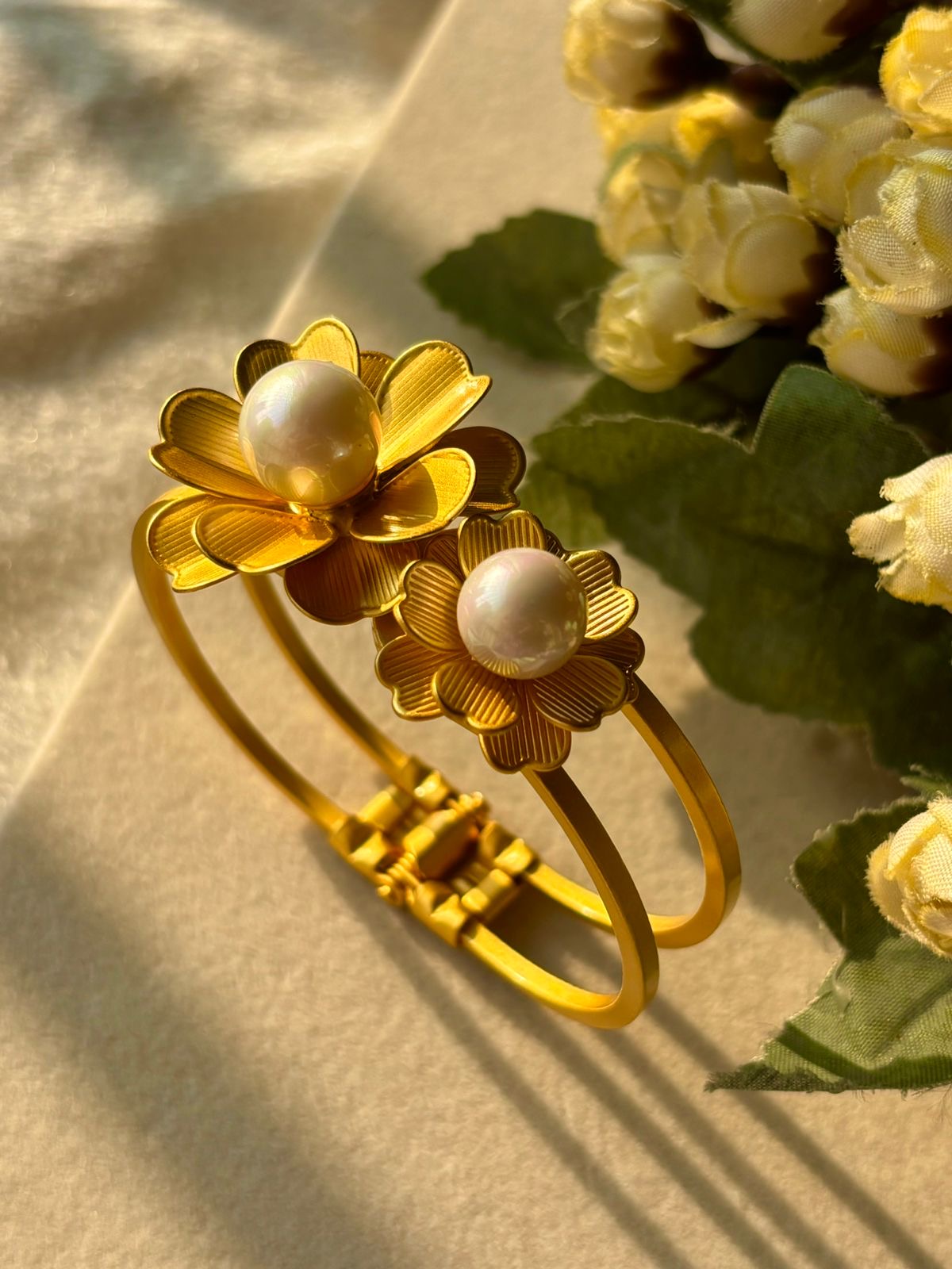Ariana Real Bloomy Pearls Kada Bracelet Bangle - Gold
