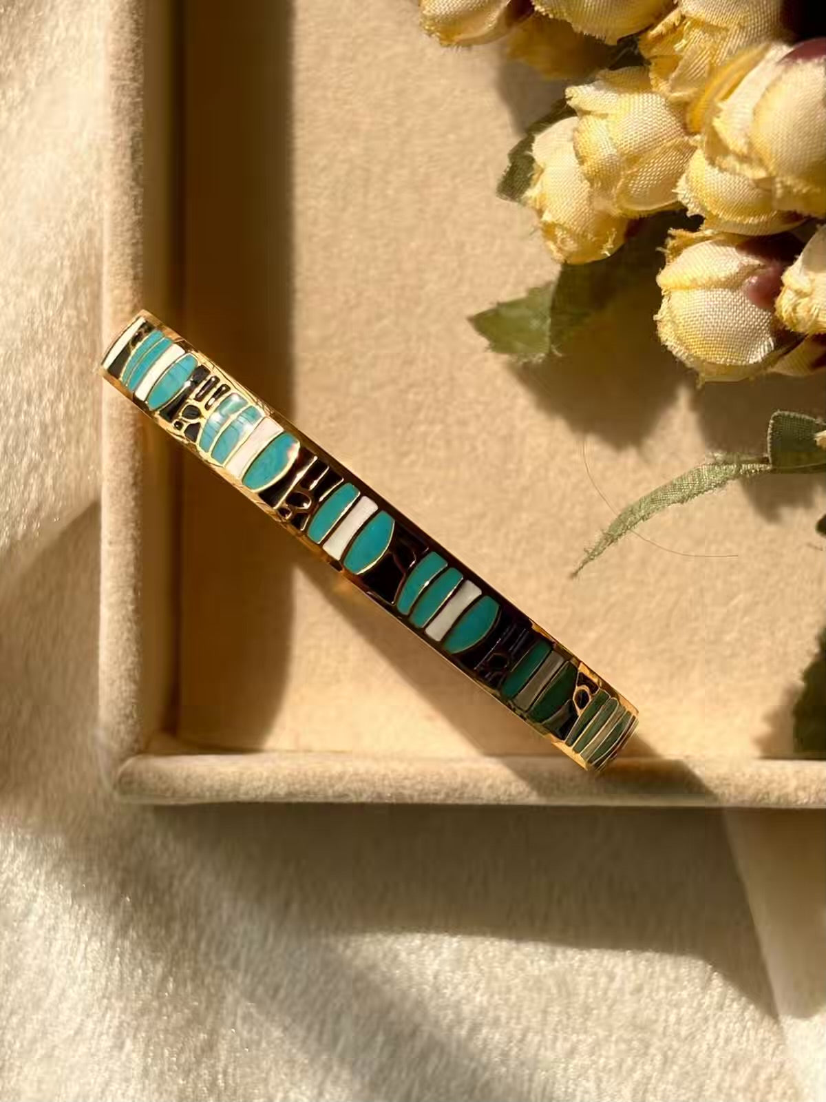Geometric Turquoise Blue Kada Bracelet Bangle - 22k Gold Plated