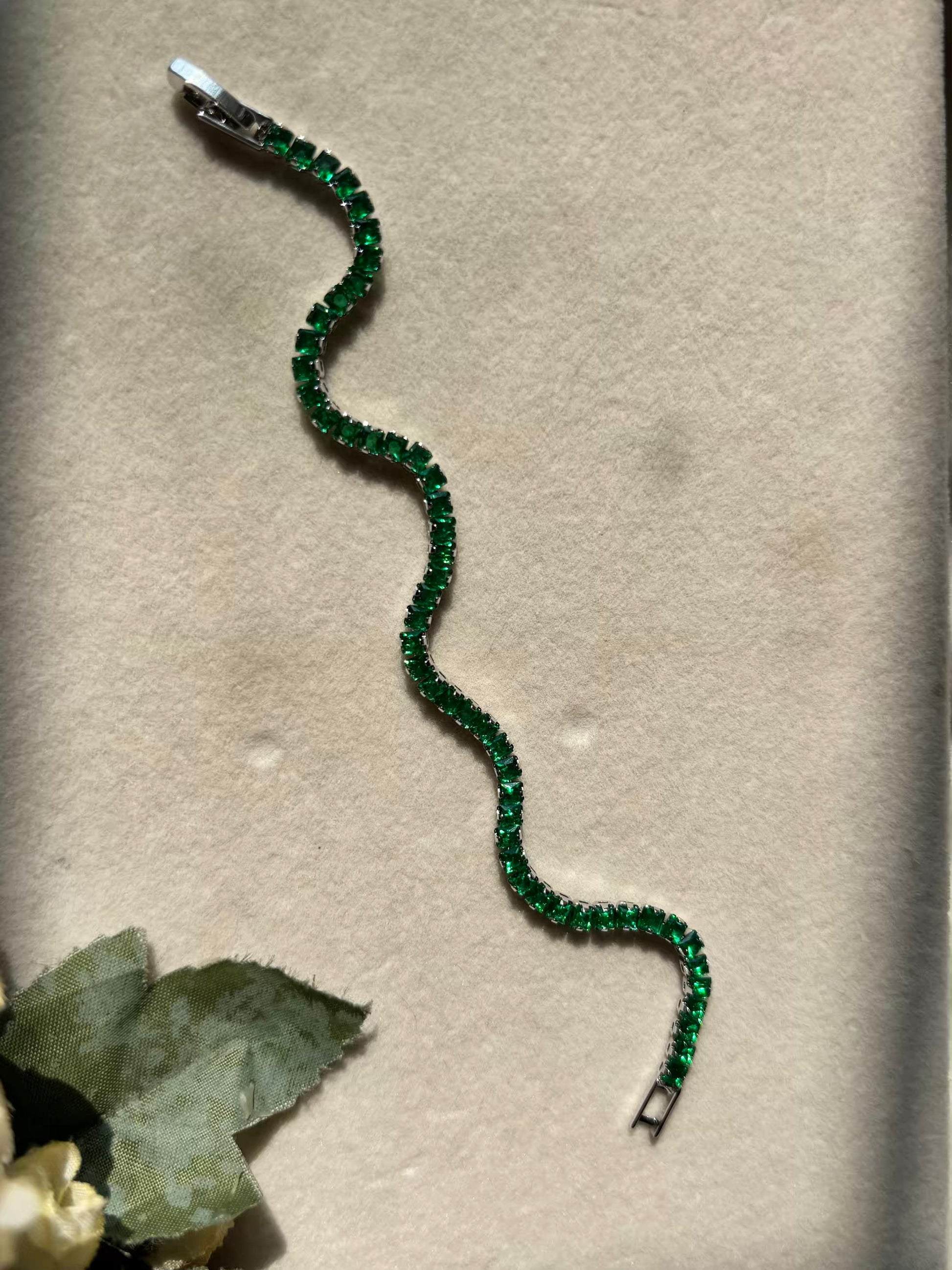 Medium Size Sparkle Green Premium Silver Plated Tennis Bracelet