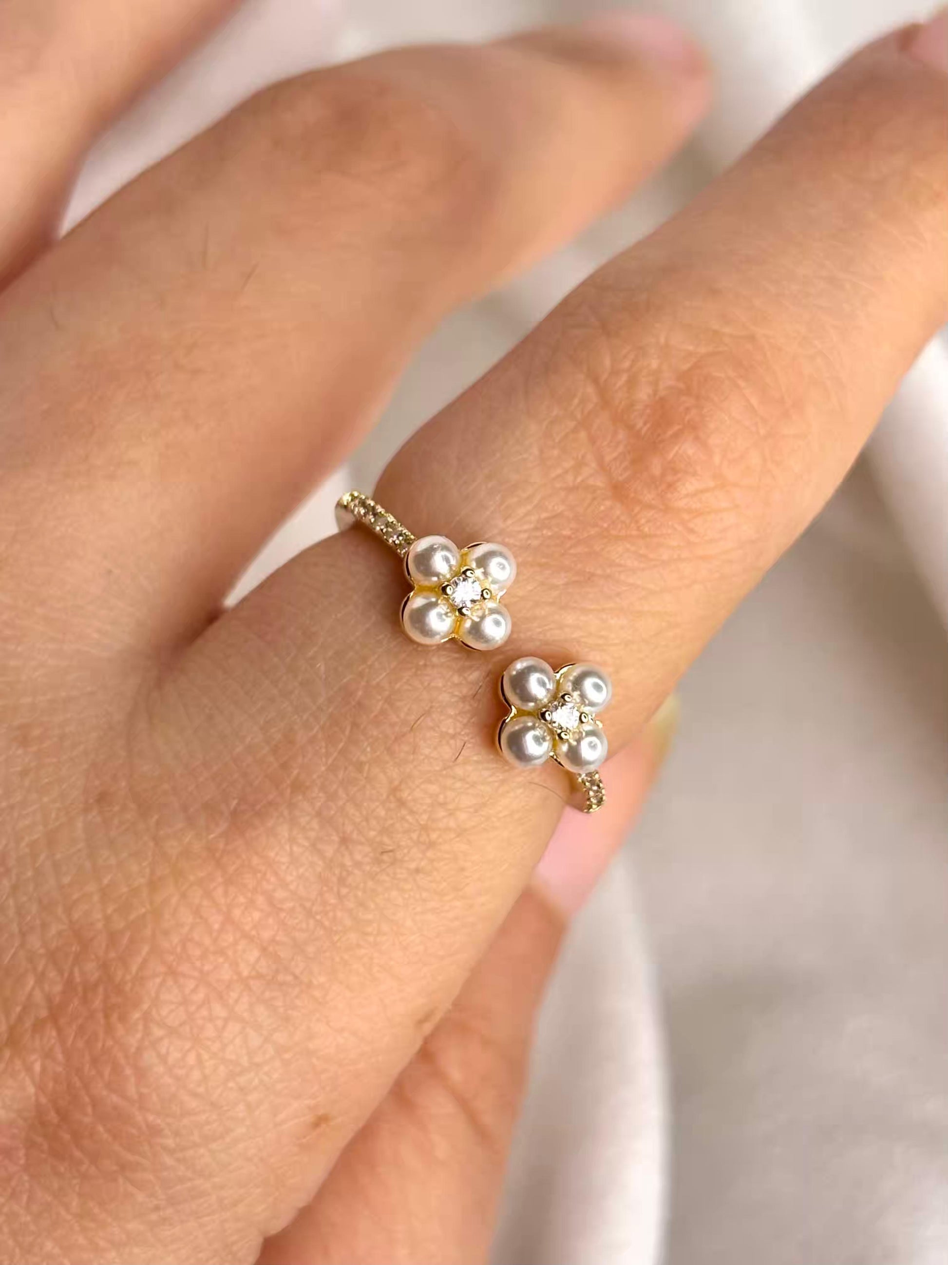 Double Pearl Clover Ring Gold Plated 18K Adjustable Ring
