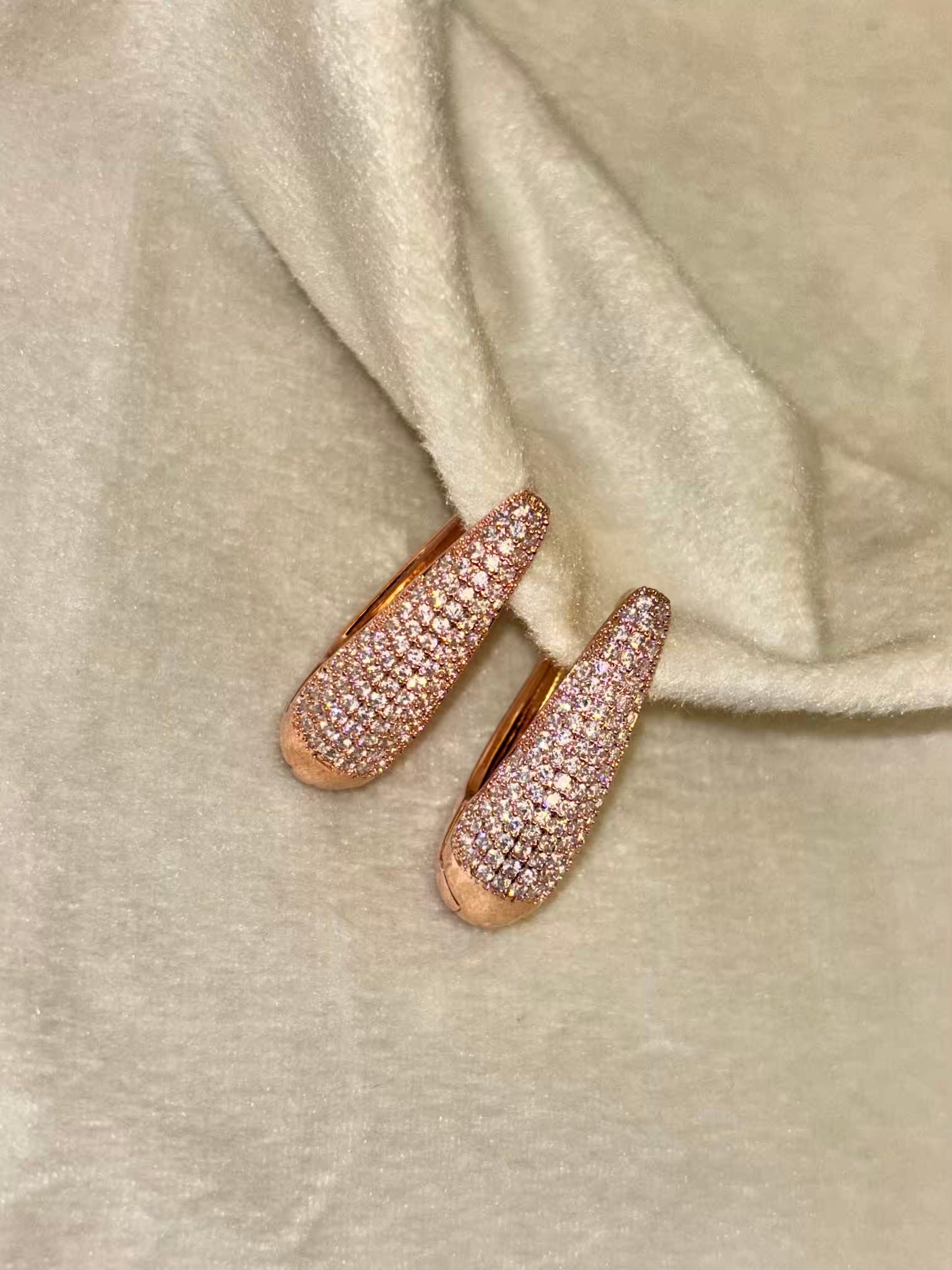 Diamonds Loaded Long Huggies Earrings Studs - Rose Plated