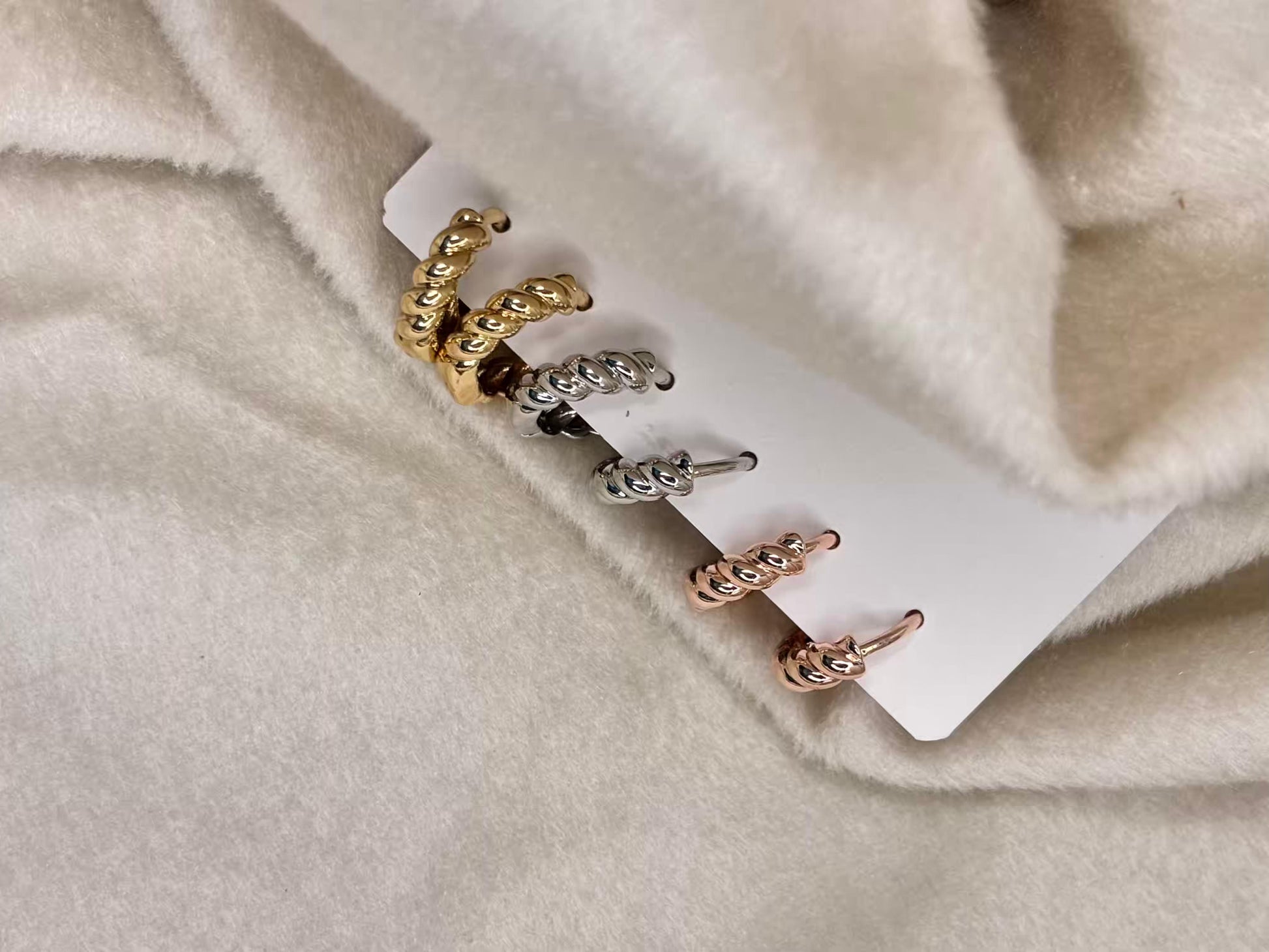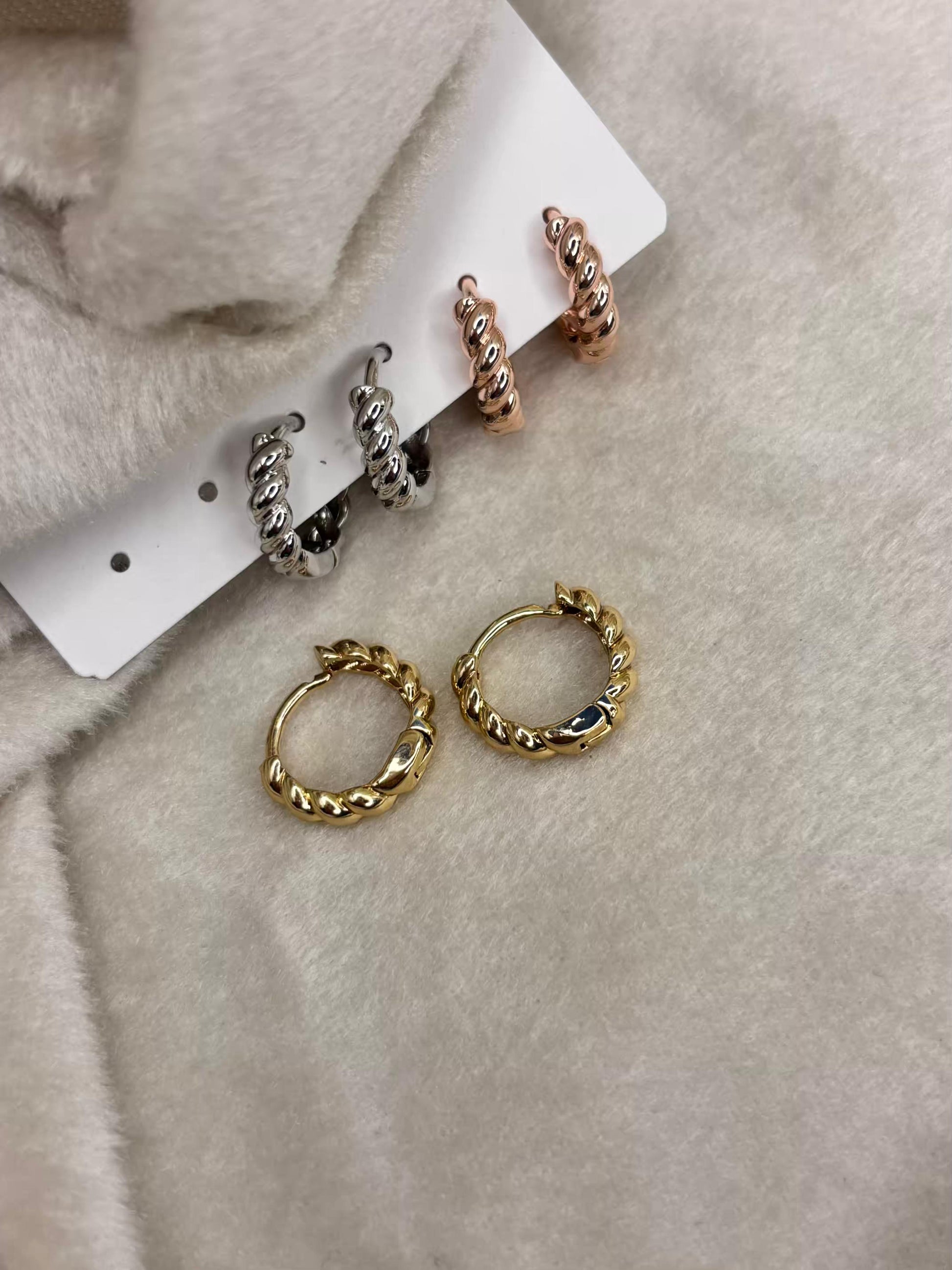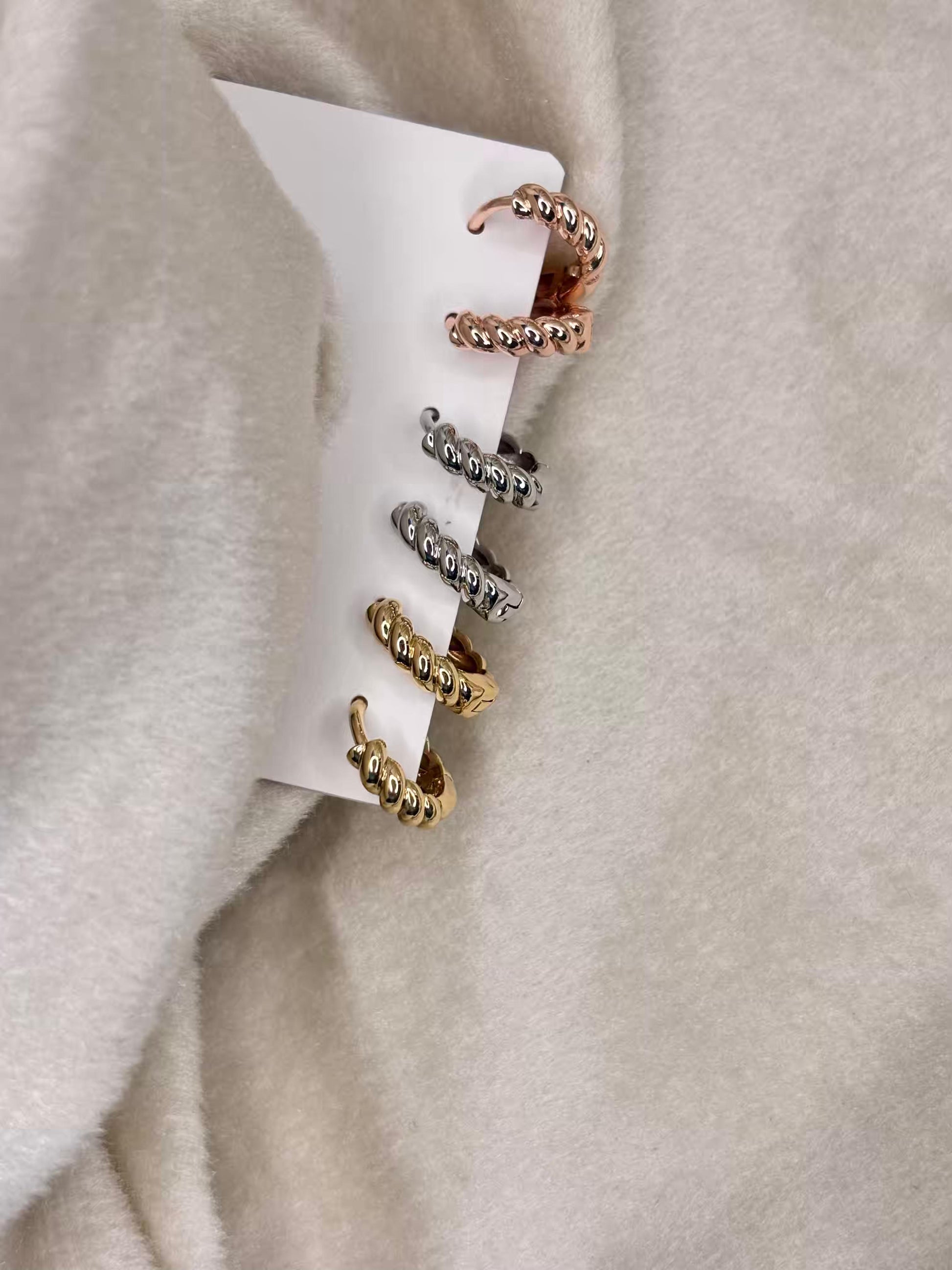 Multi Toned Twisted Small Hoops Set Premium Earrings ( Prepaid Only )