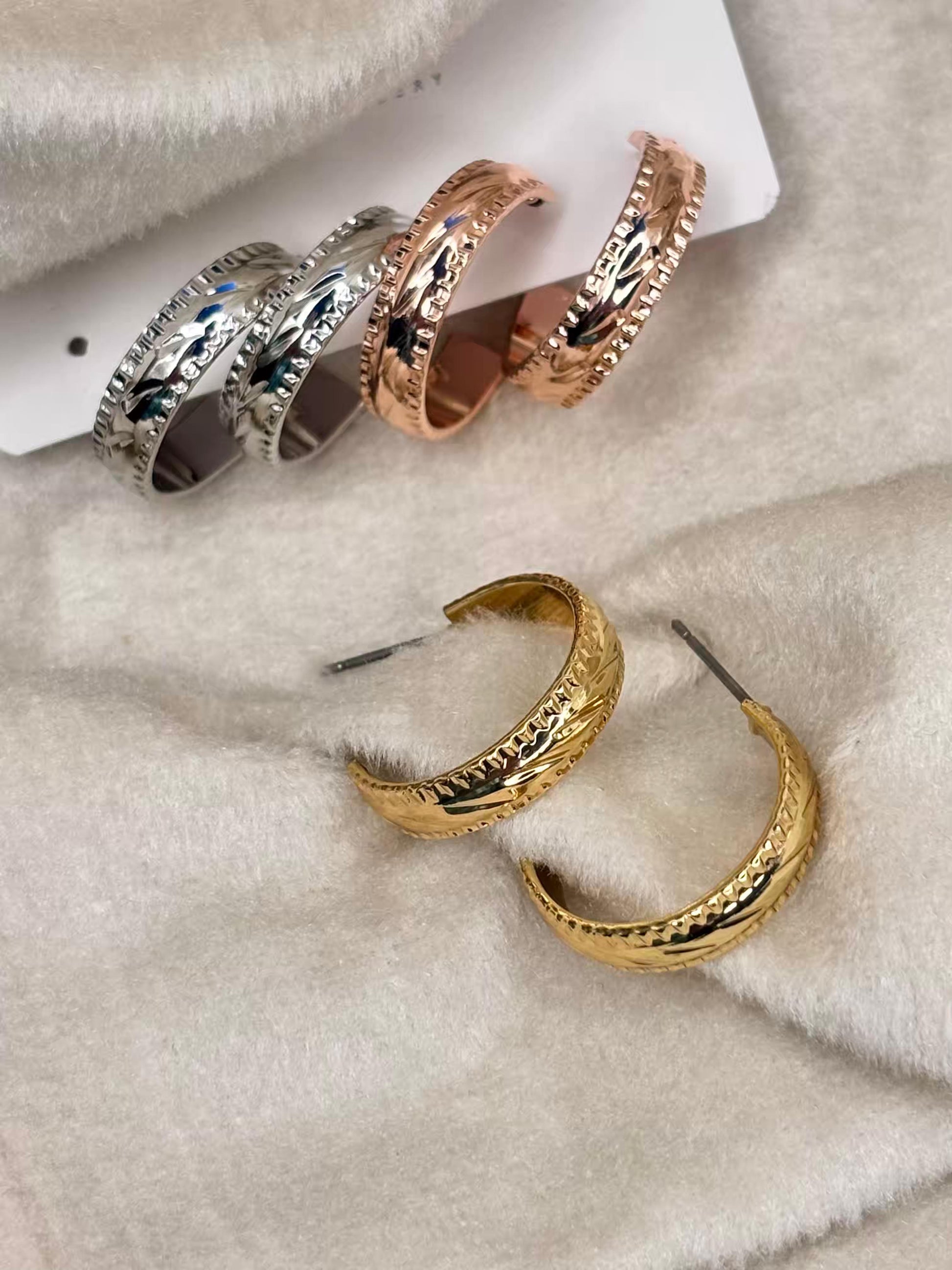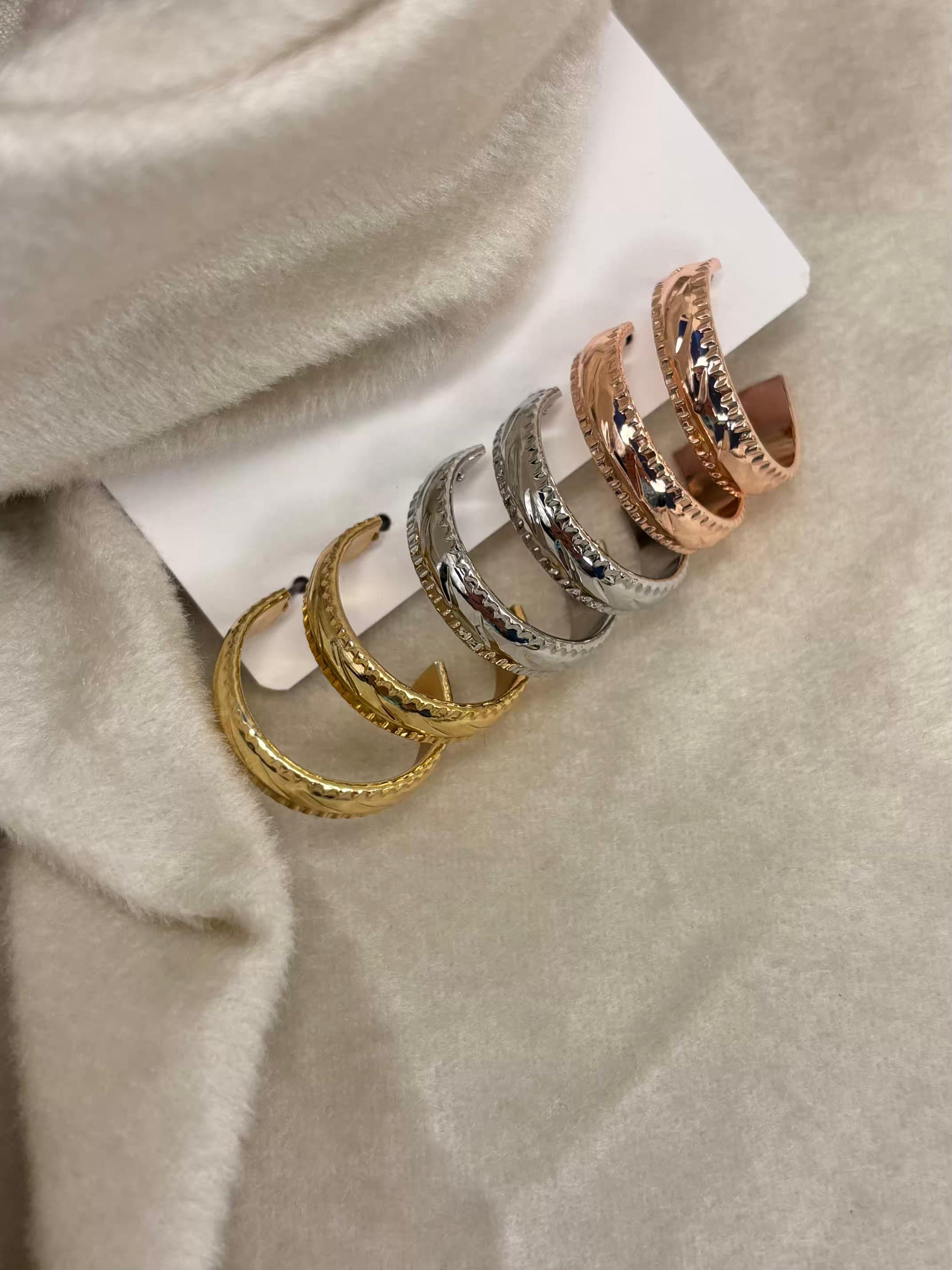Multi Toned Textured Small Hoops Premium Earrings ( Prepaid Only)