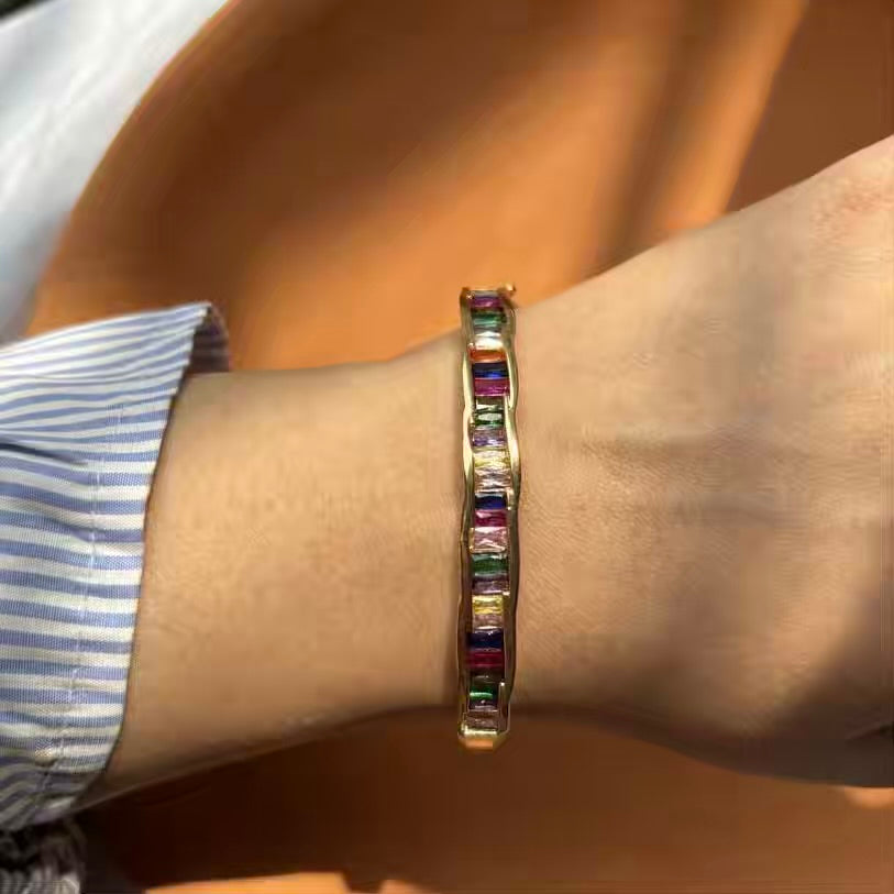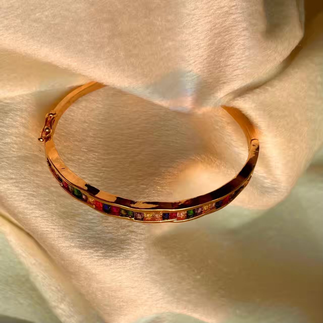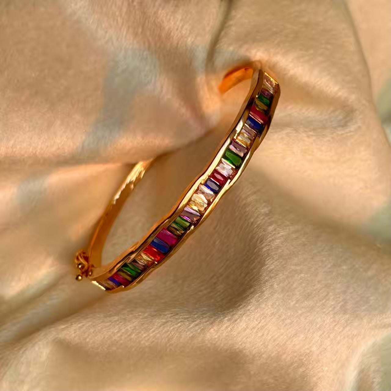 Belle Wavy Multicoloured Baguette Unique Stones Kadha Bracelet Bangle Gold