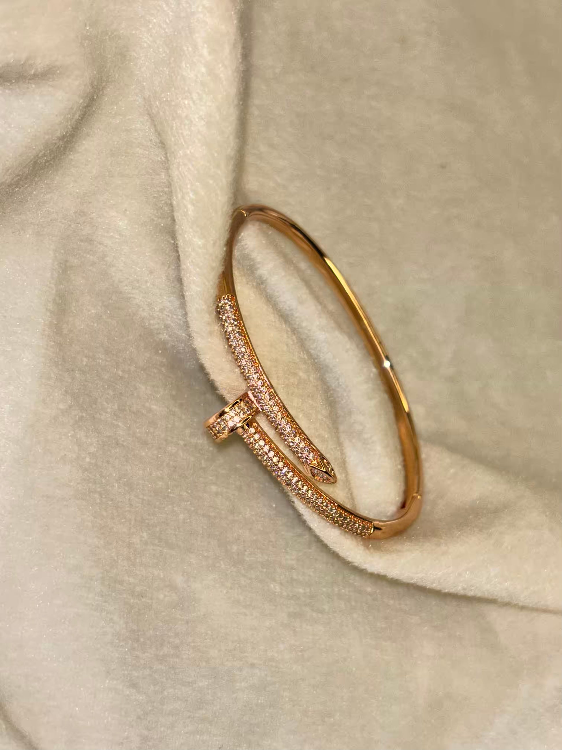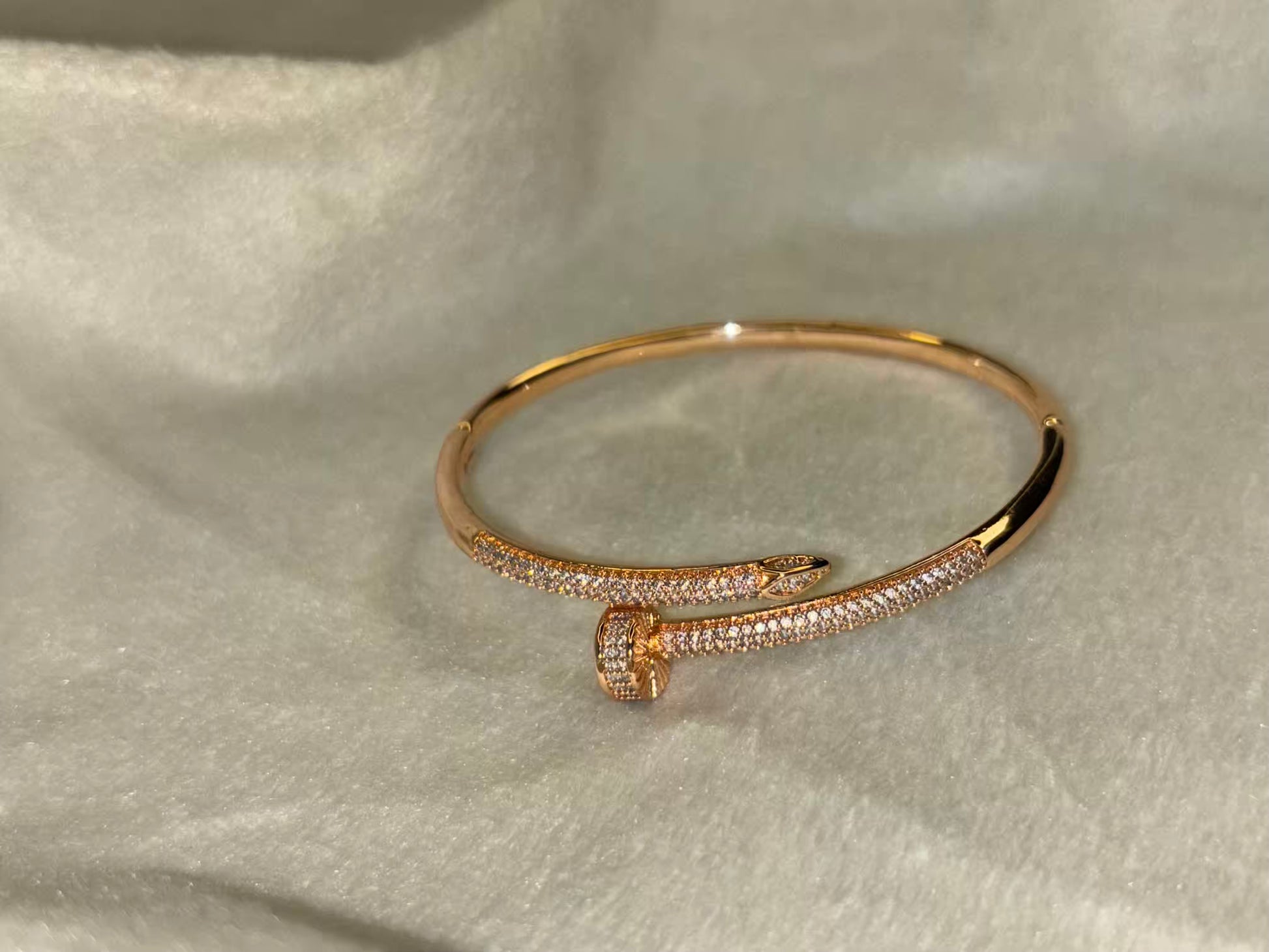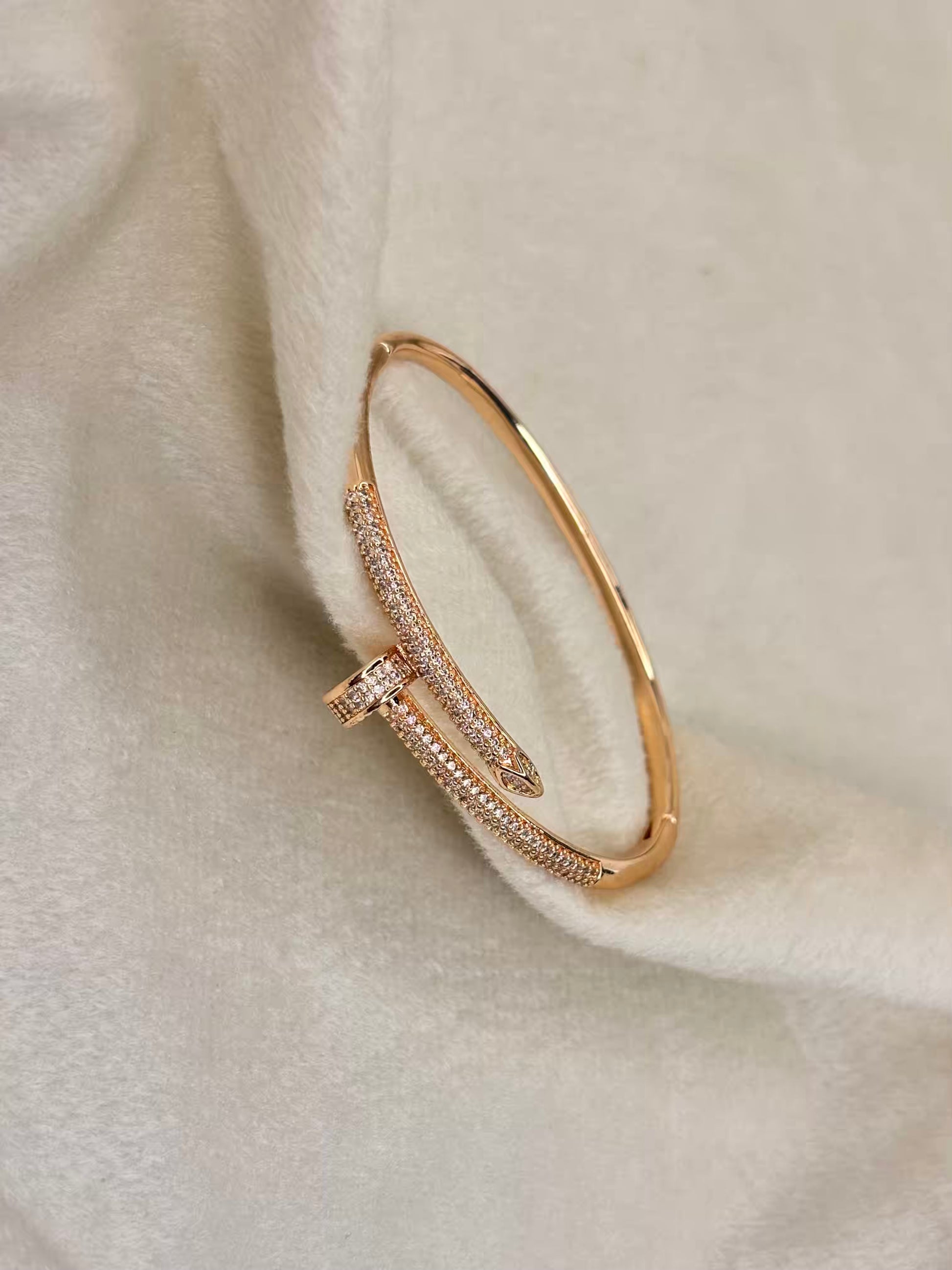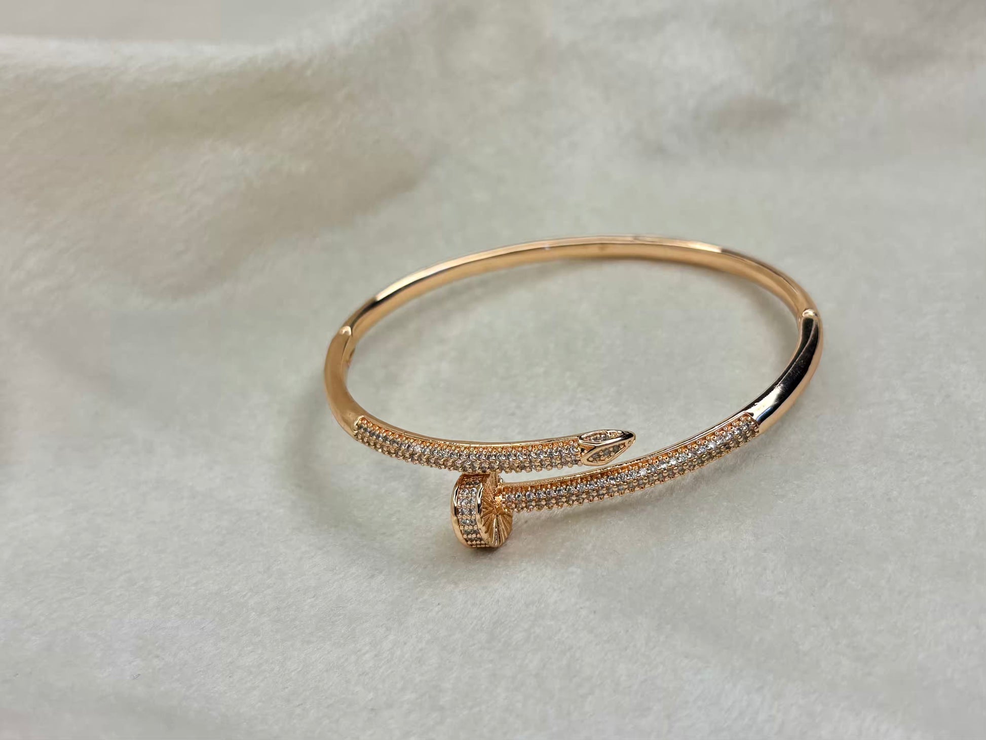 Nail Diamonds Loaded Premium Kada Bracelet Bangle - Rose Gold