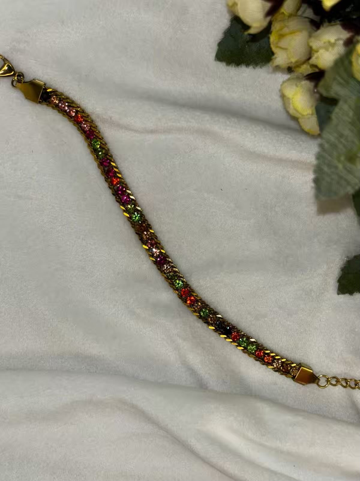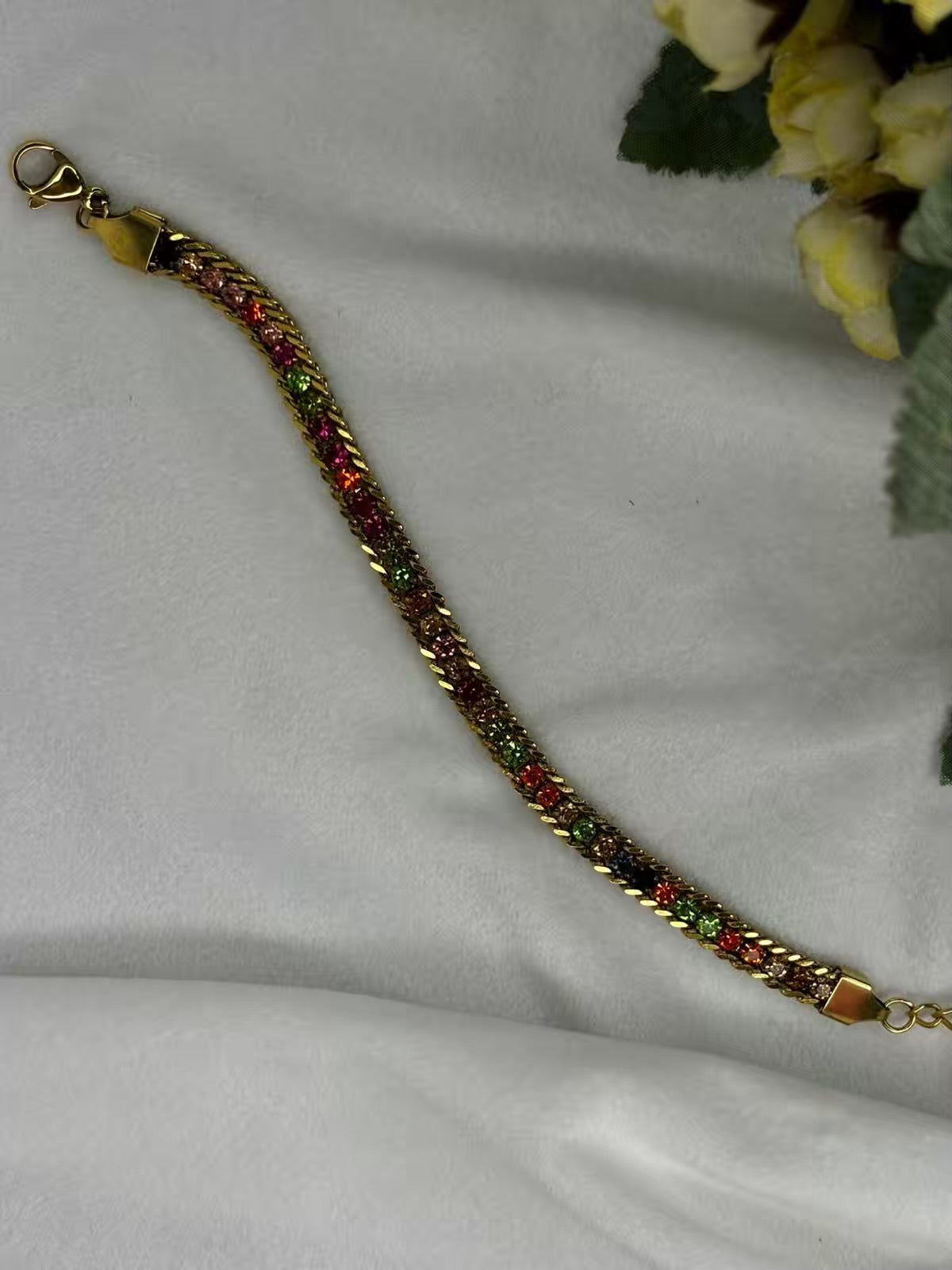 Colourful Stones Studded Golden Bracelet Adjustable (2.8 Size)