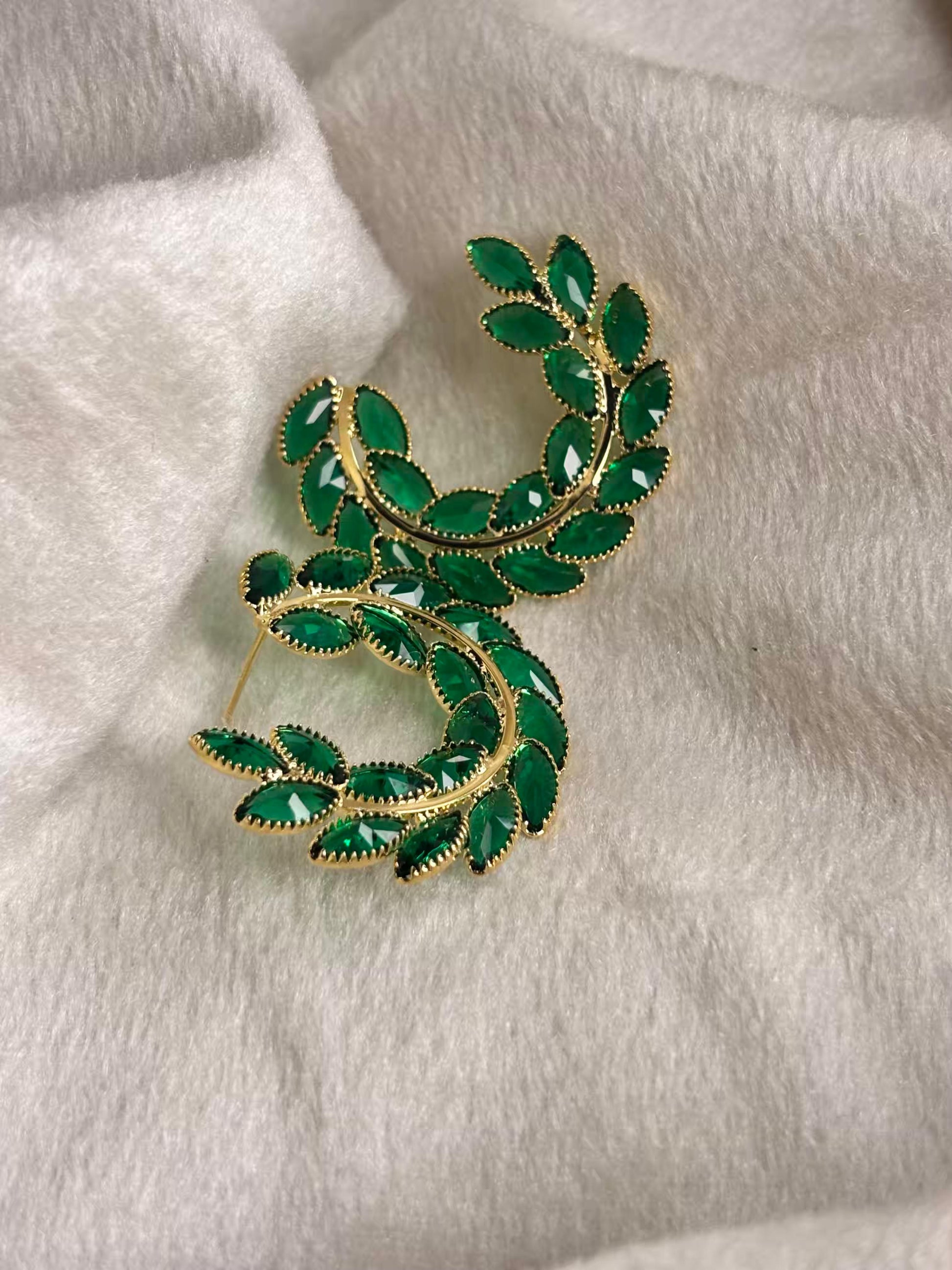 Green Spiral Earrings 18K Gold Plated Earrings Premium Earrings