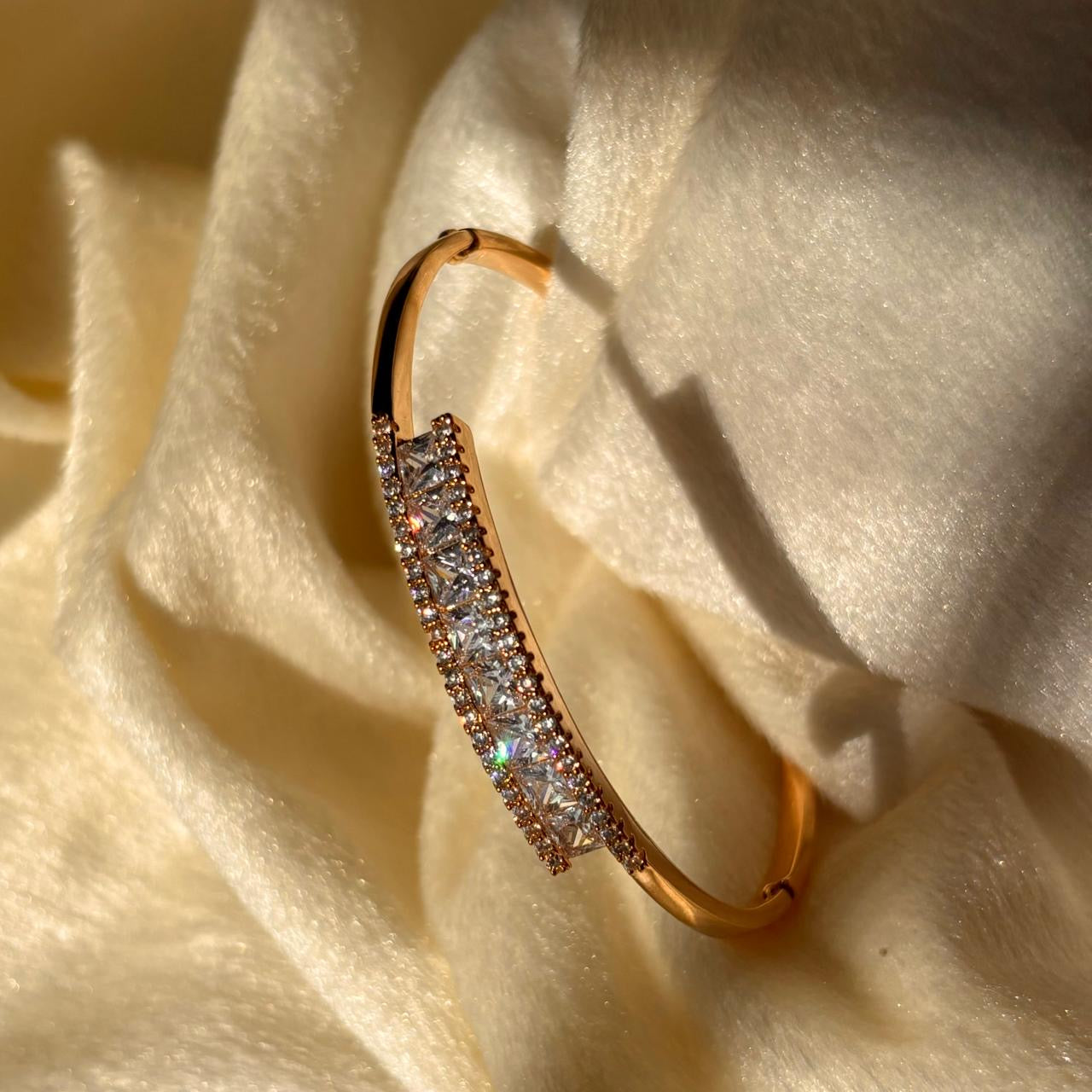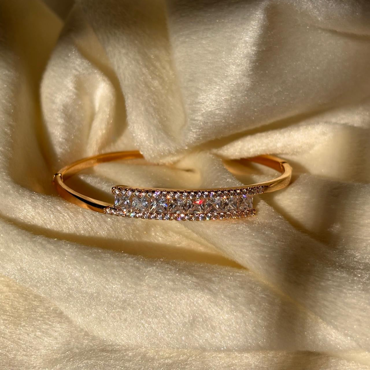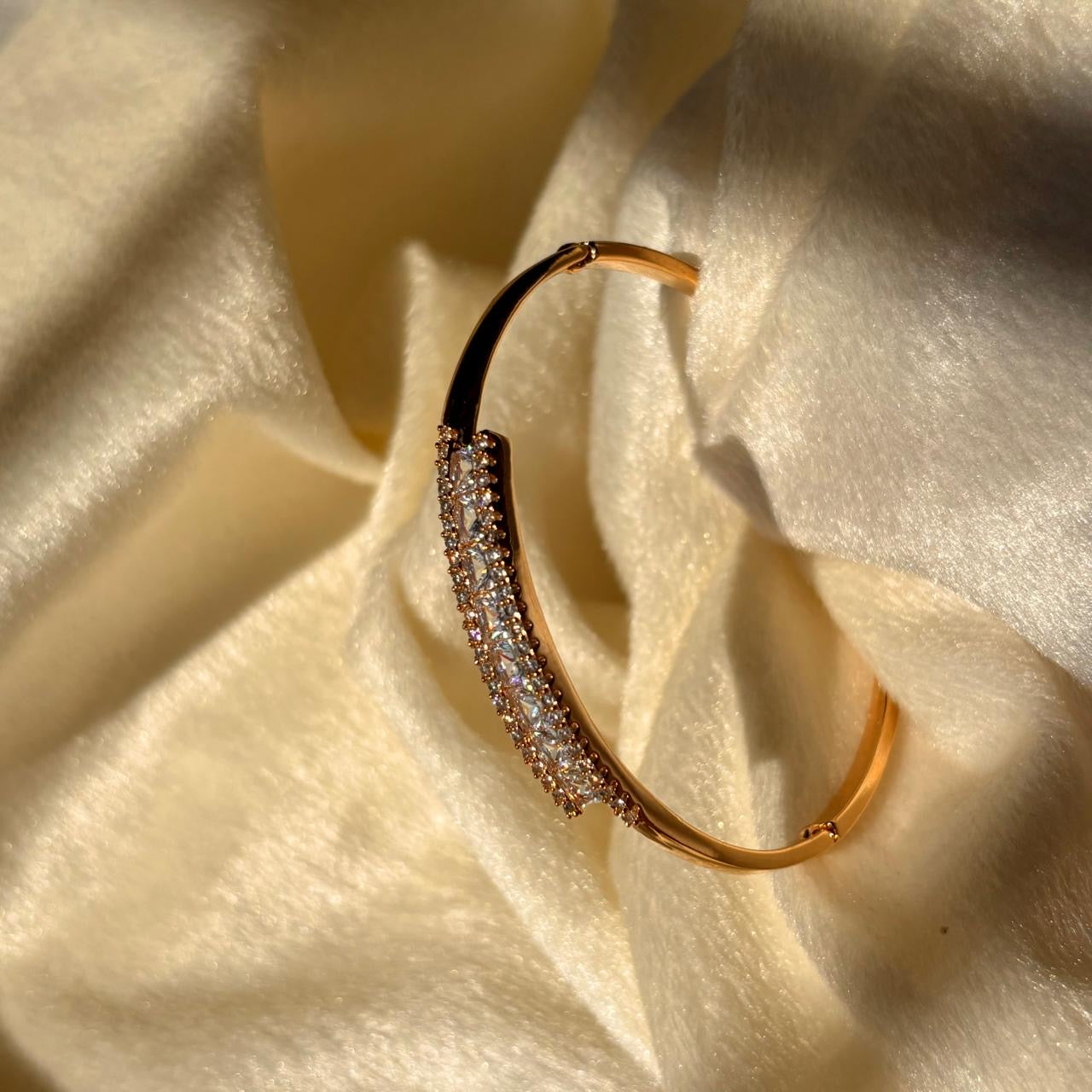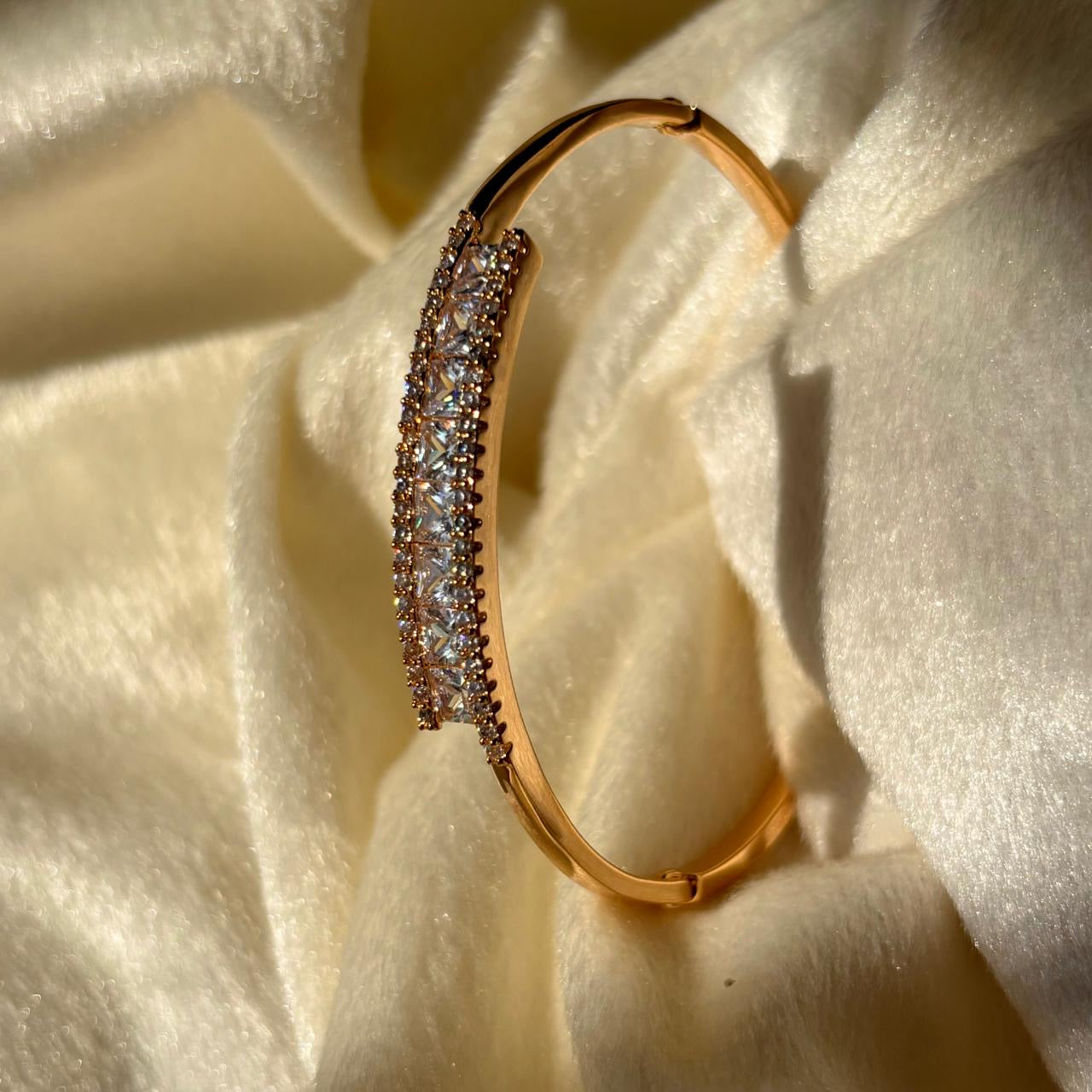 Premium Solitaire Diamonds Kada Bracelet 18k Gold Plated Bangle