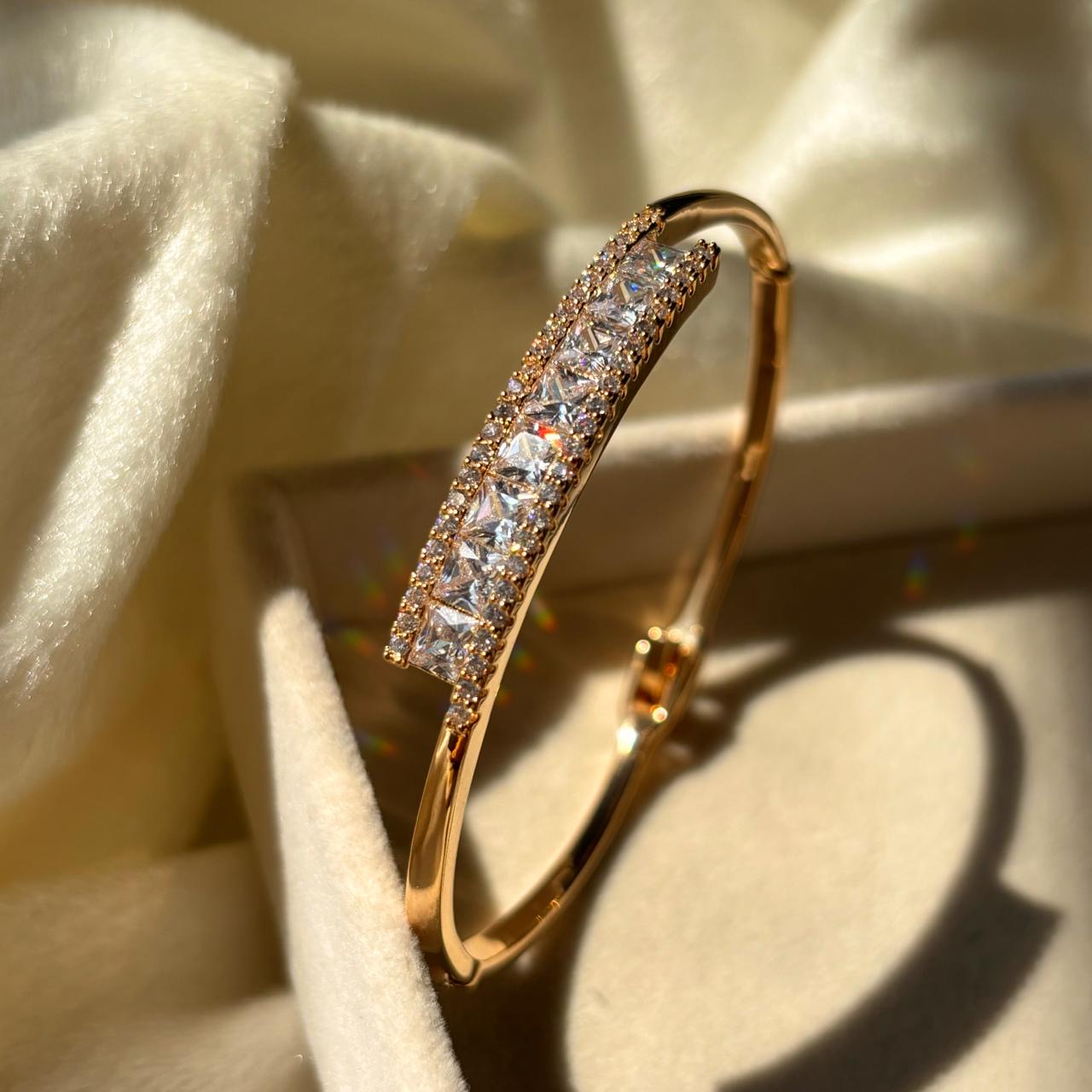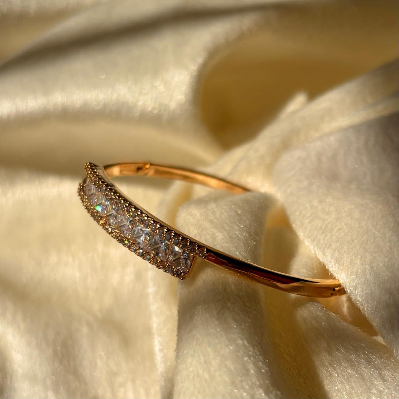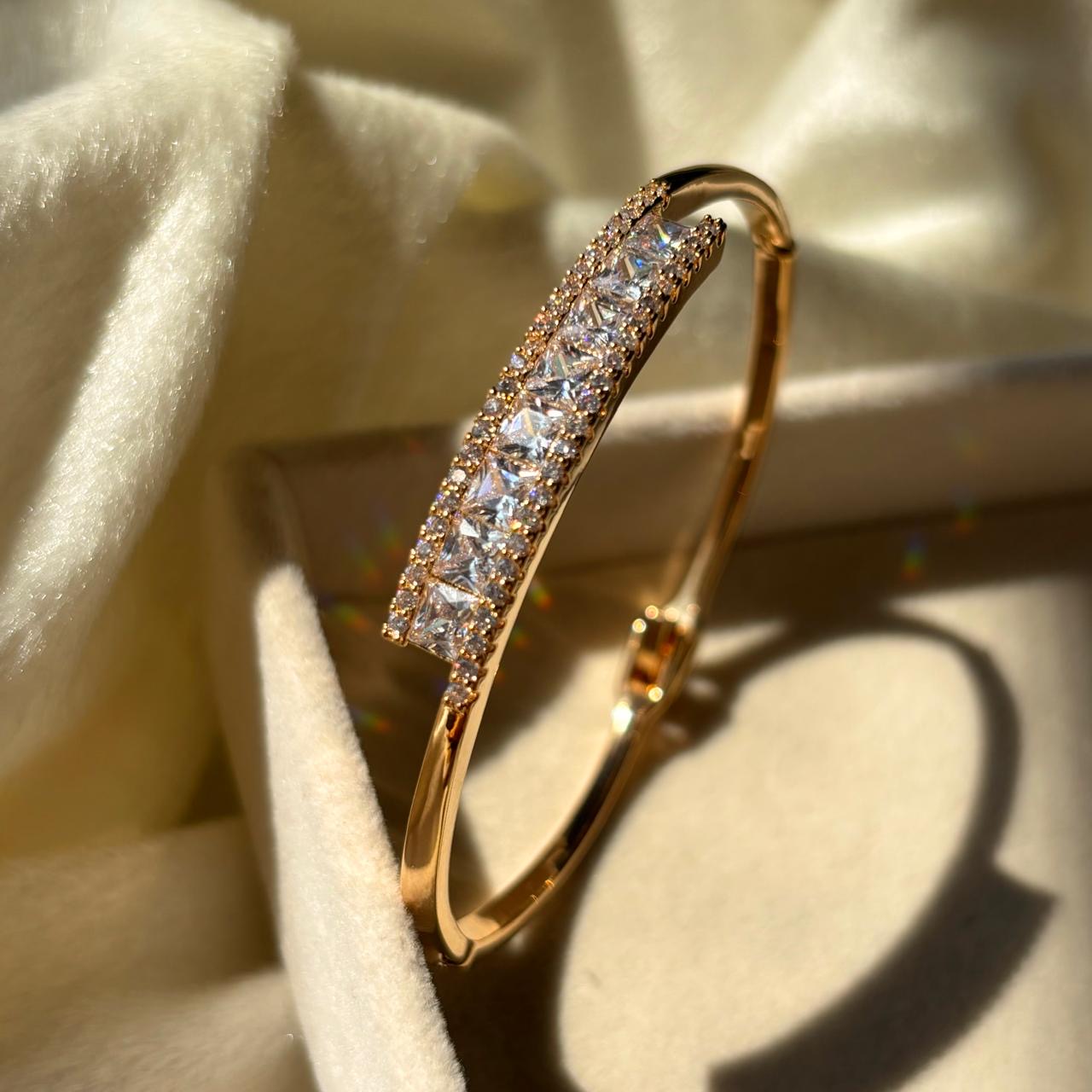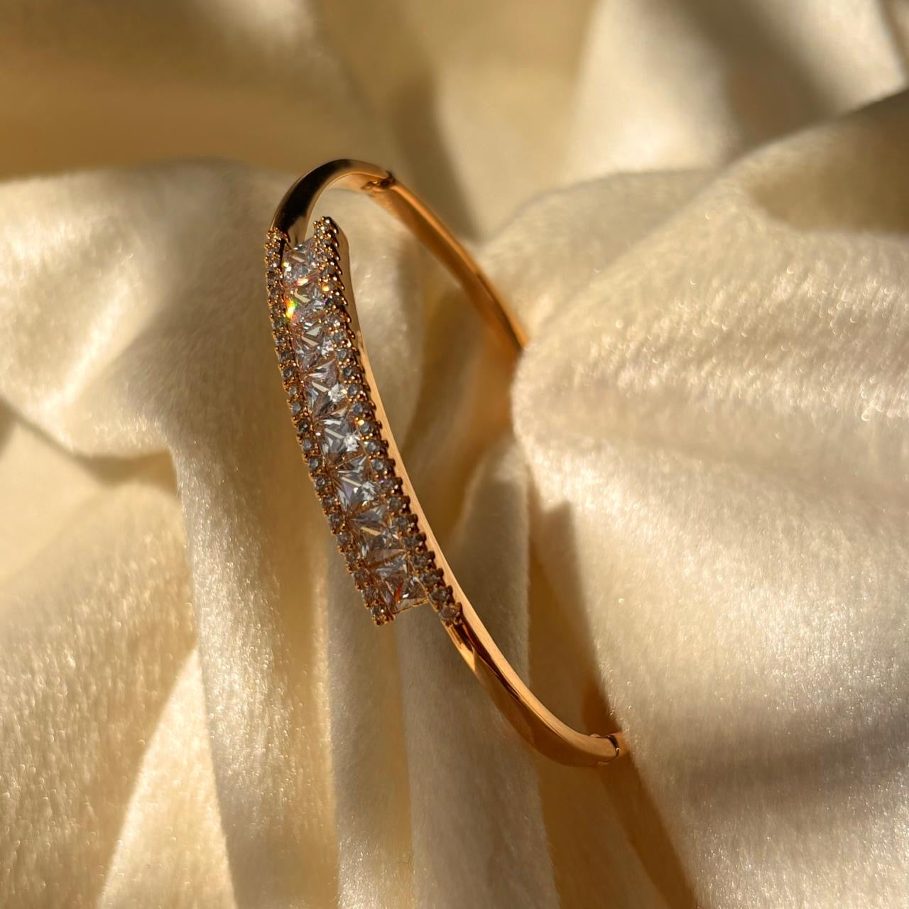 Premium Solitaire Diamonds Kada Bracelet 18k Gold Plated Bangle