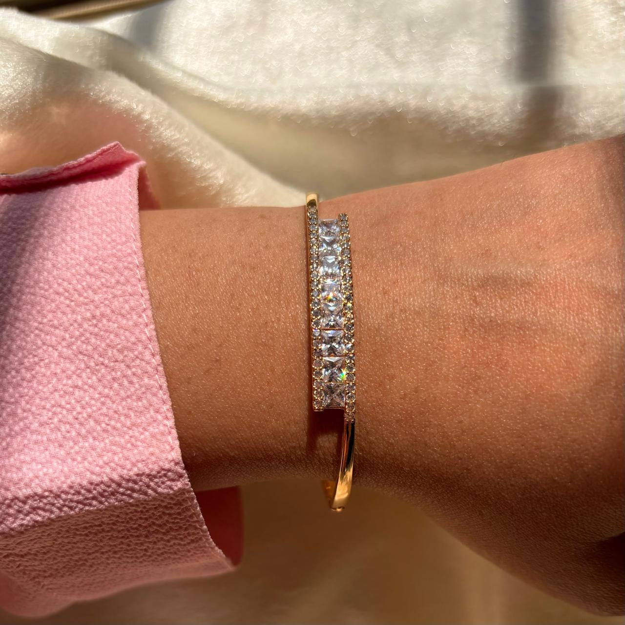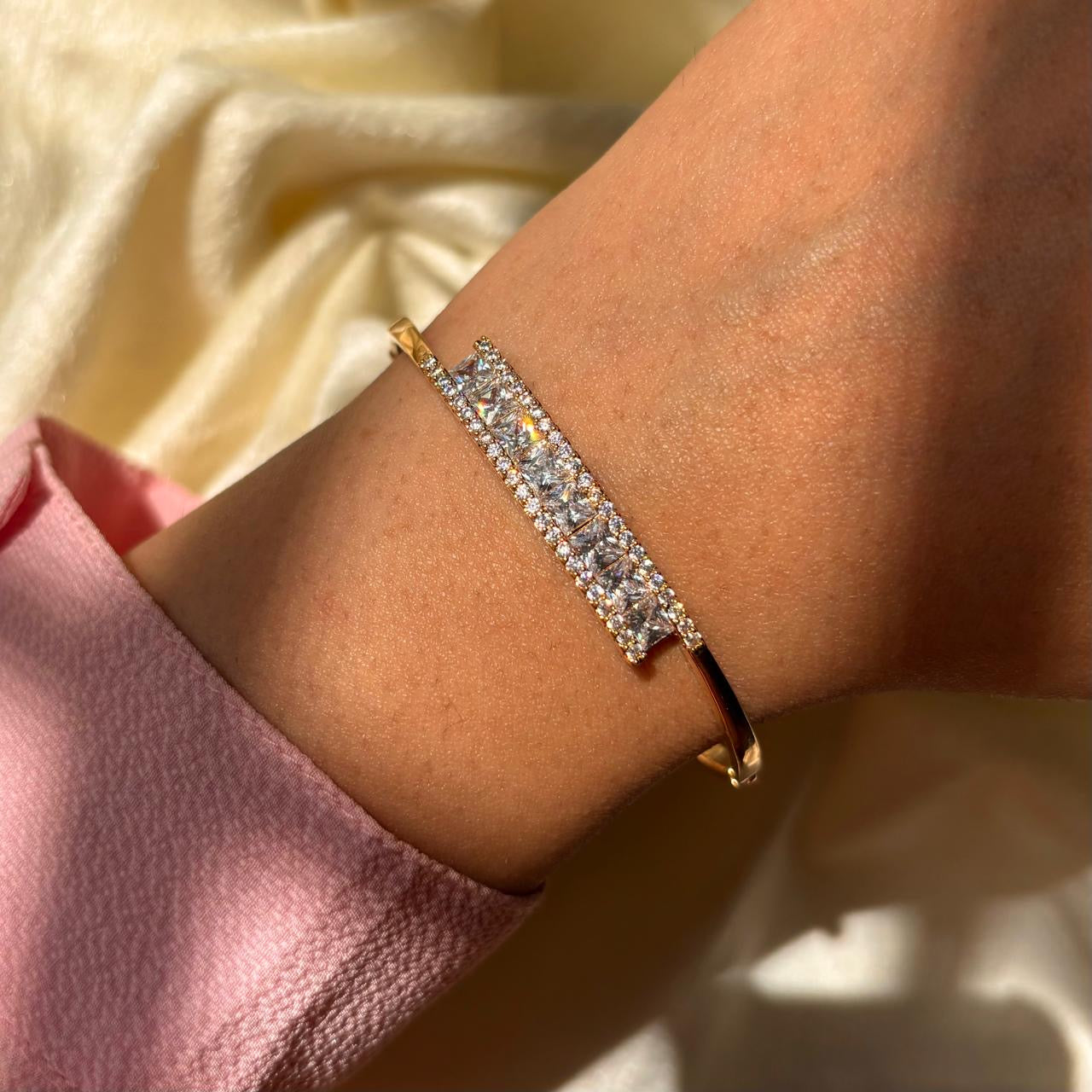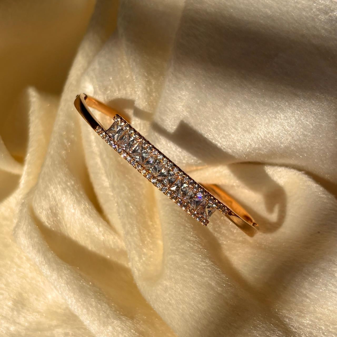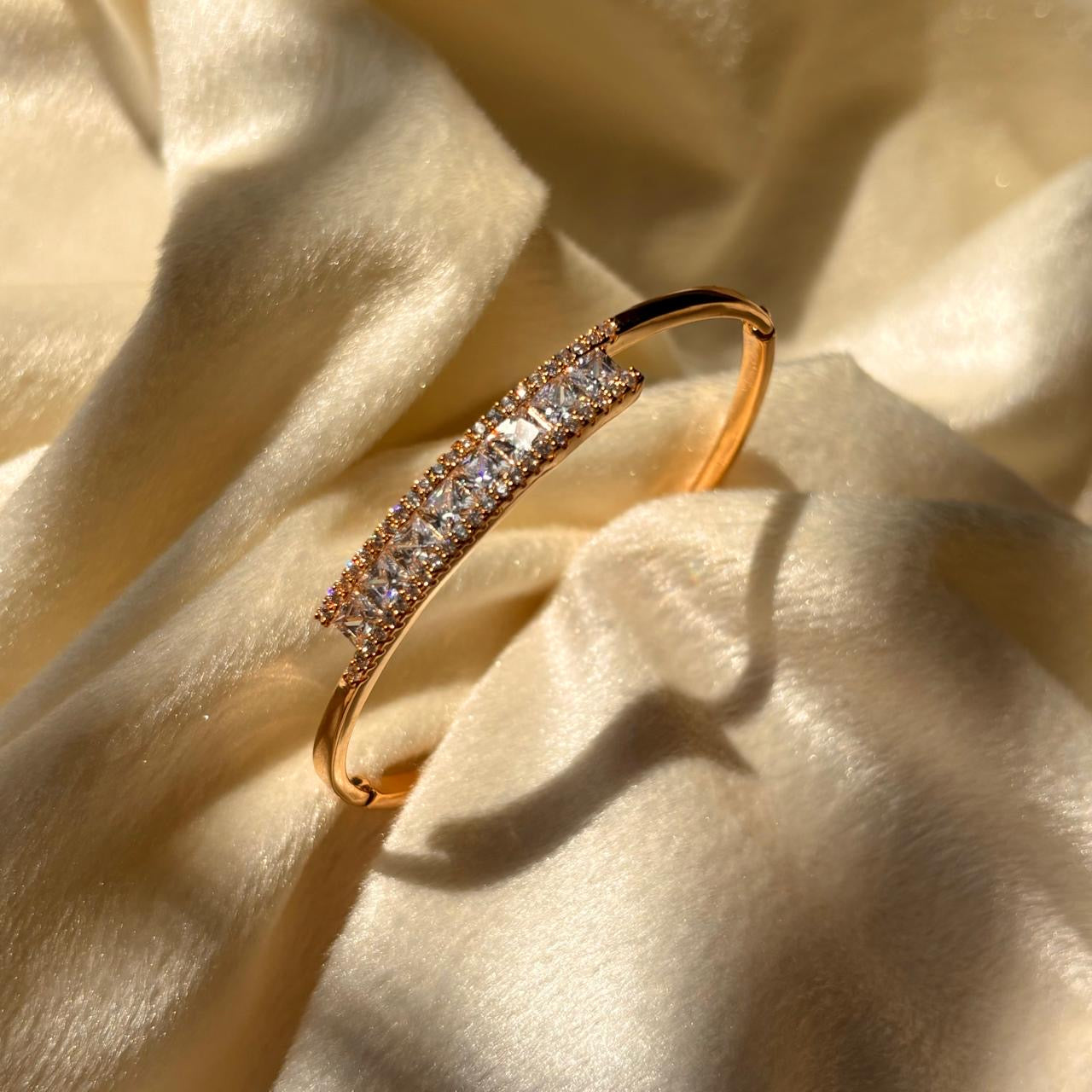 Premium Solitaire Diamonds Kada Bracelet 18k Gold Plated Bangle