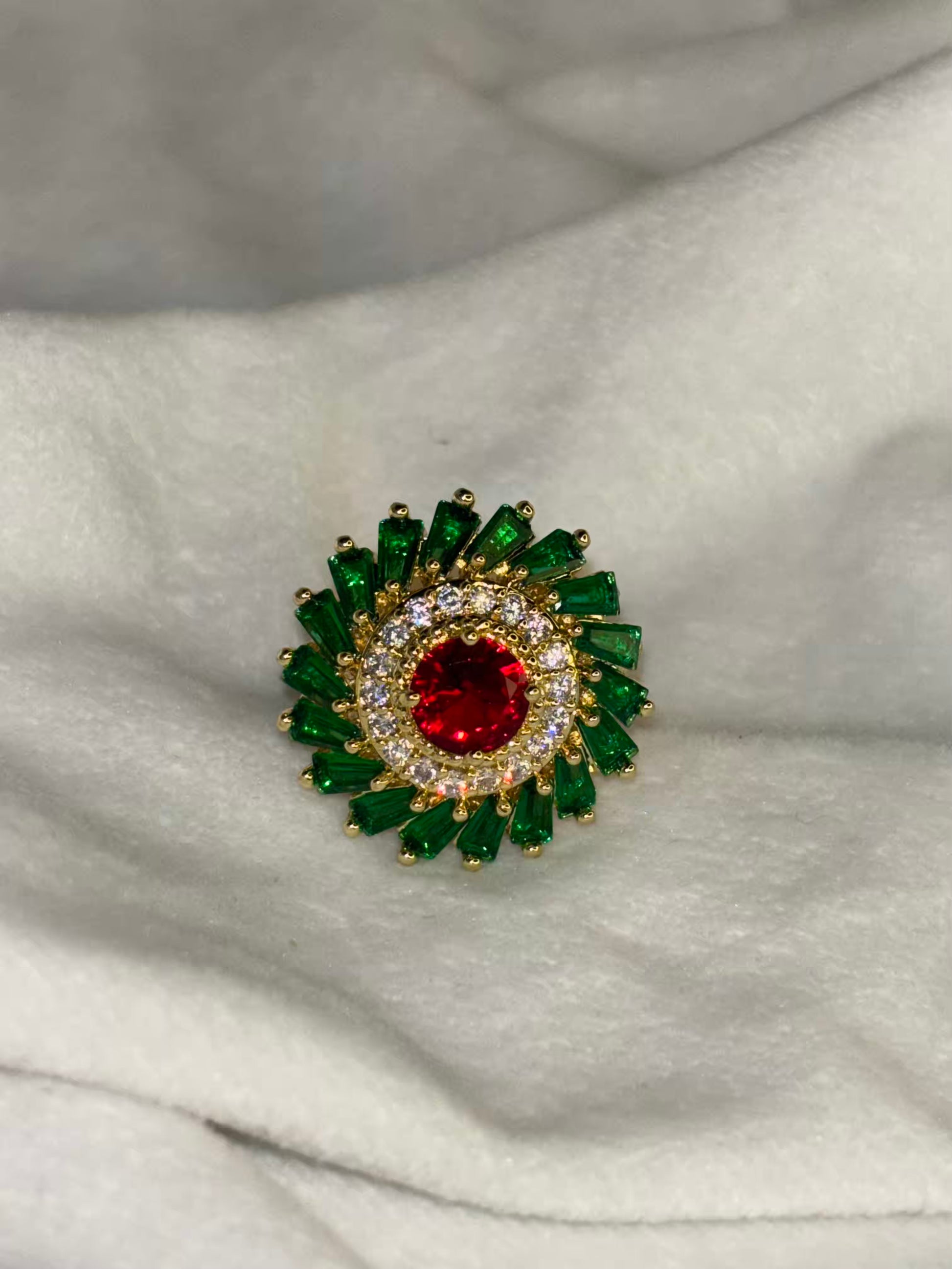 Taaj- E - Husn Garnet Green Solitaire Gold Ring