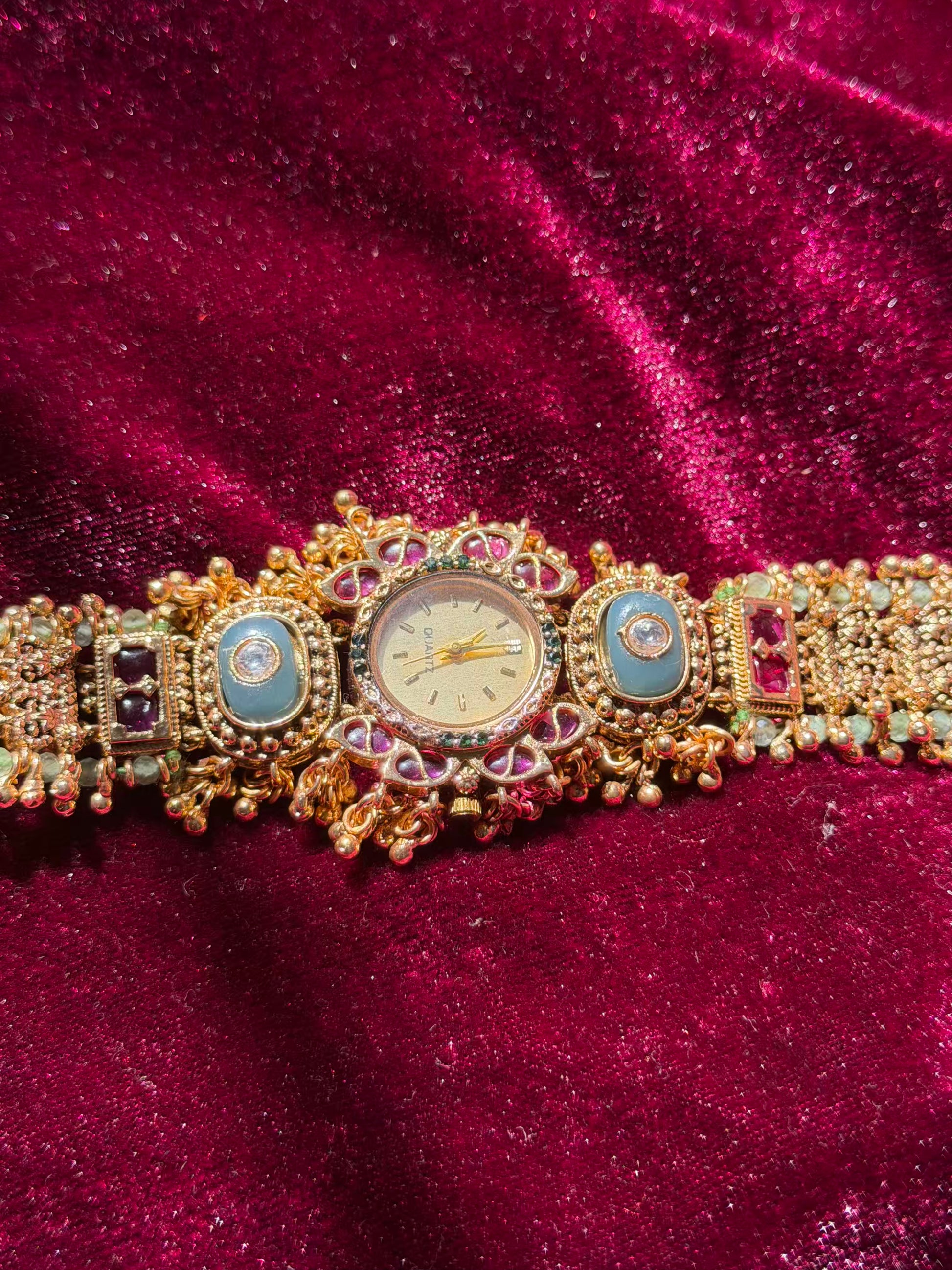 Queen Temple Motif Ruby Kundan Gold Plated Heritage Maharani Watch ( Partial COD 200₹ )