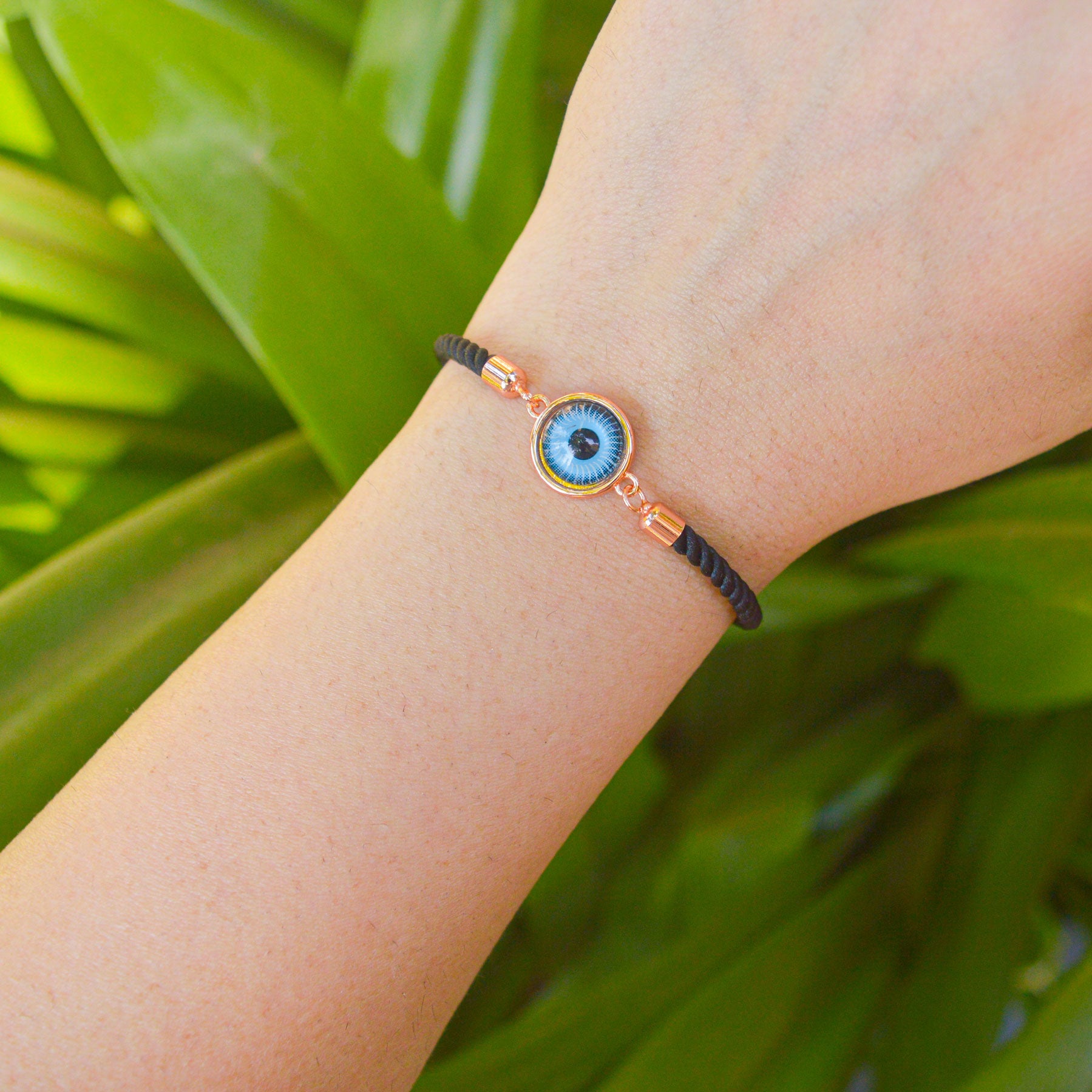 Turquoise Evil Eye Black Band Bracelet (Rose Gold)