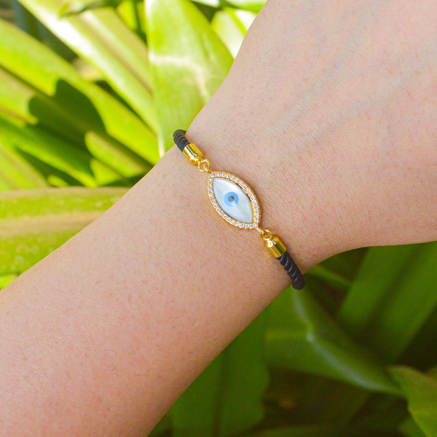 Evil Eye Black Band Bracelet (Gold)
