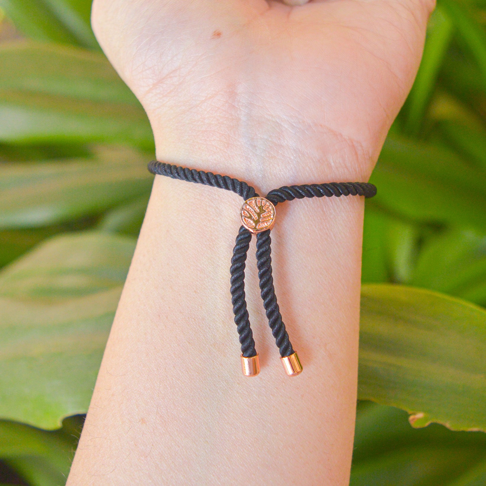 Clover Pearl Studded Evil Eye Black Band Bracelet ( Rose Gold)