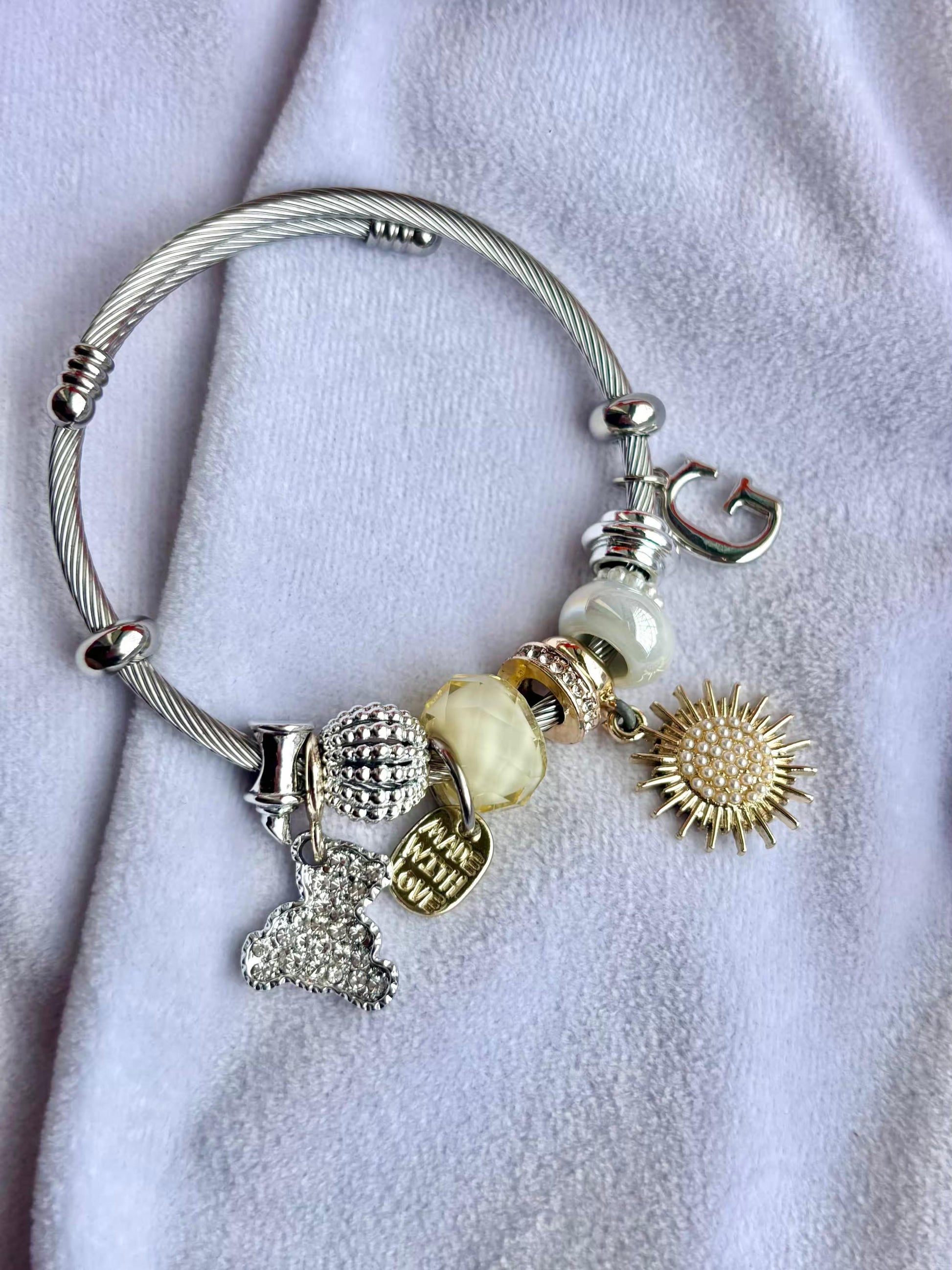 Pandora Charms Sunflower Bracelet With Customised Initial ( Silver )