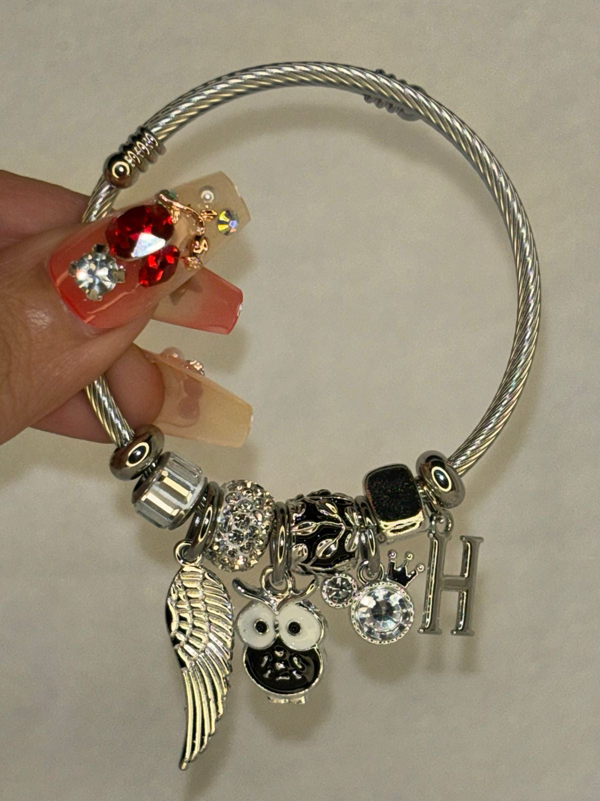 Pandora Charms Black Owl Bracelet With Customised Initial ( Silver )