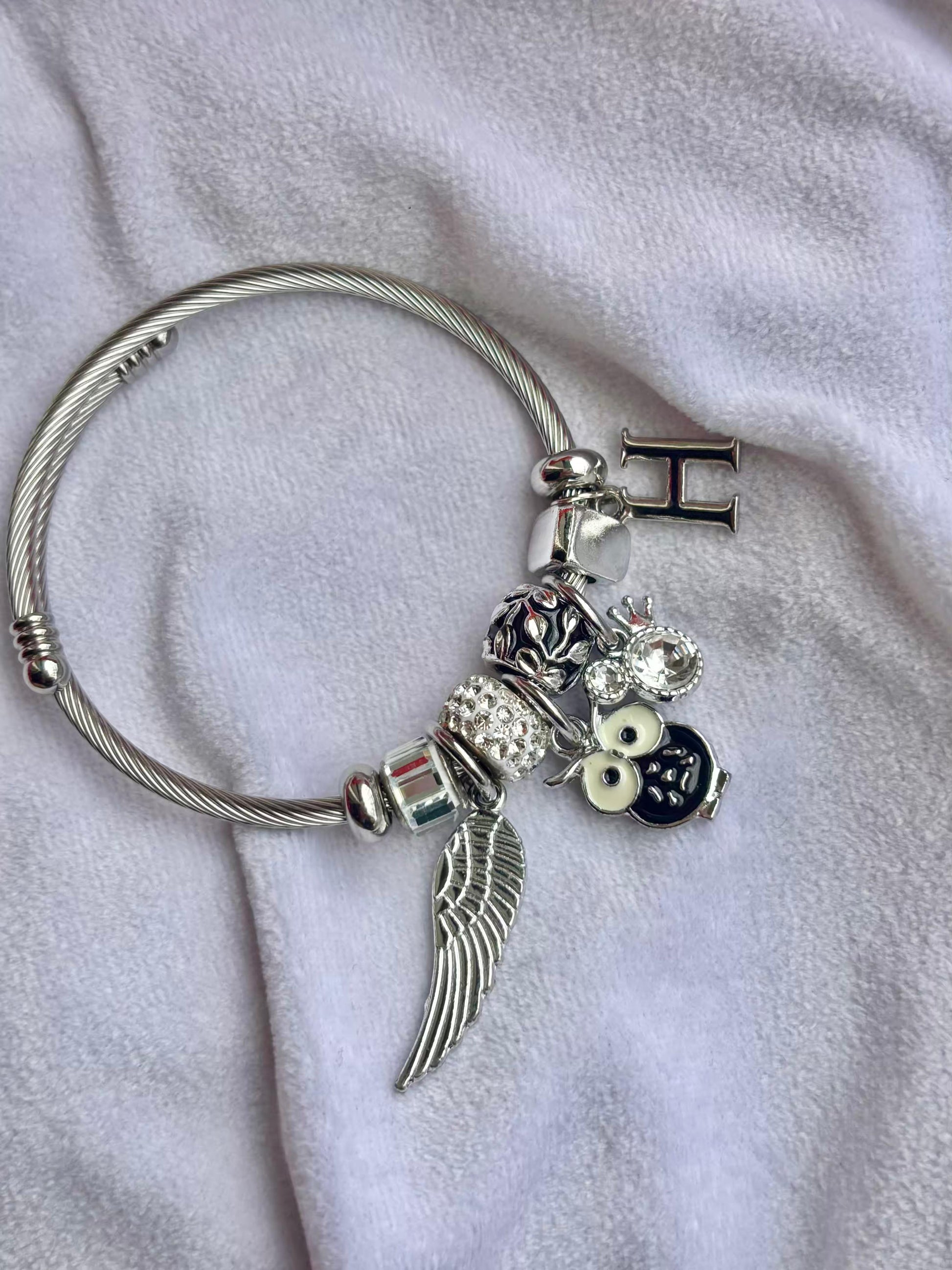 Pandora Charms Owl Bracelet With Customised Initial ( Silver )