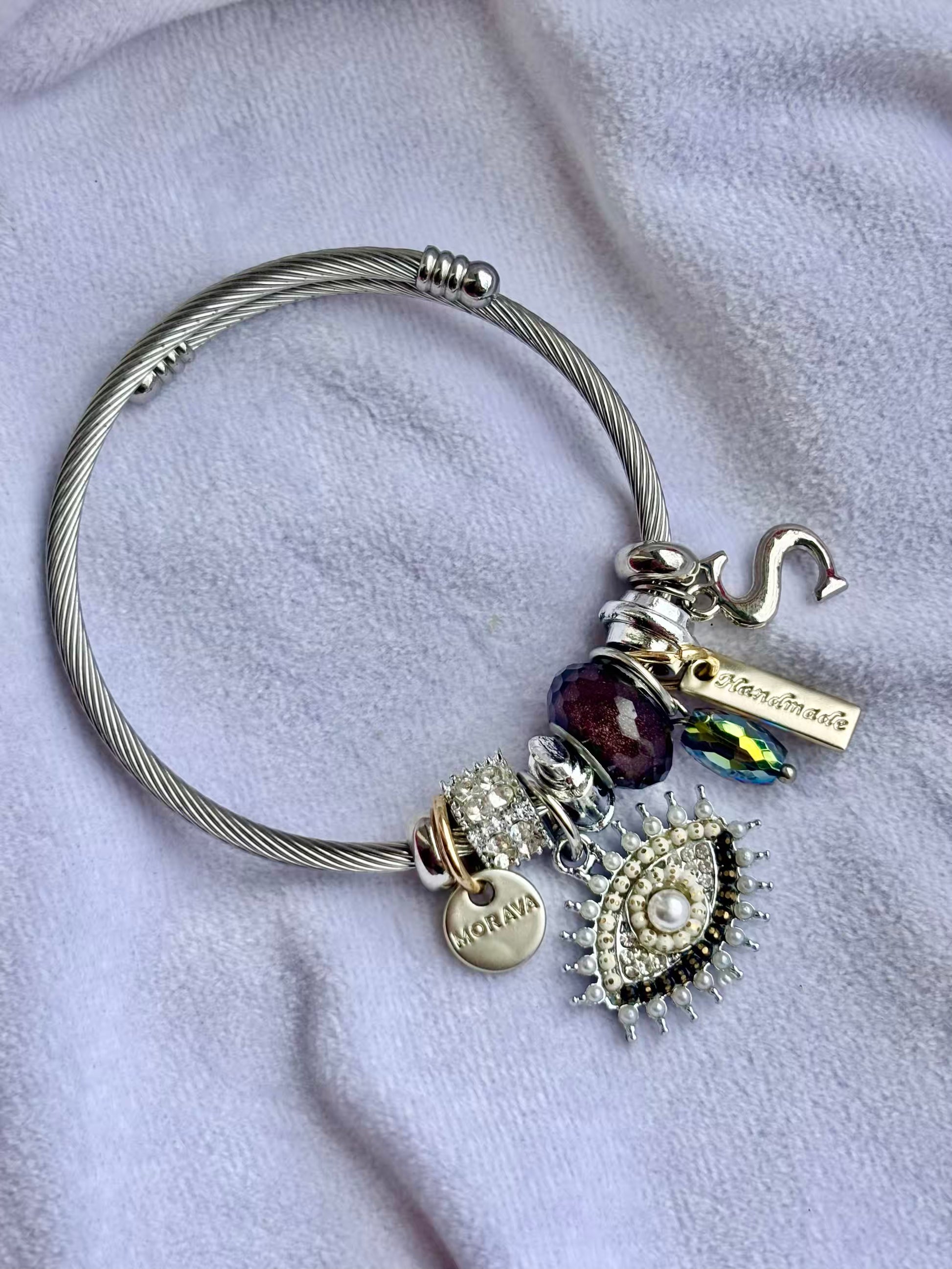 Pandora Charms Evil Eye Bracelet With Customised Initial ( Silver )