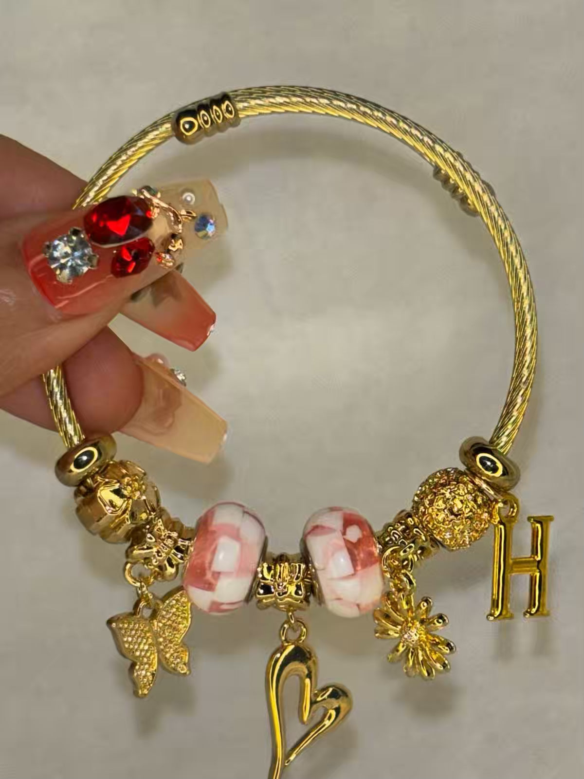 Pandora Charms Orange Heart Bracelet With Customised Initial ( Gold )