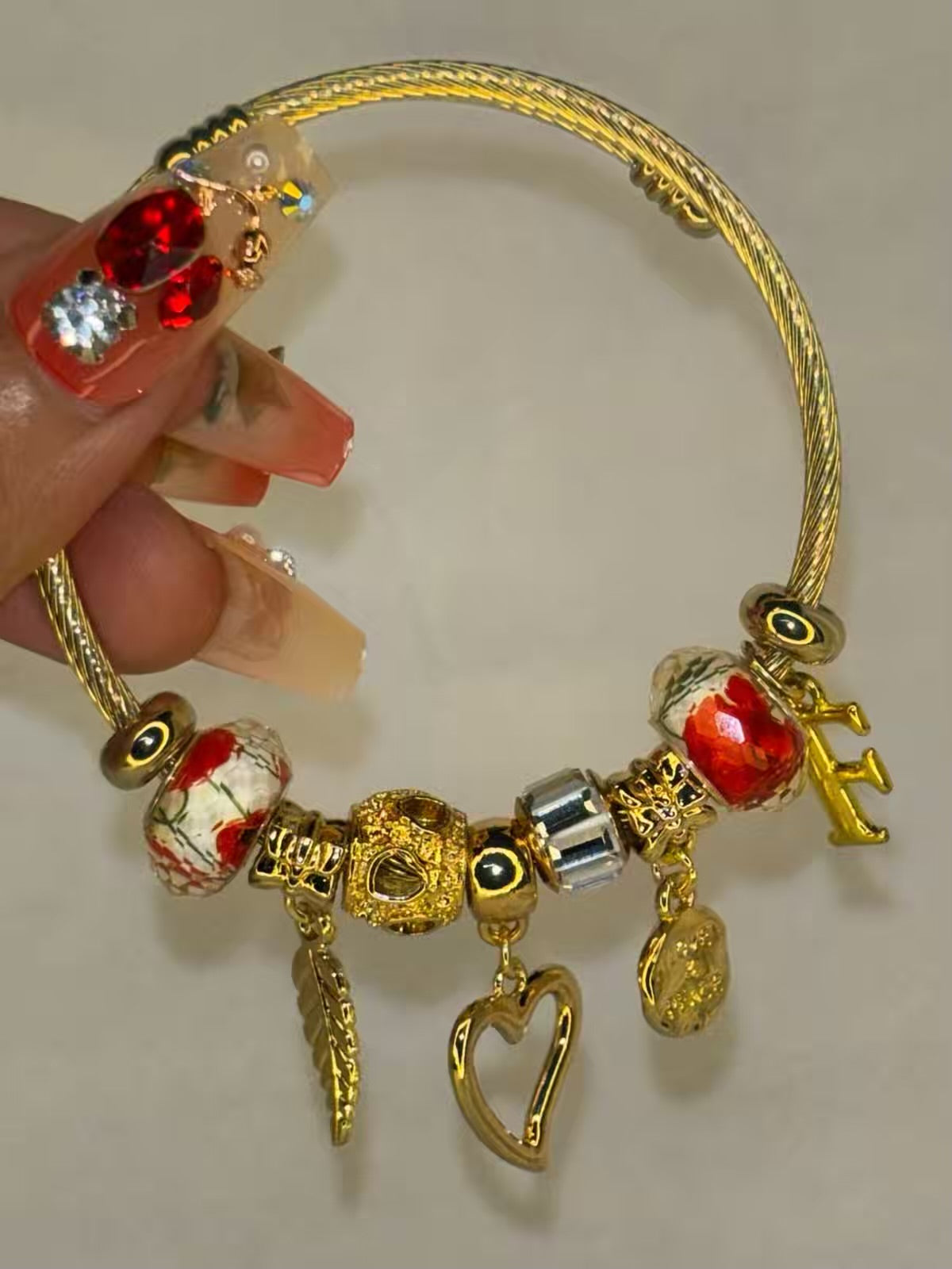 Pandora Charms Flowery Heart Bracelet With Customised Initial ( Gold )