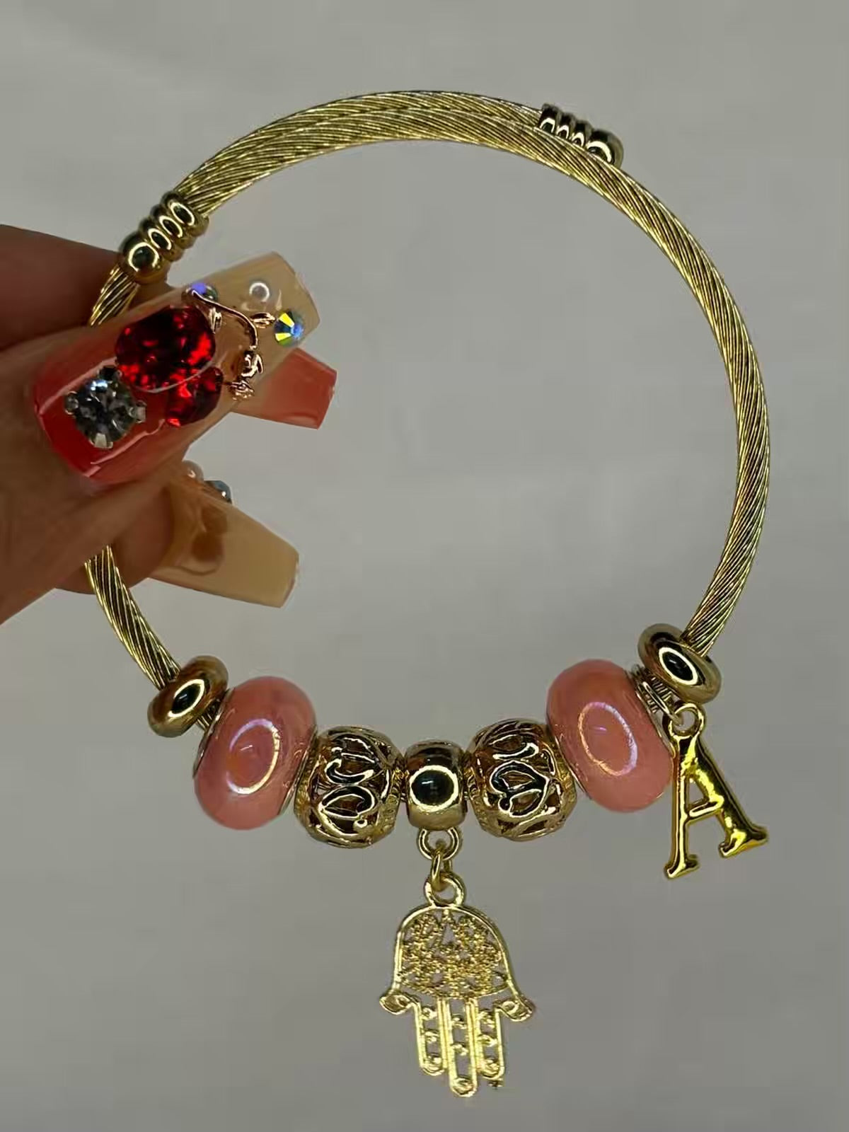 Pandora Charms Orange Hamsa Bracelet With Customised Initial ( Gold )