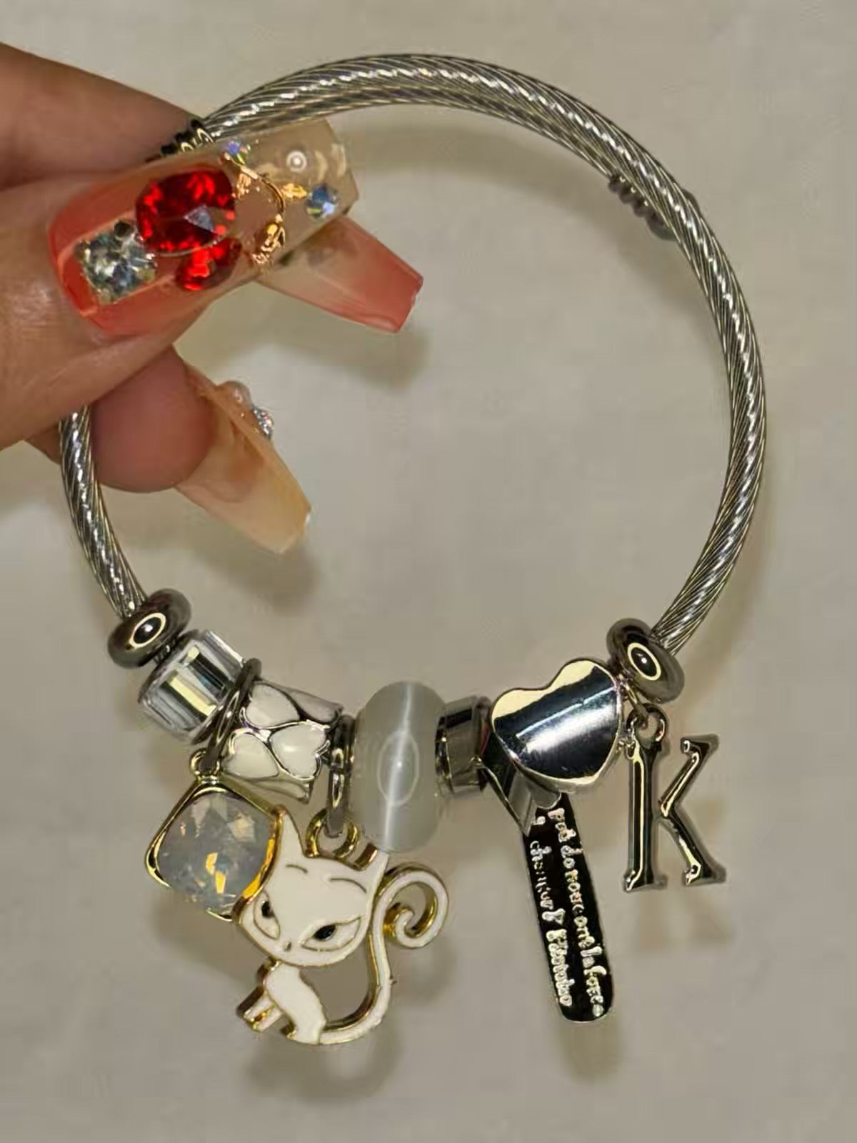 Pandora Charms White Fox Bracelet With Customised Initial ( Silver )