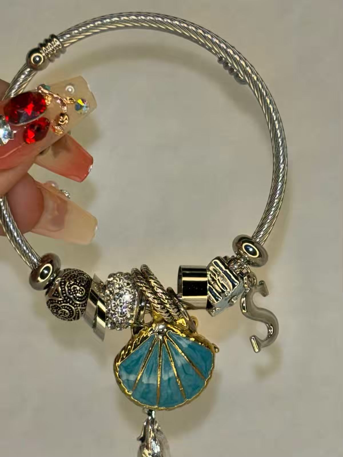 Pandora Charms Blue Pearl Shell Bracelet With Customised Initial ( Silver )