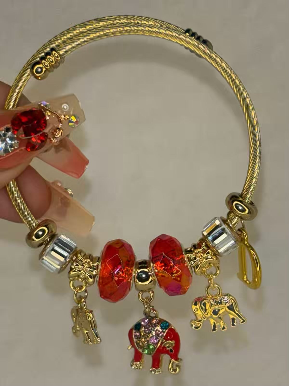 Pandora Charms Red Elephant Bracelet With Customised Initial ( Gold )