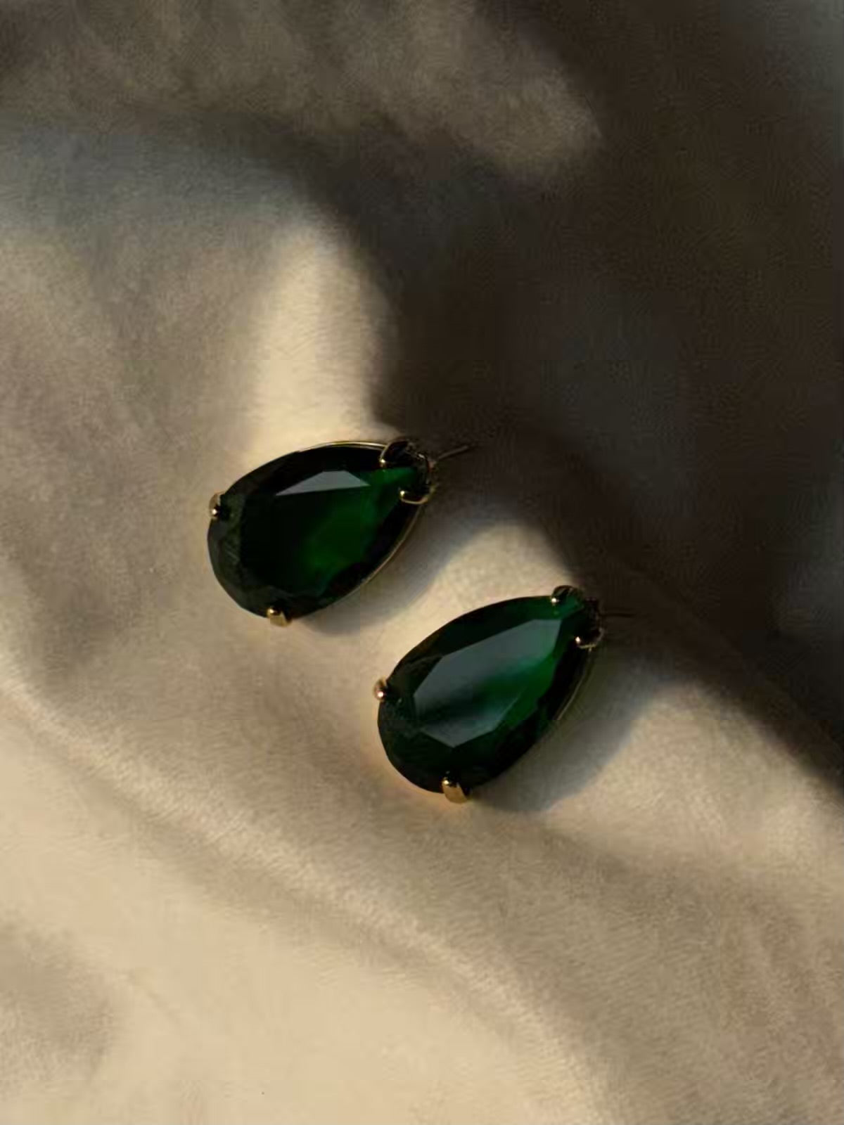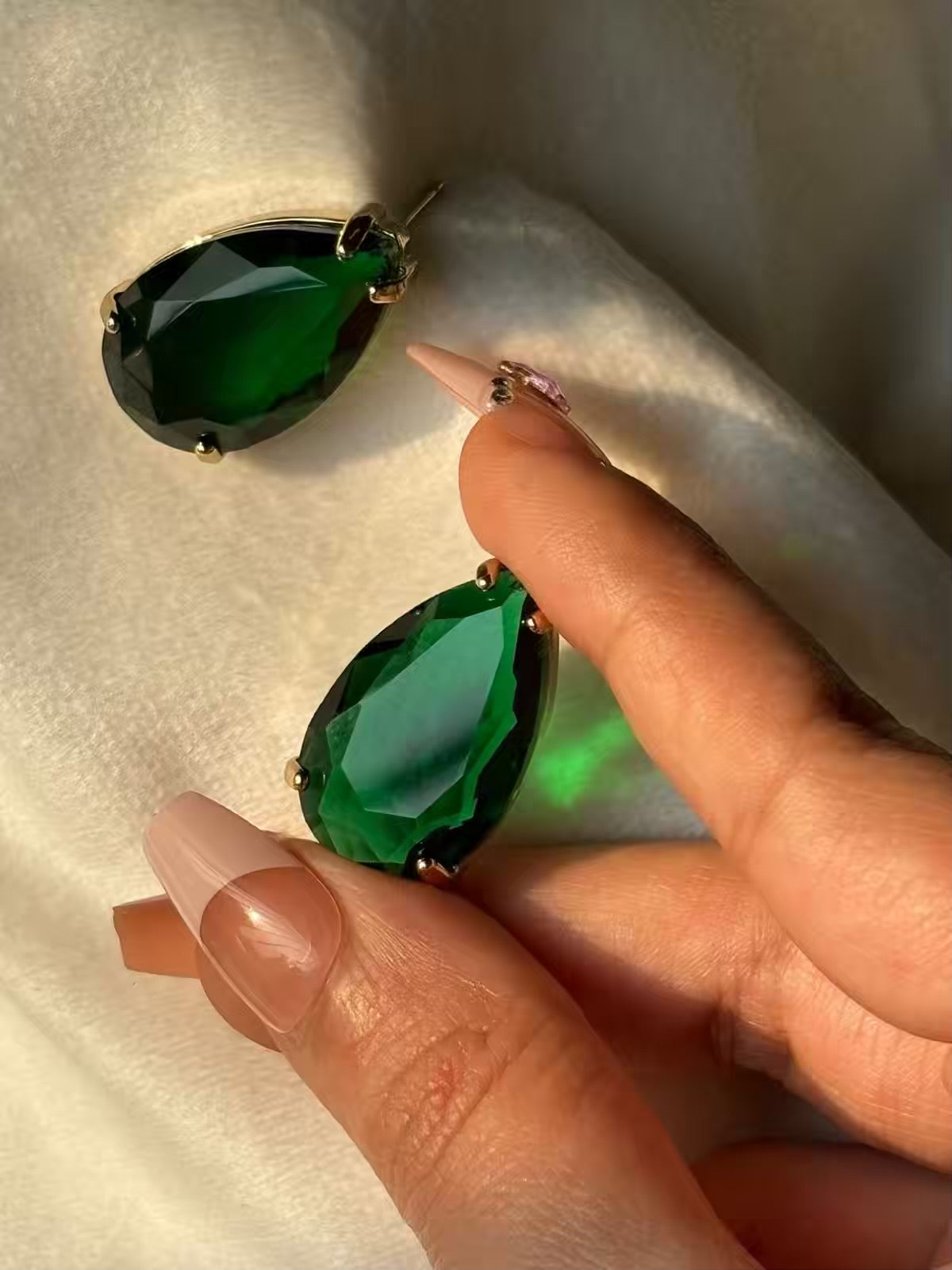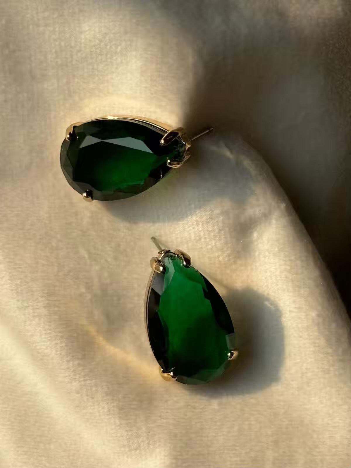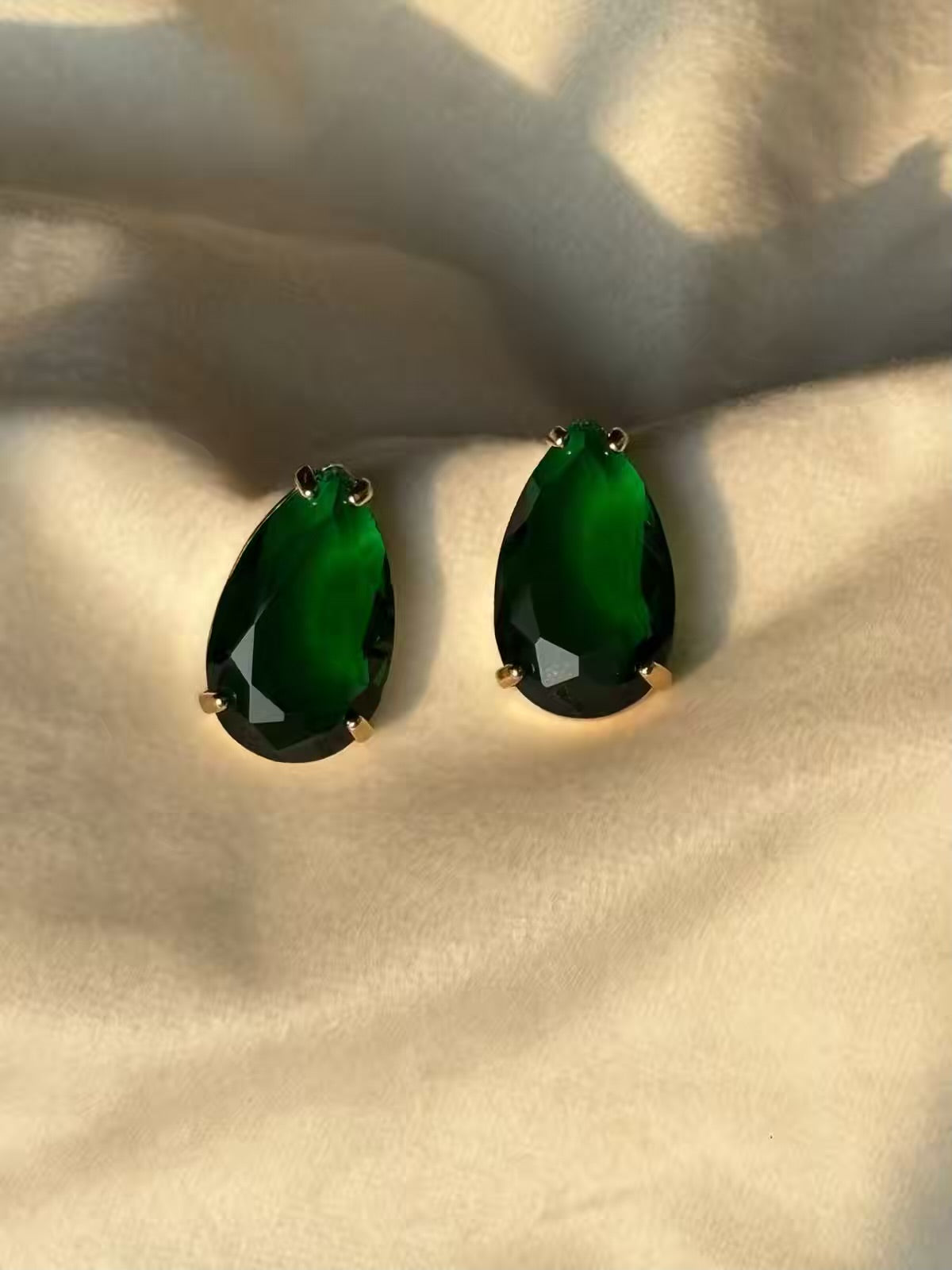 Drop Emerald Green Studs Earrings Studs - Gold Plated