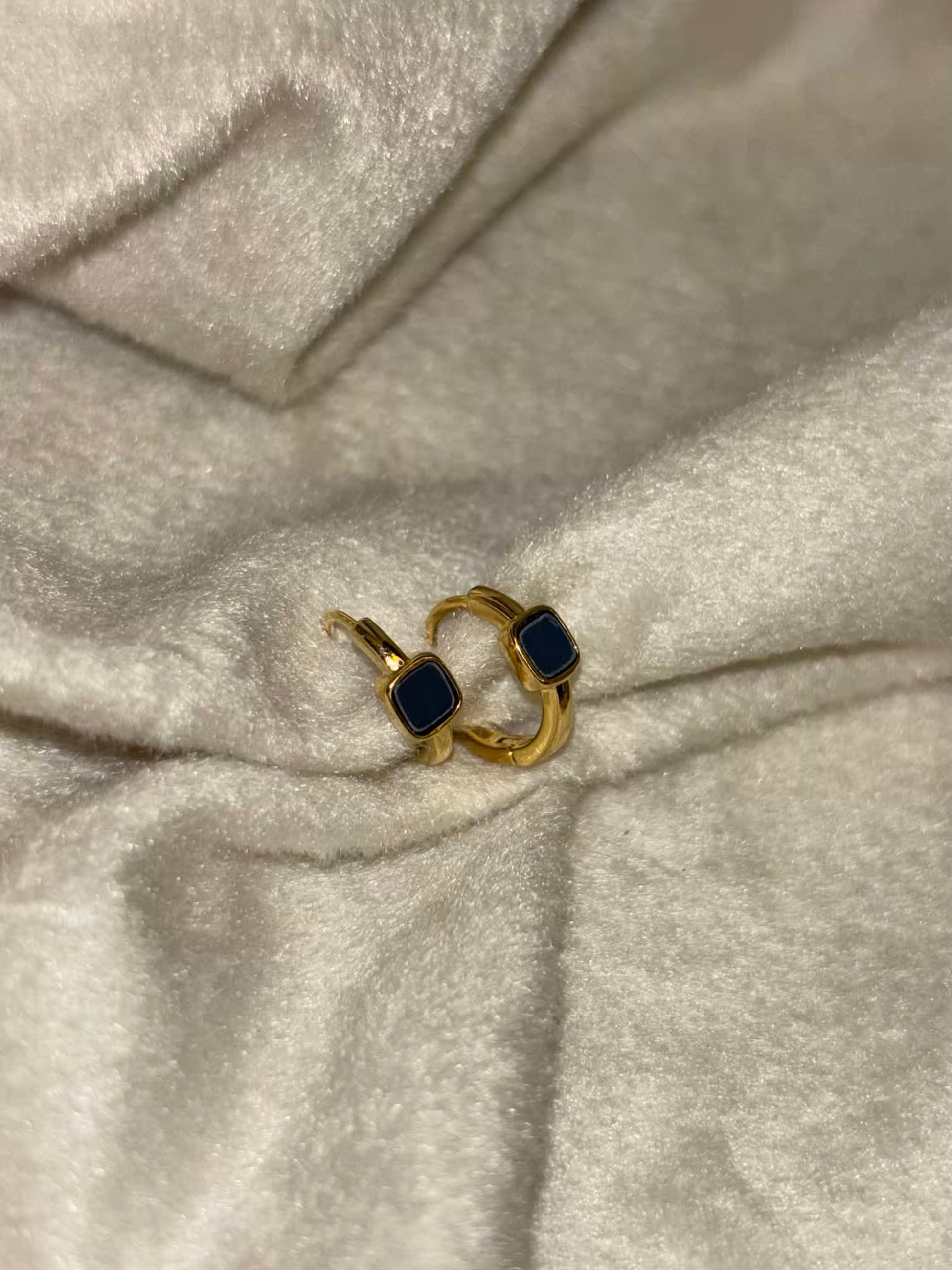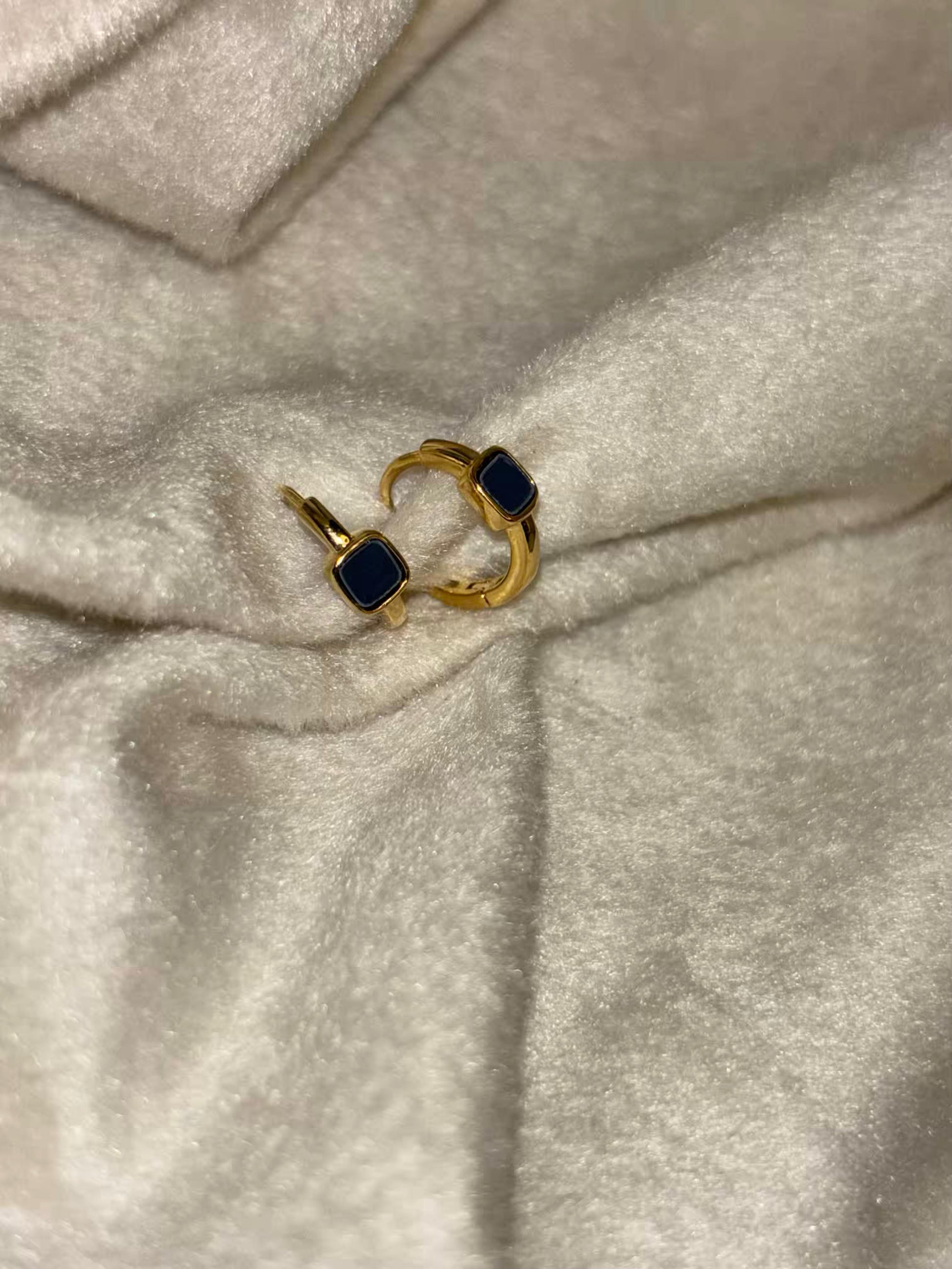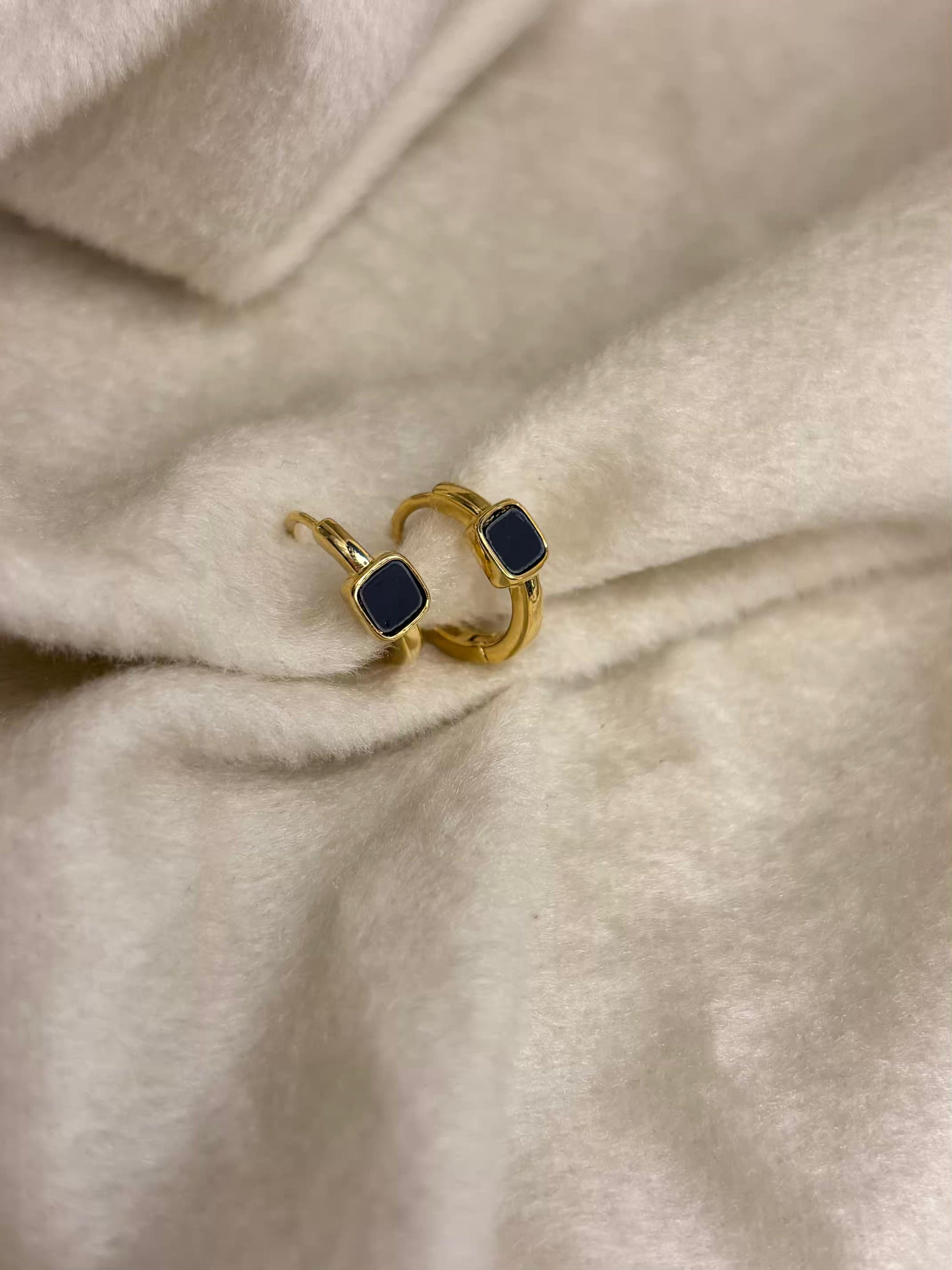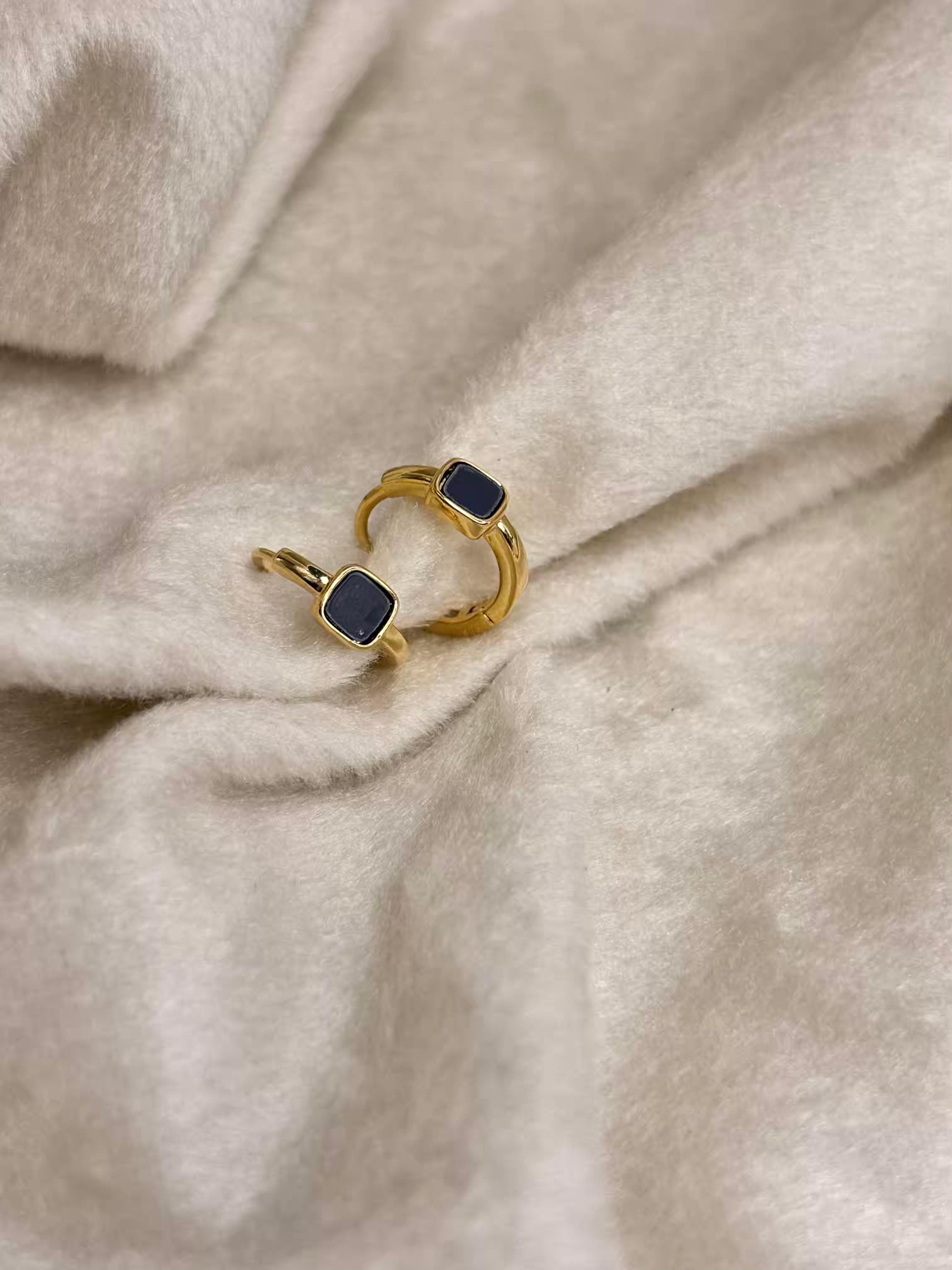 Black Stoned Studds 18K Gold Plated Premium Earrings