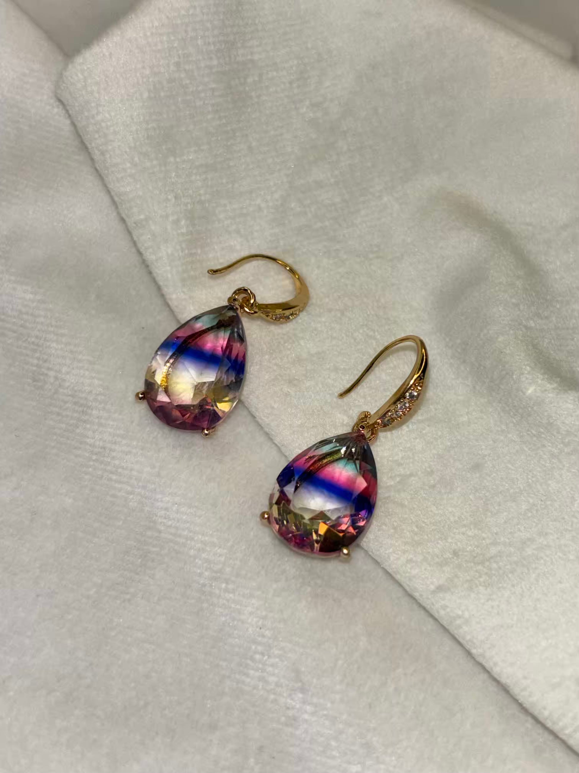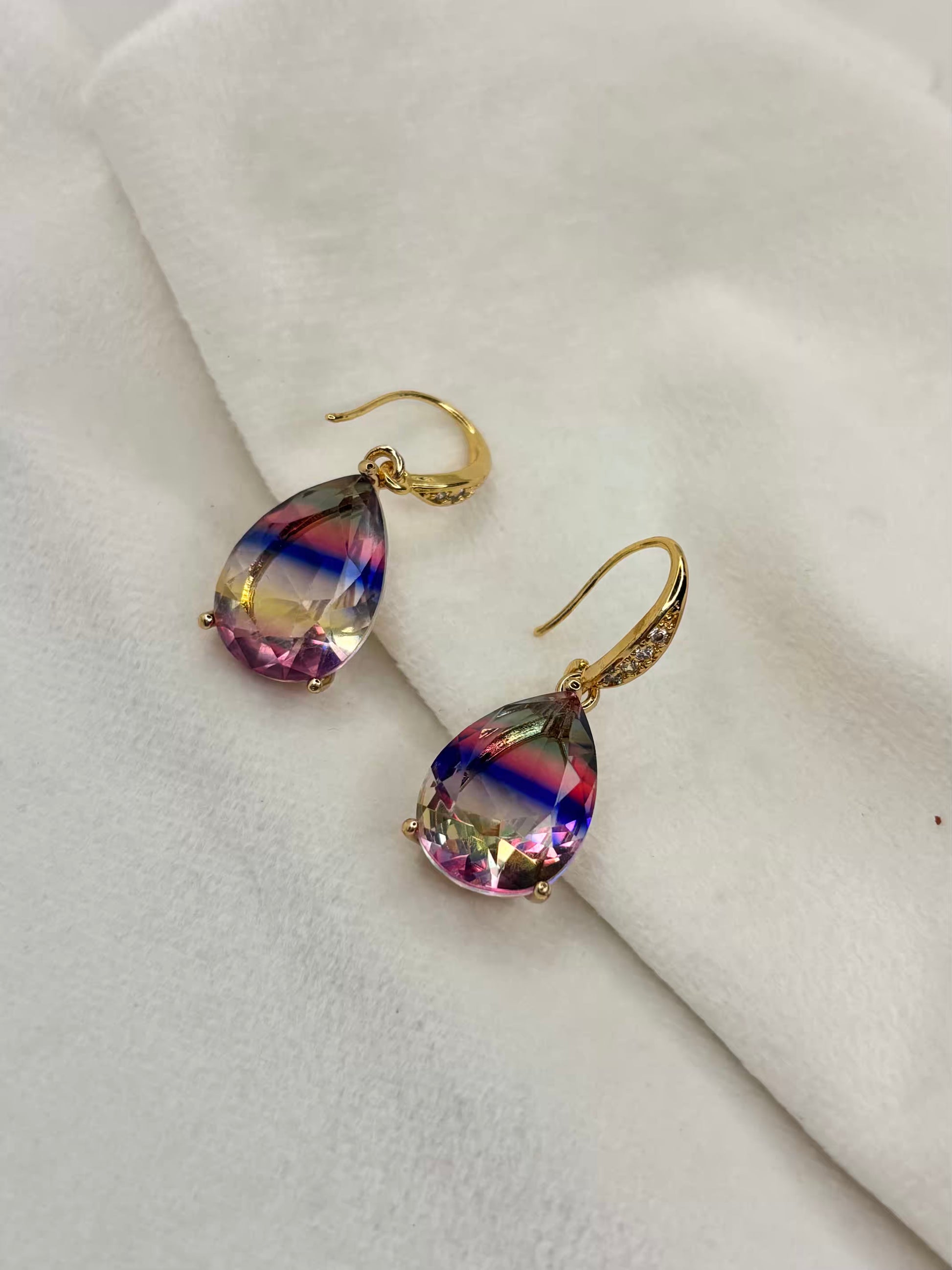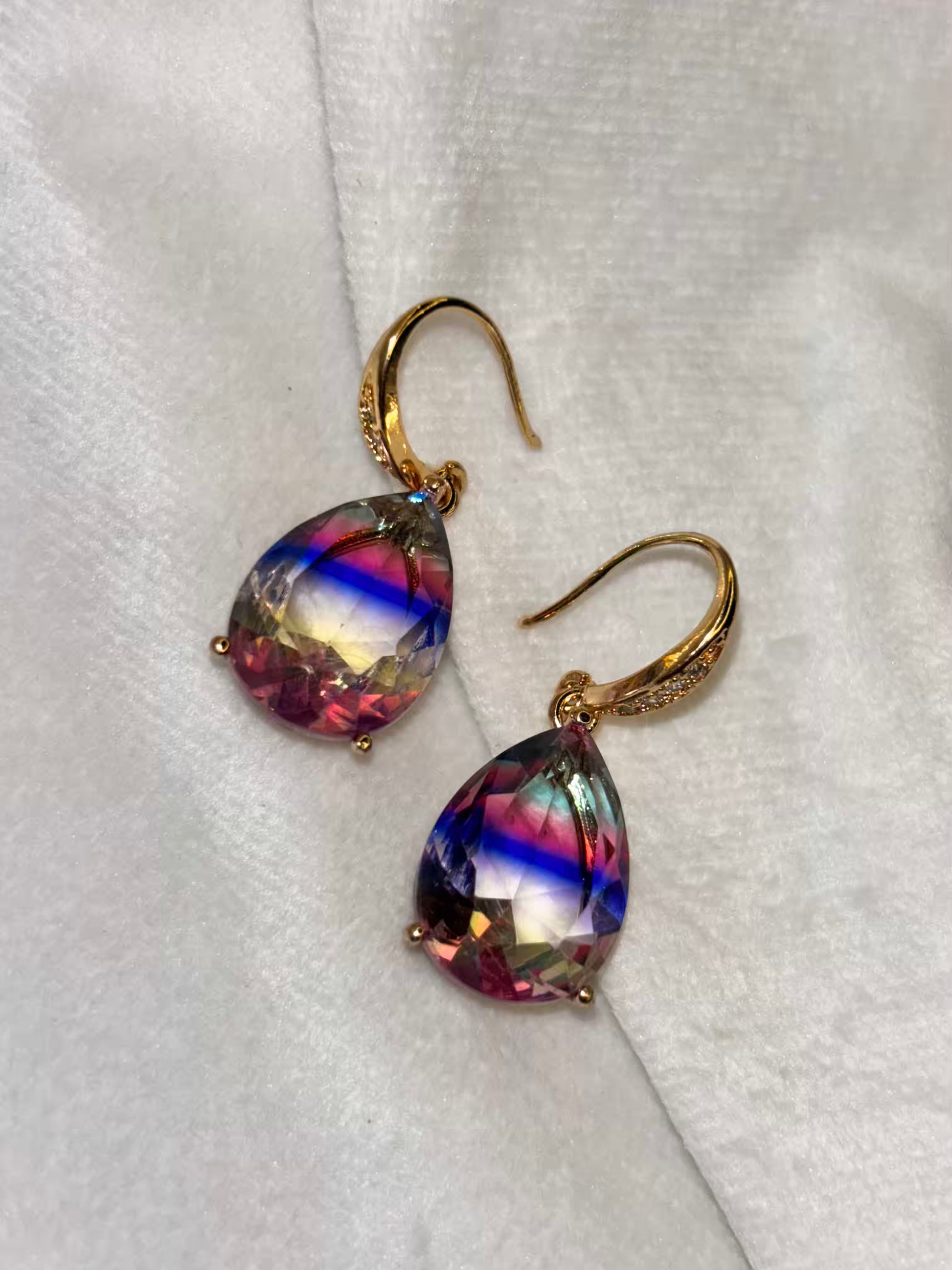 Pink Blue Crystals Transparent Earrings - Gold Plated